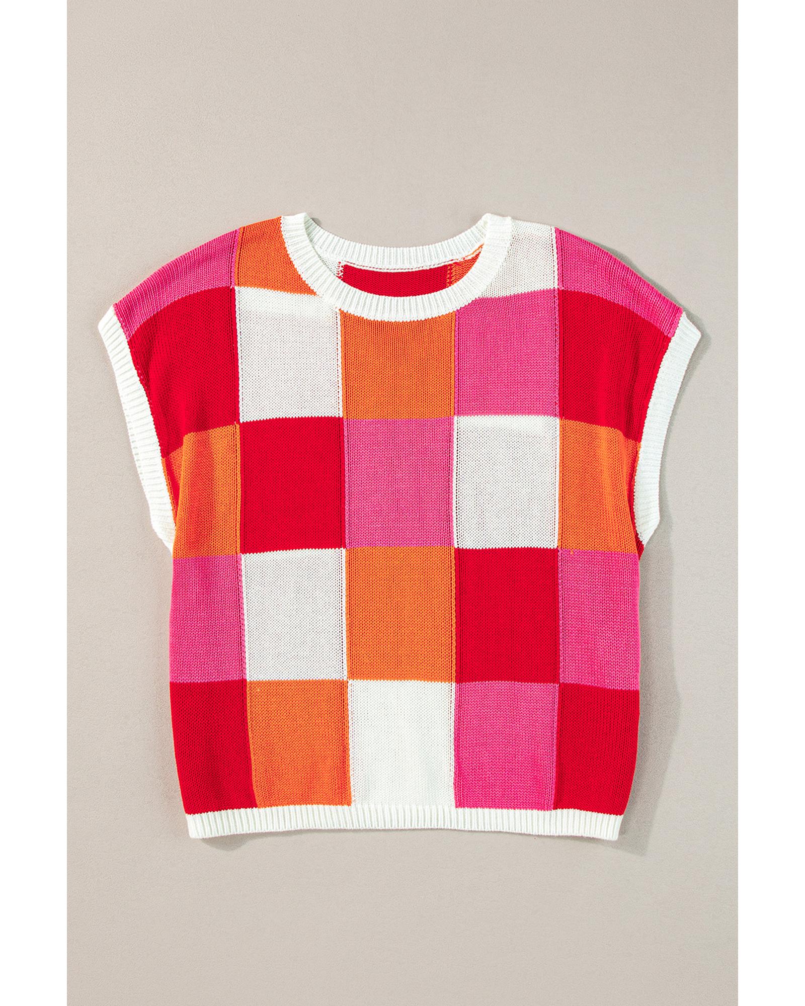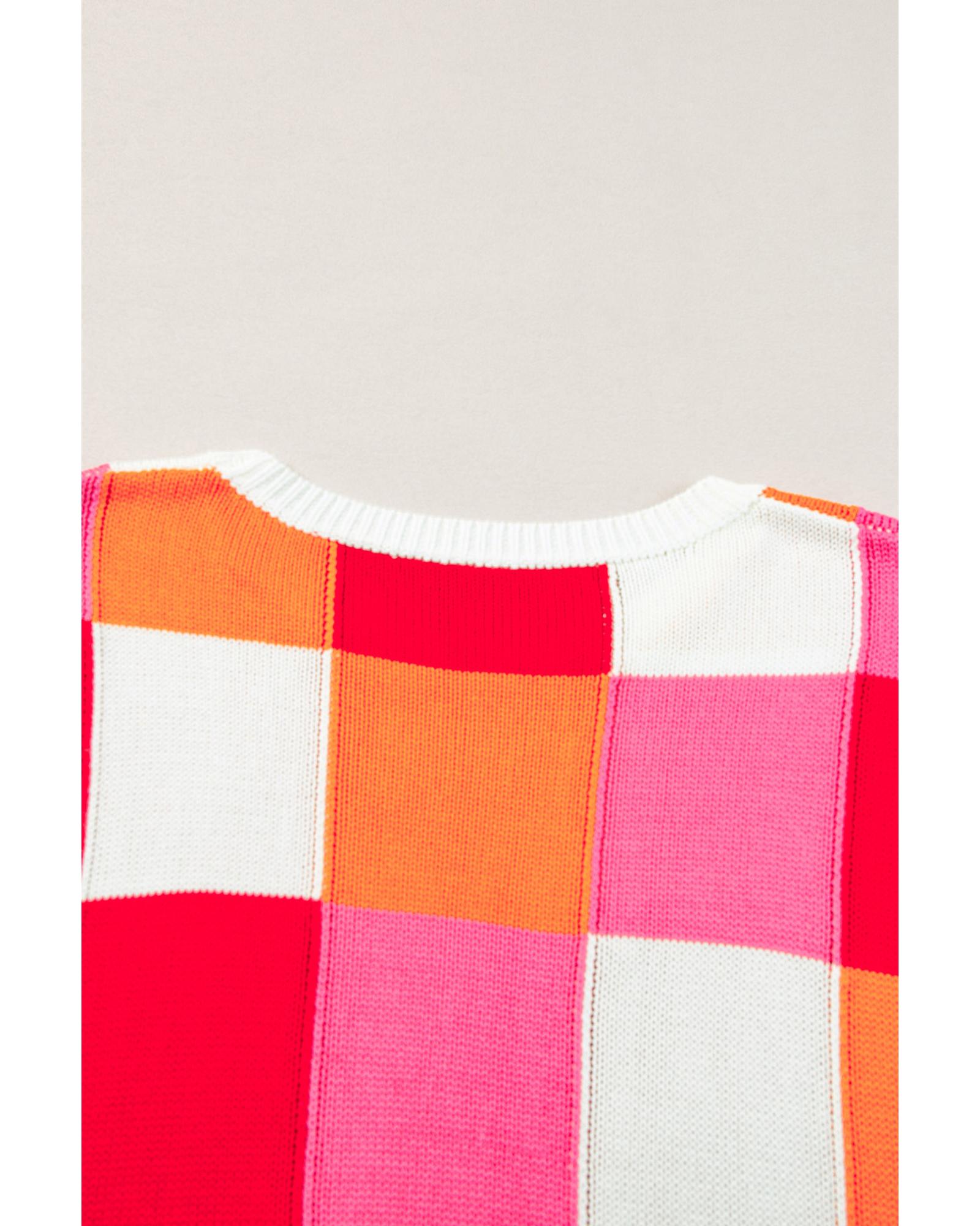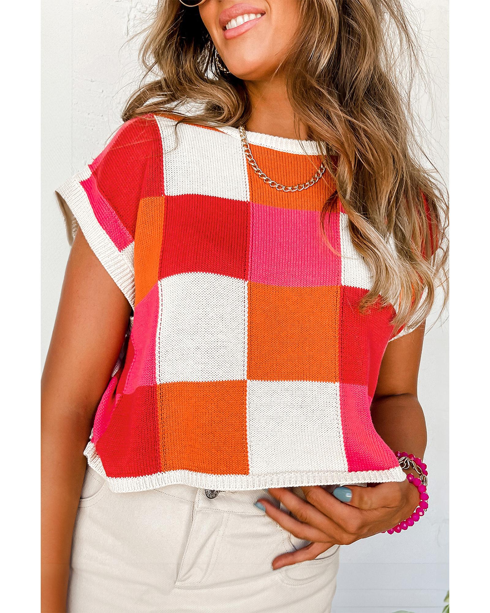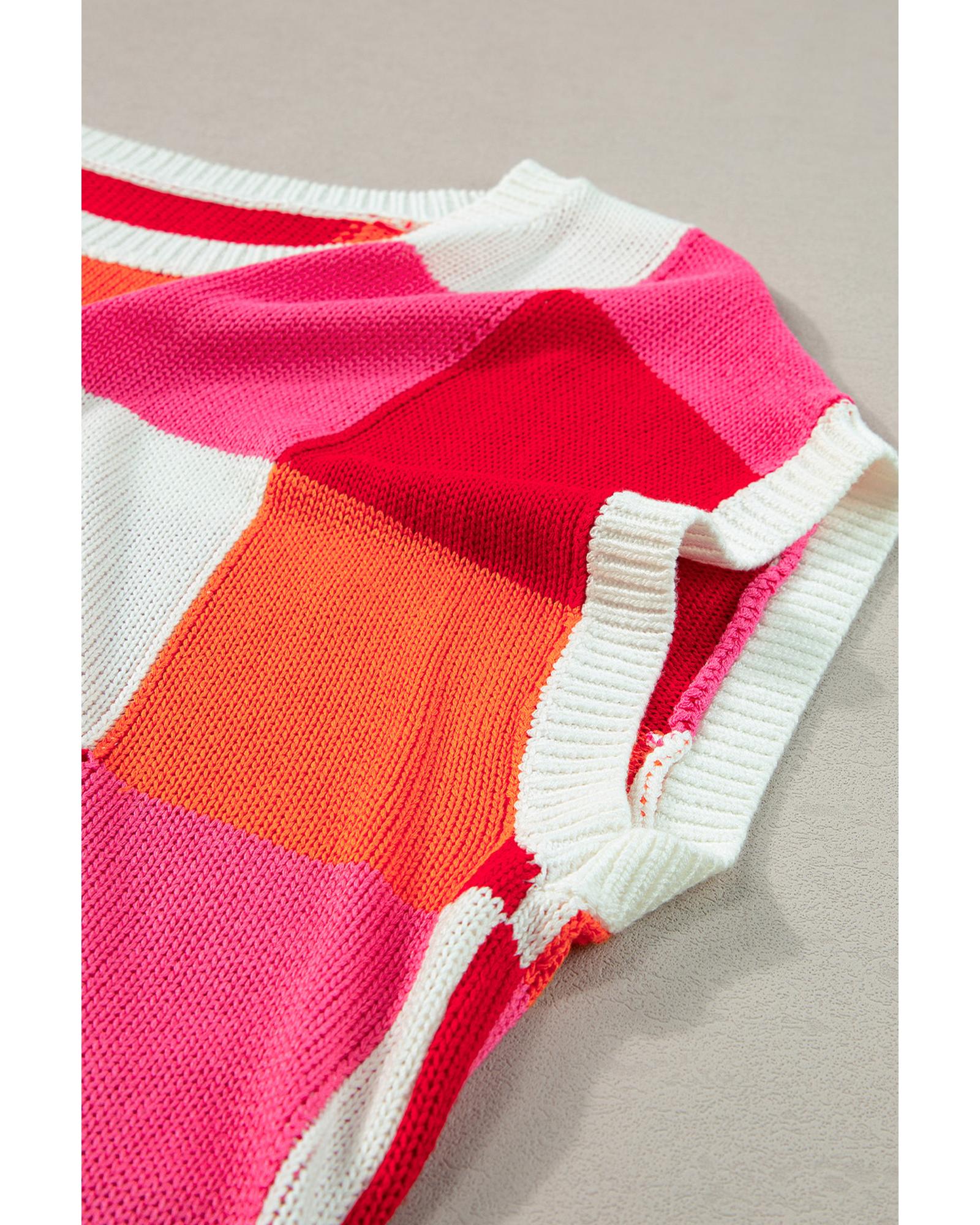 Fiery Red Color Block Cap Sleeve Sweater - XL