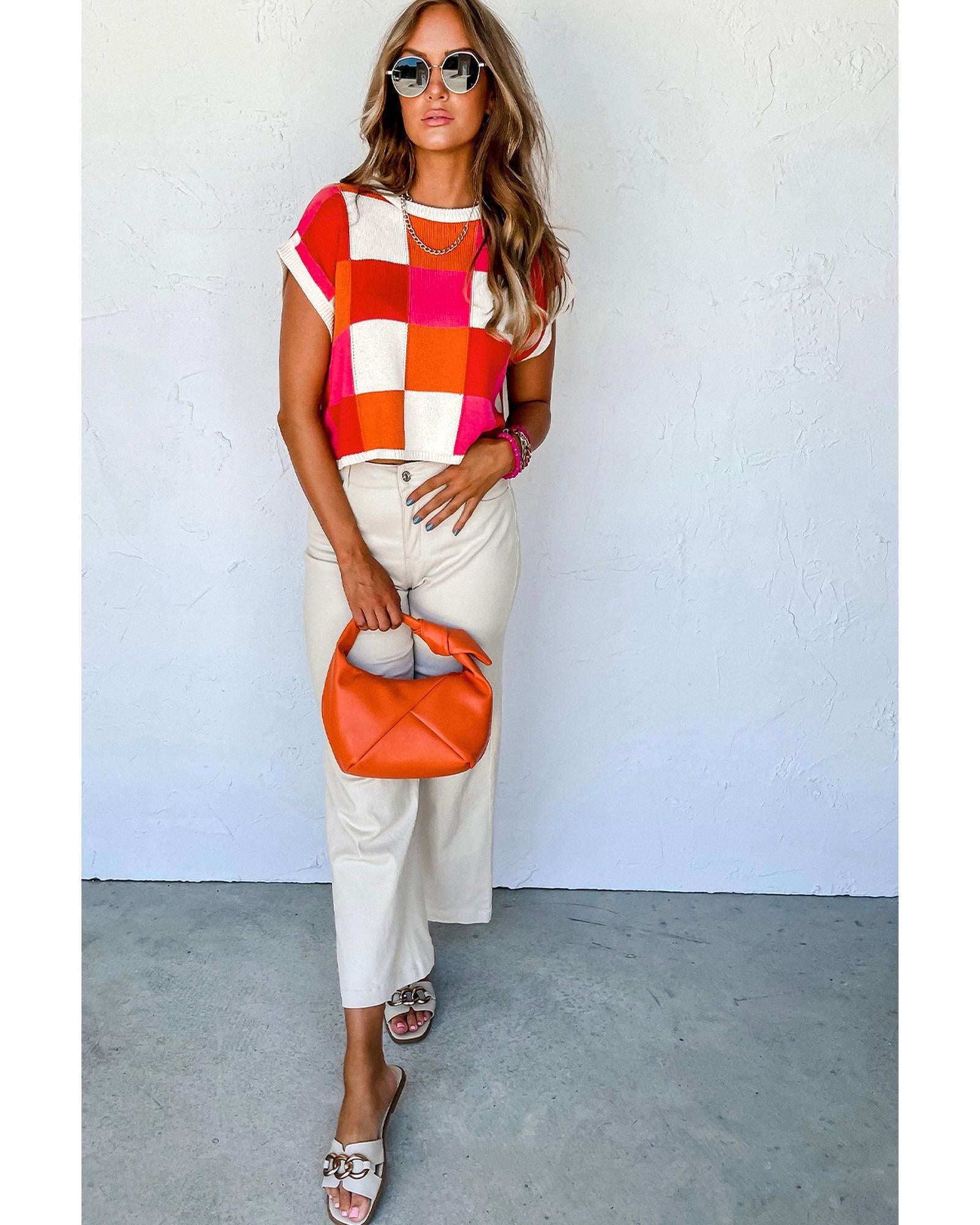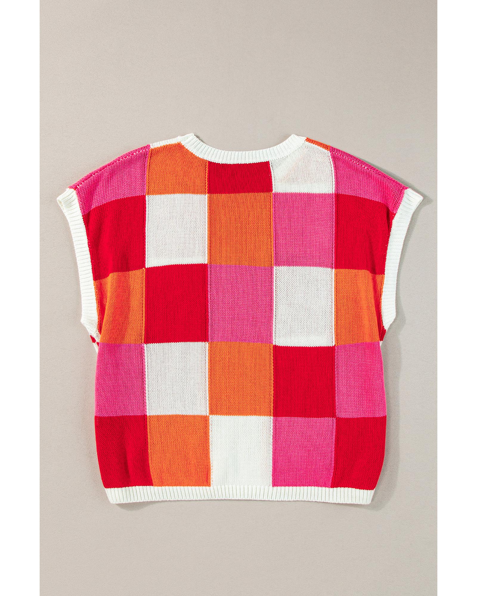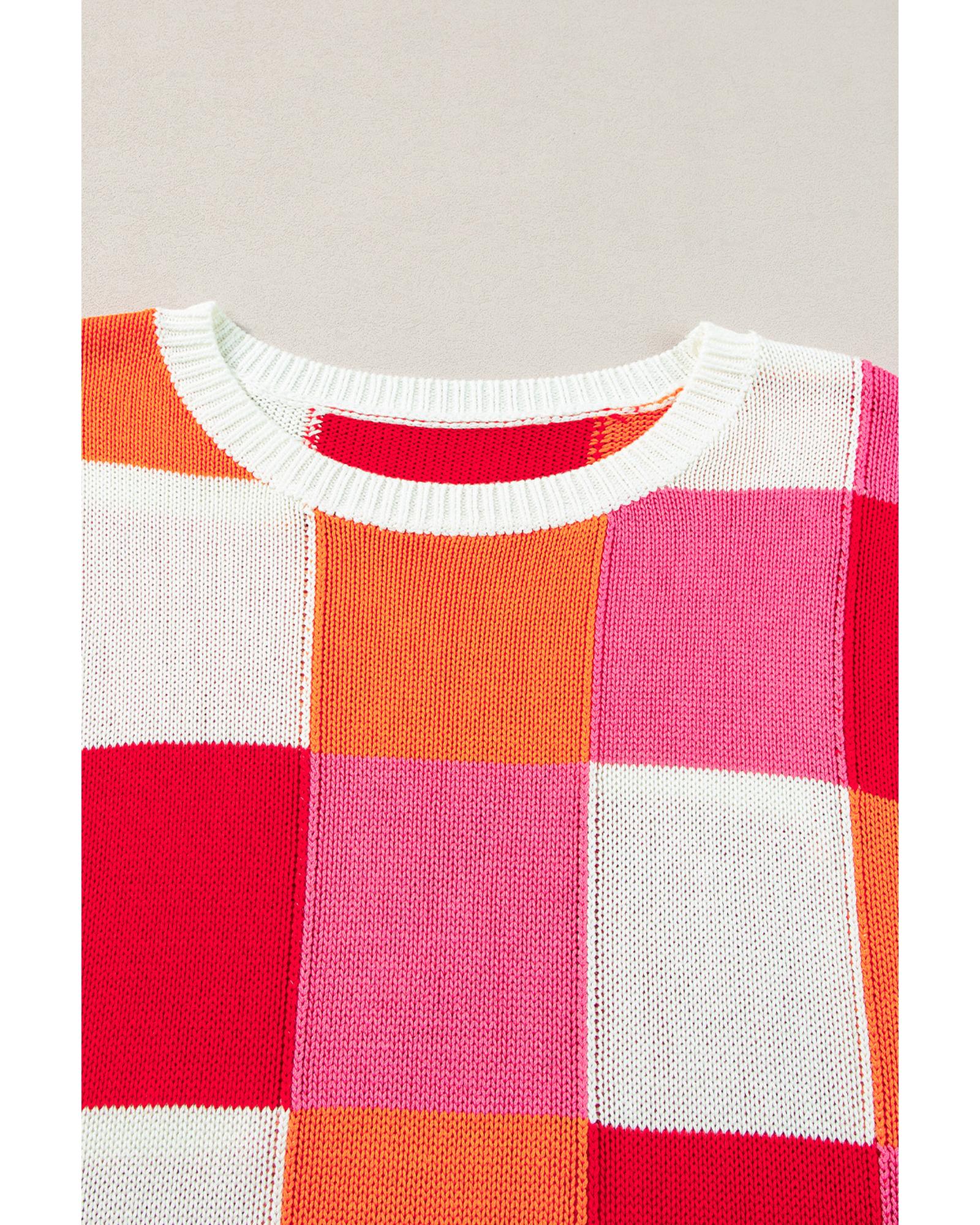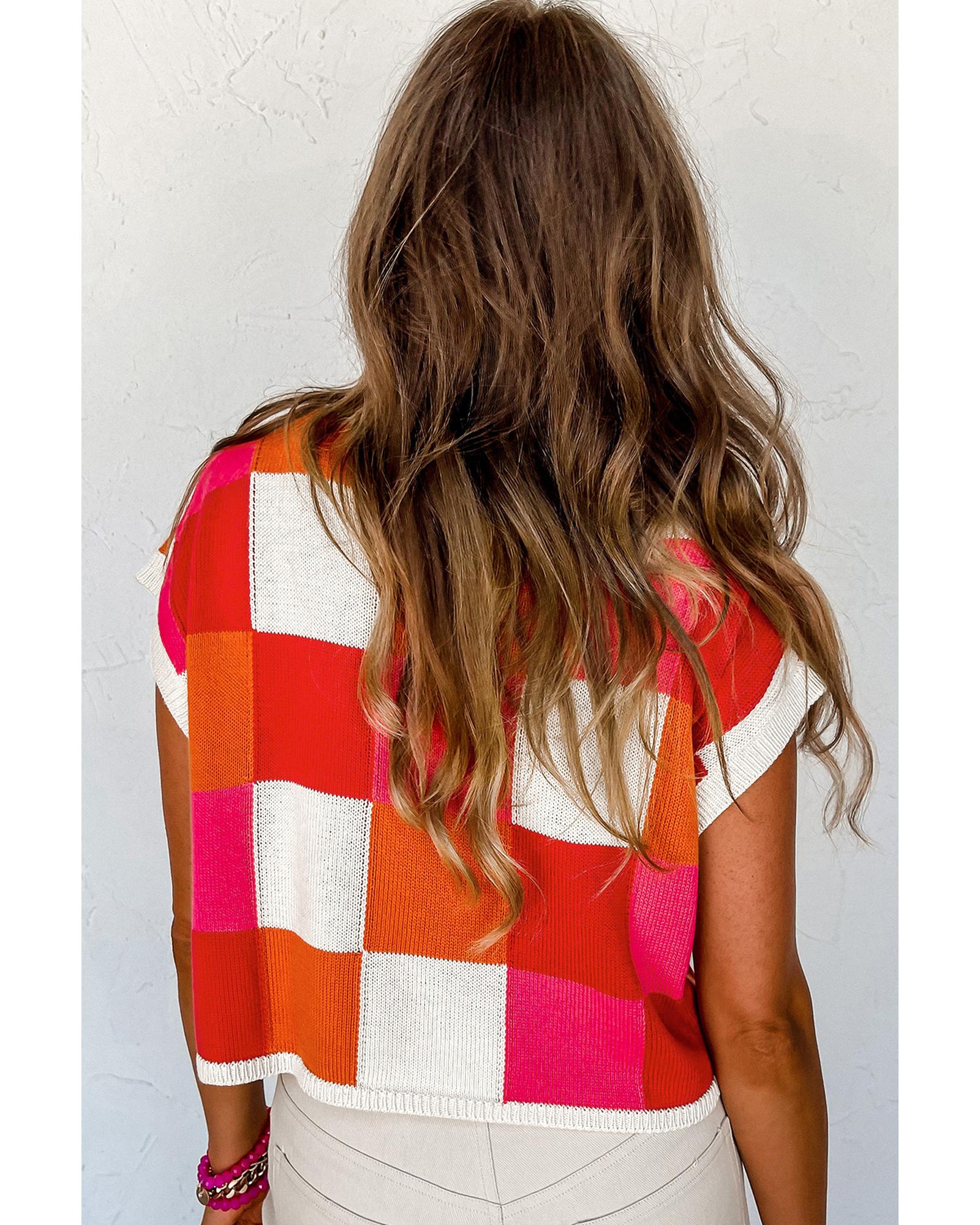 Fiery Red Color Block Cap Sleeve Sweater - XL