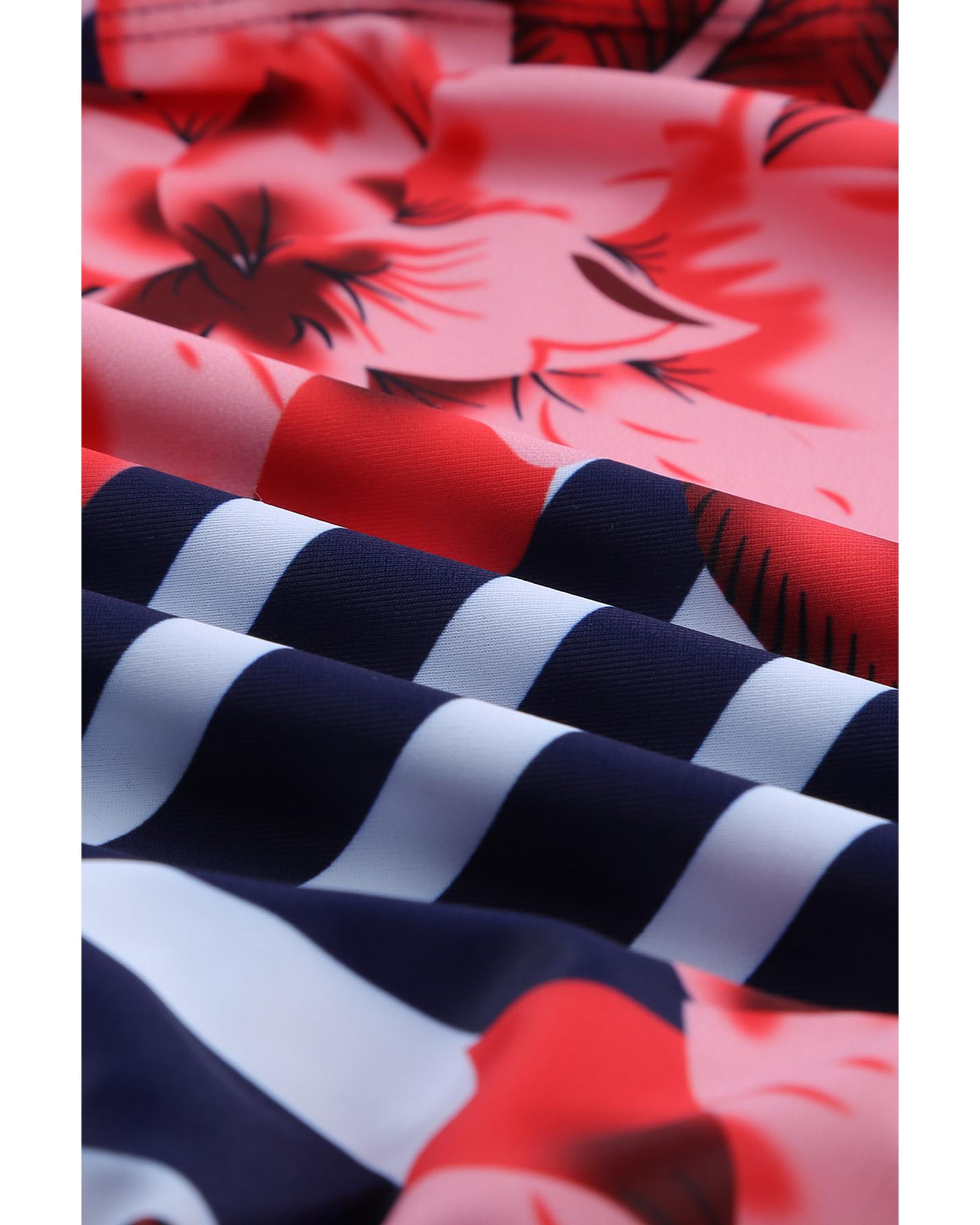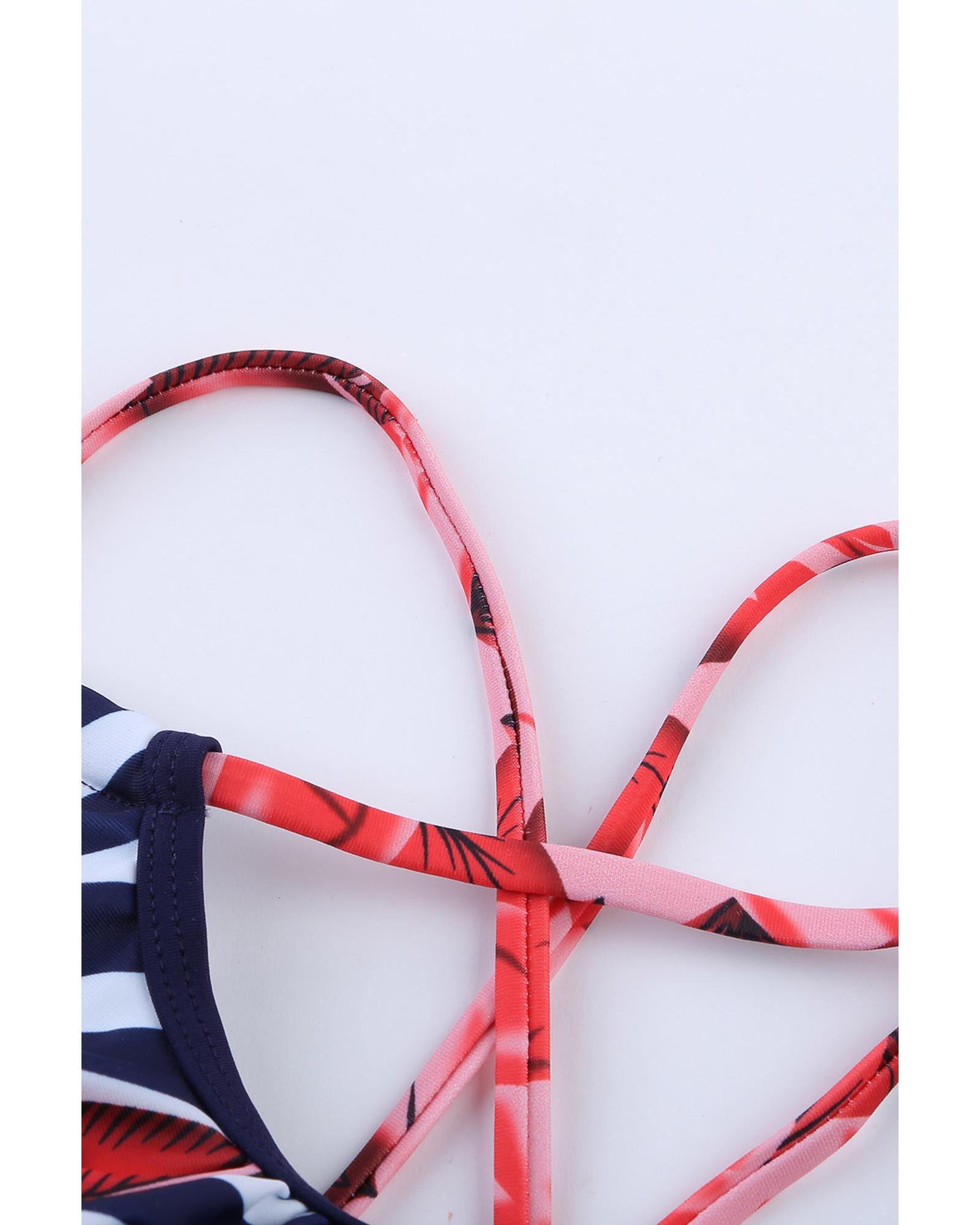 Fiery Red Floral Print Criss Cross Hollow-out Tankini Swimwear - M