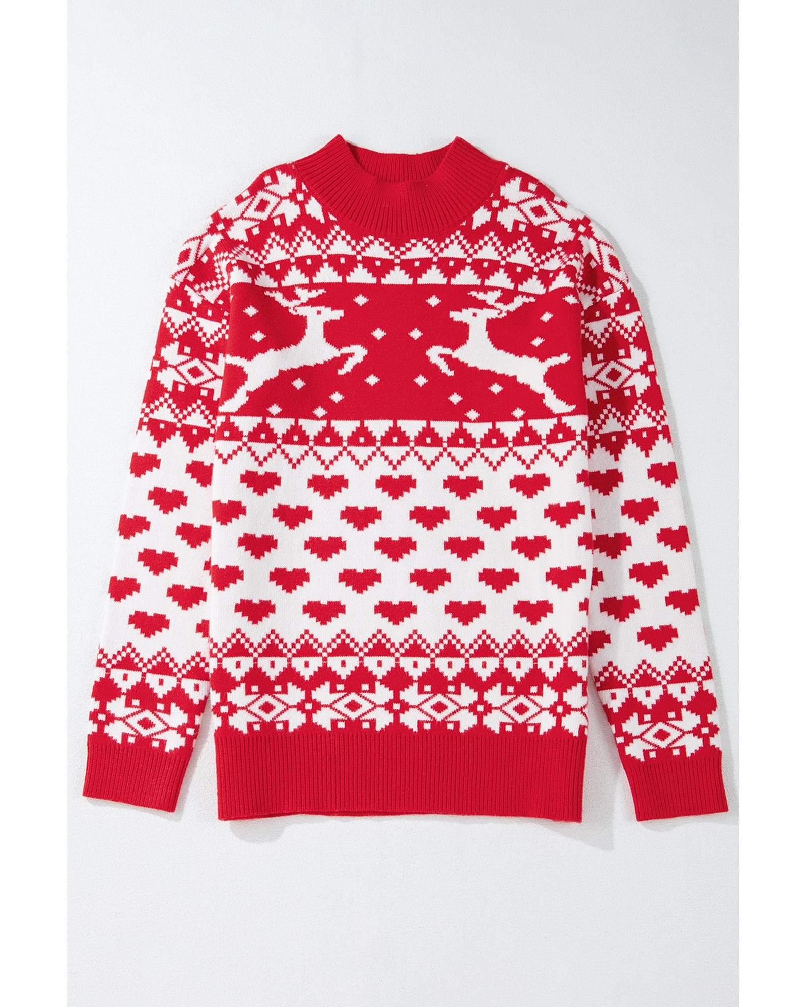Fiery Red Merry Christmas Reindeer Heart Pattern High Neck Sweater - 2XL