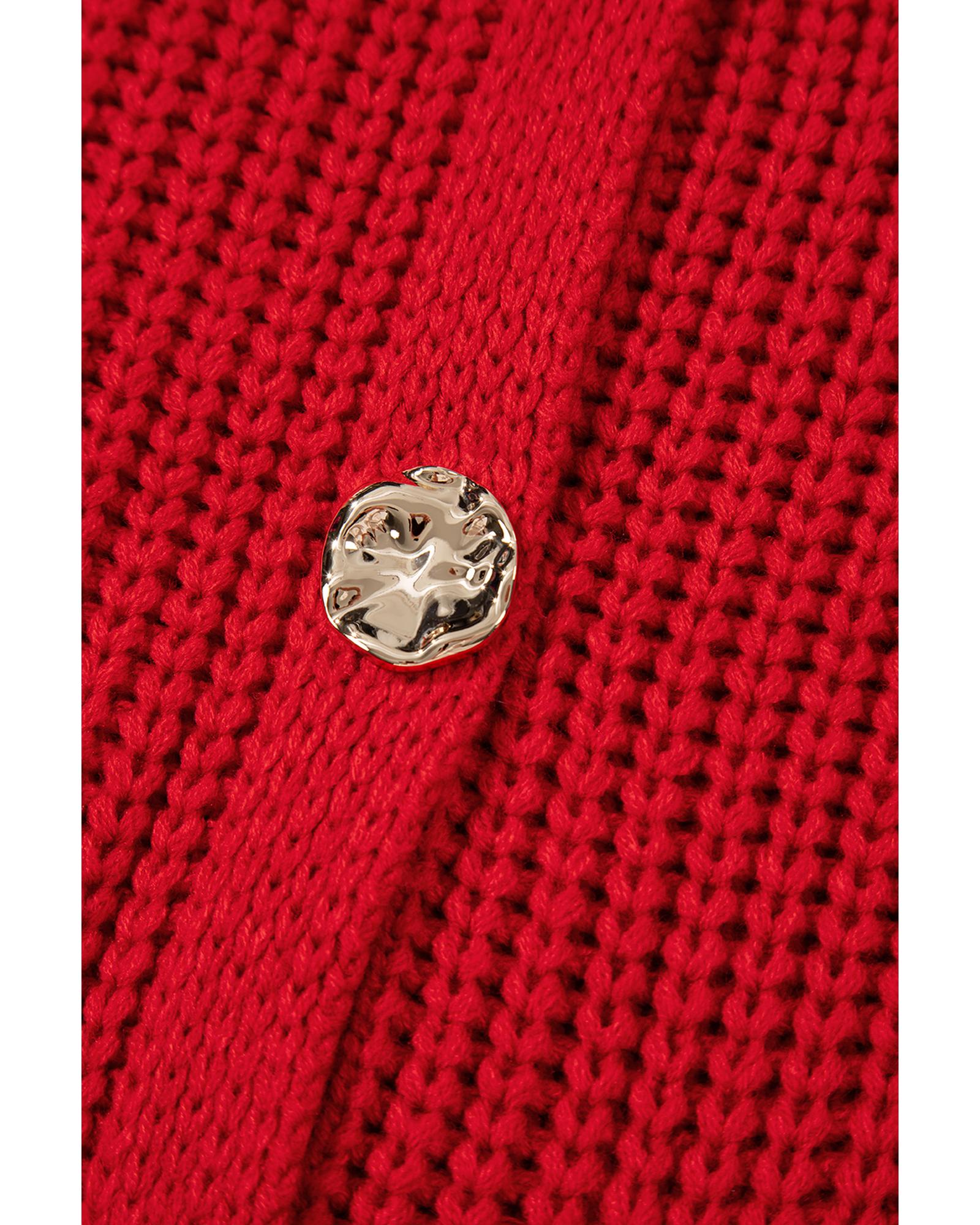 Fiery Red Solid Textured Knit Side Pockets Buttoned Sweater Vest - L