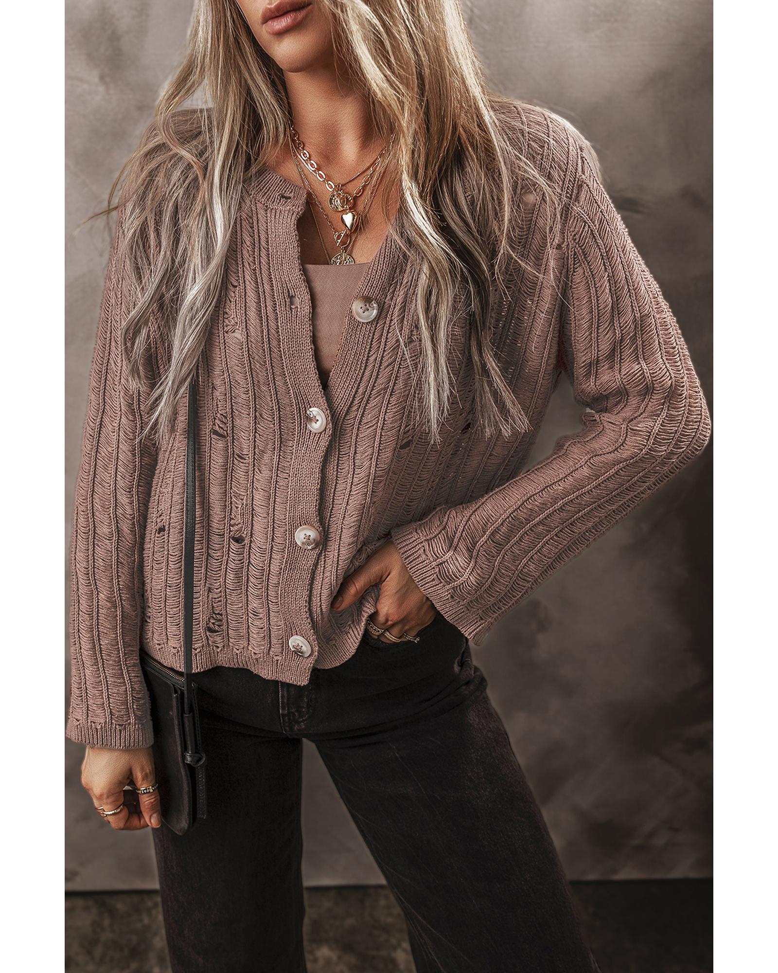 Goat Cut Out Textured Knit Buttoned Cardigan - XL