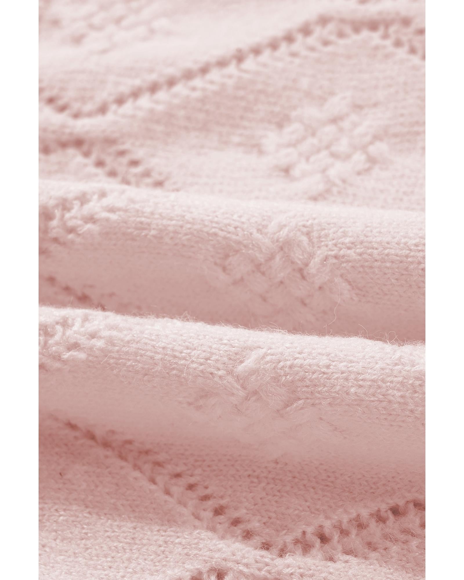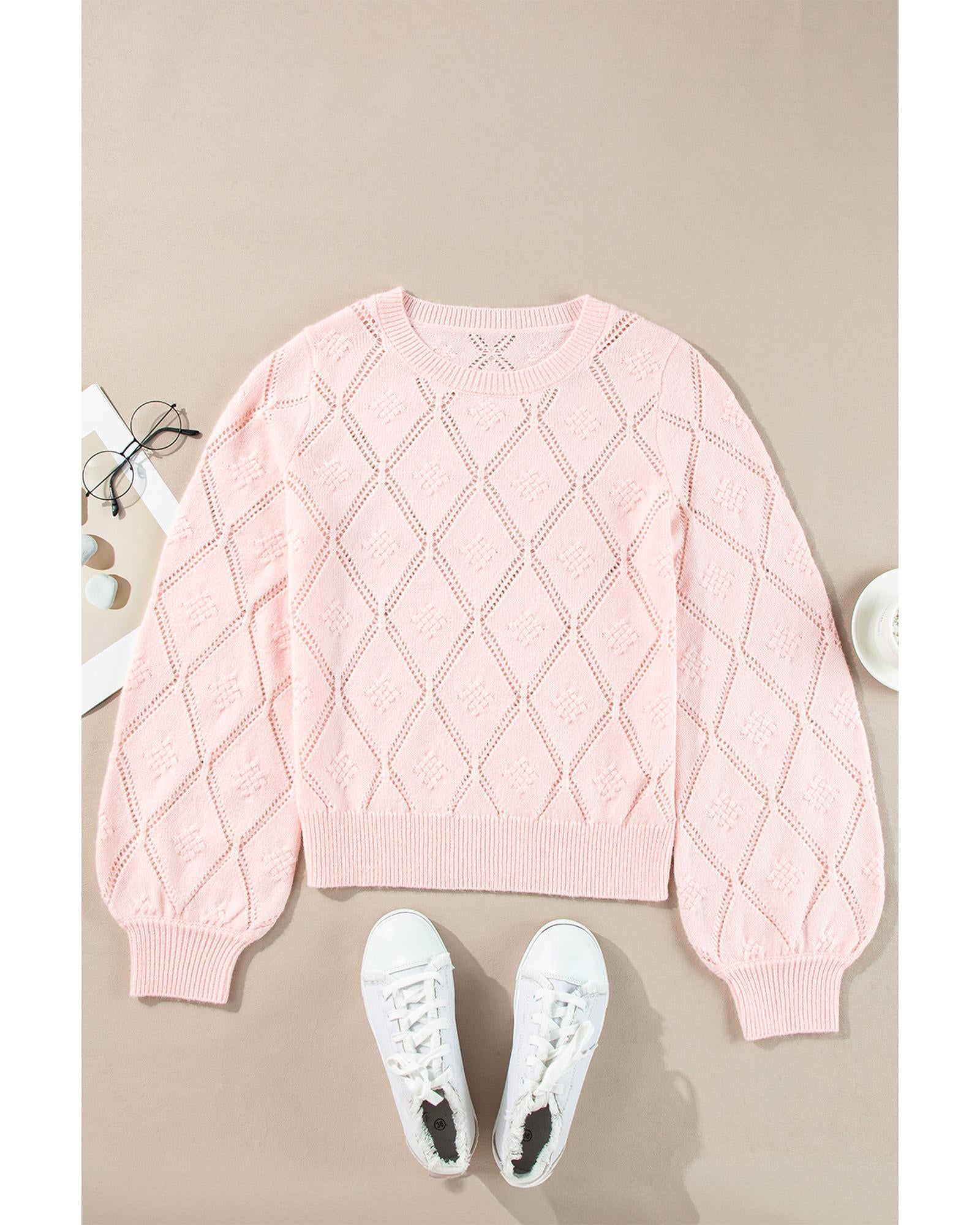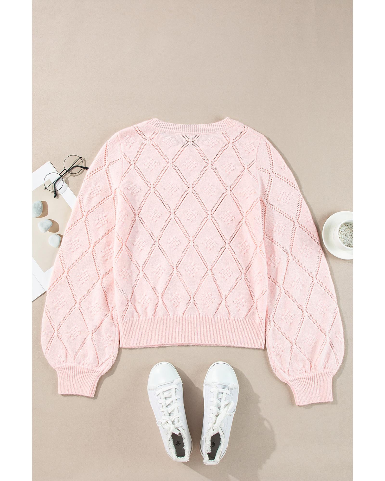 Gossamer Pink Openwork Plaid Puff Sleeve Cropped Sweater - XL