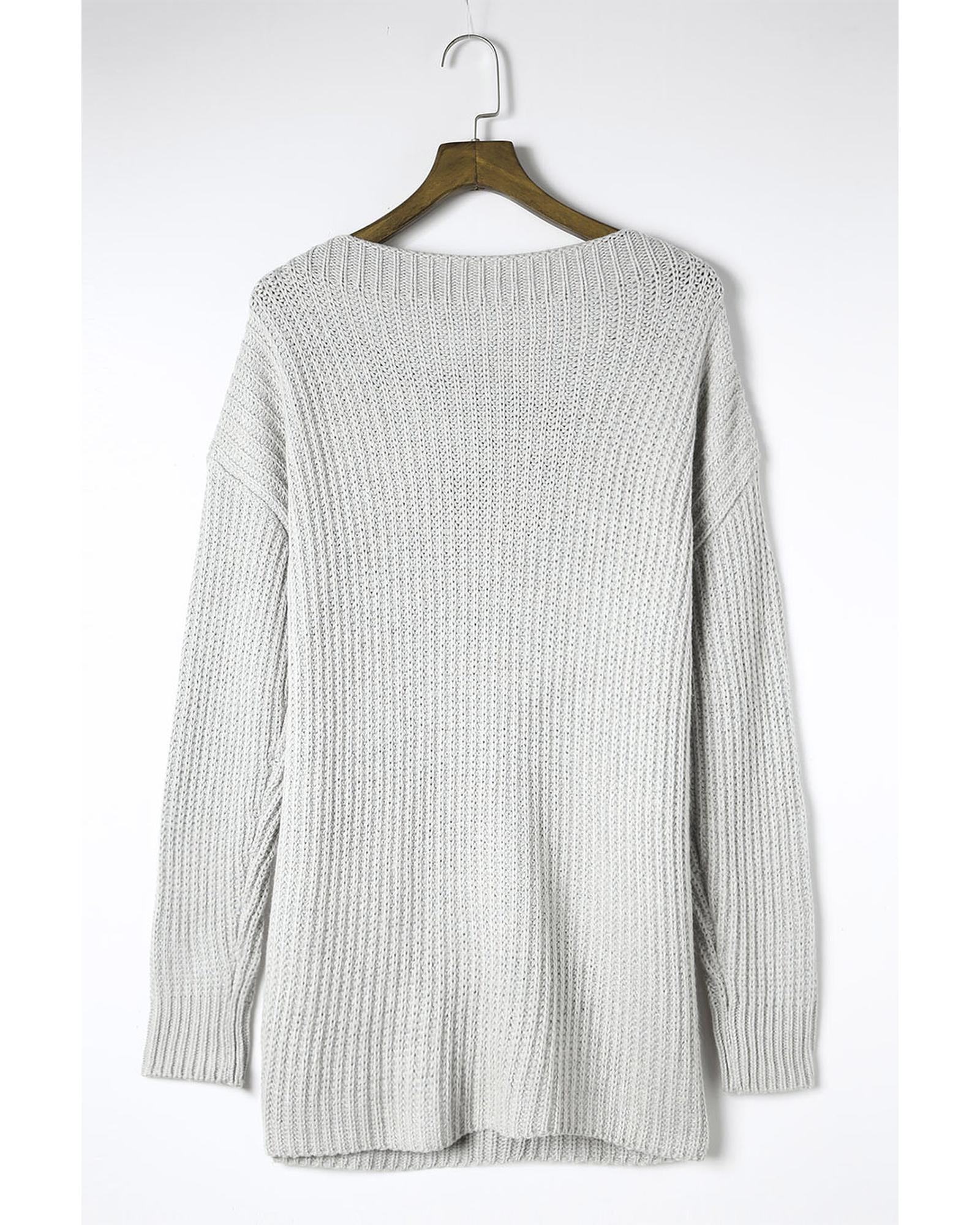 Gray Buttoned Drop Shoulder Oversized Sweater - L