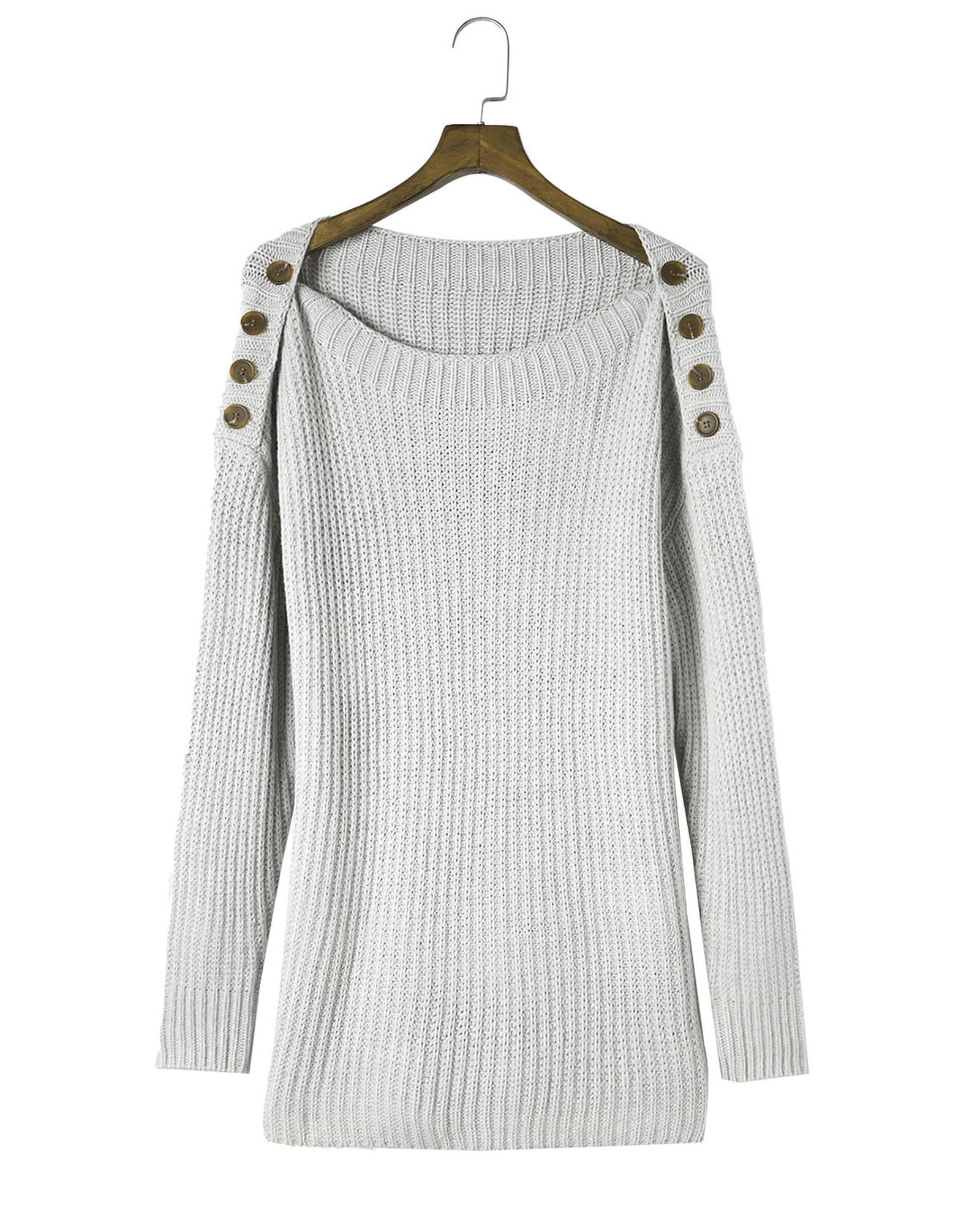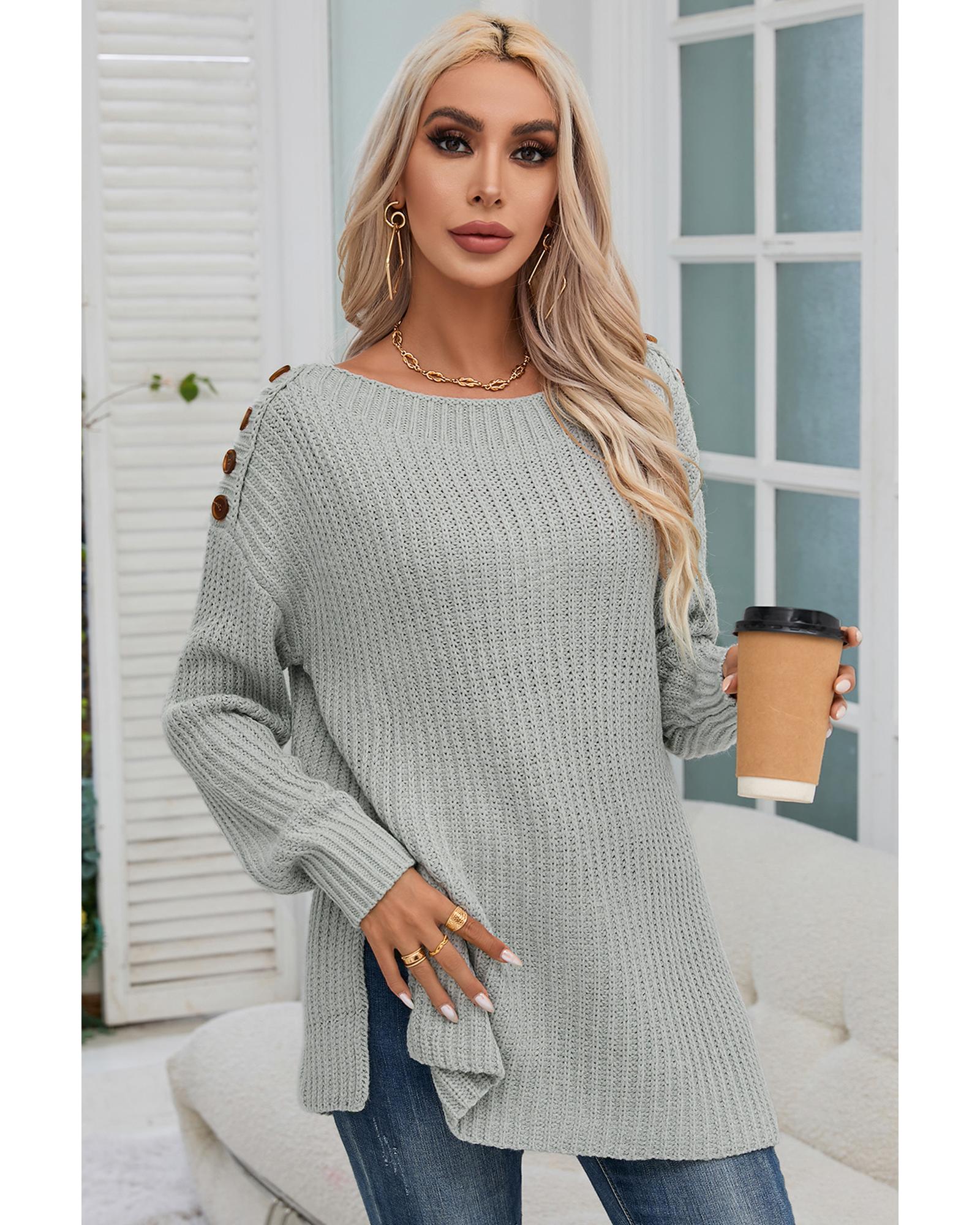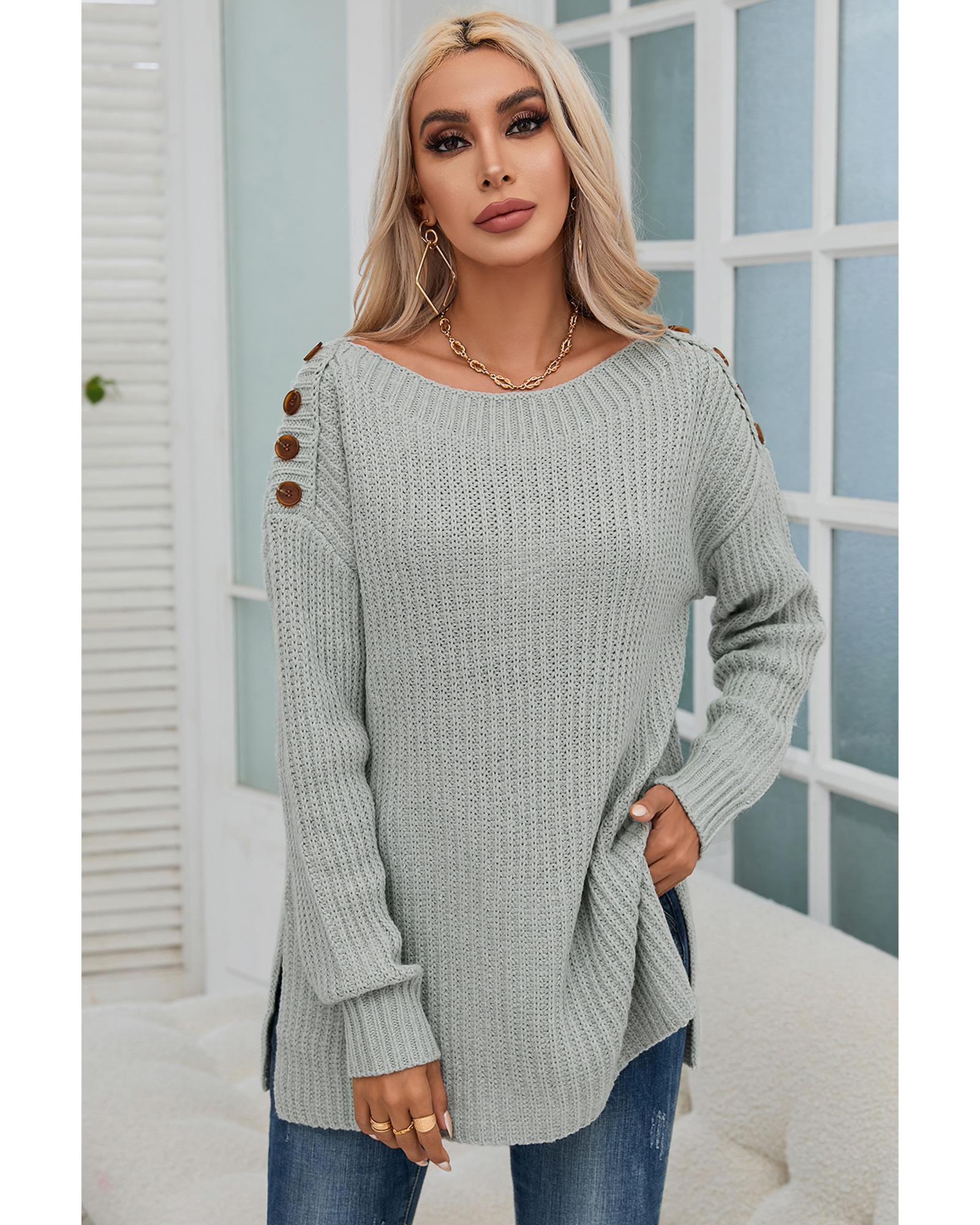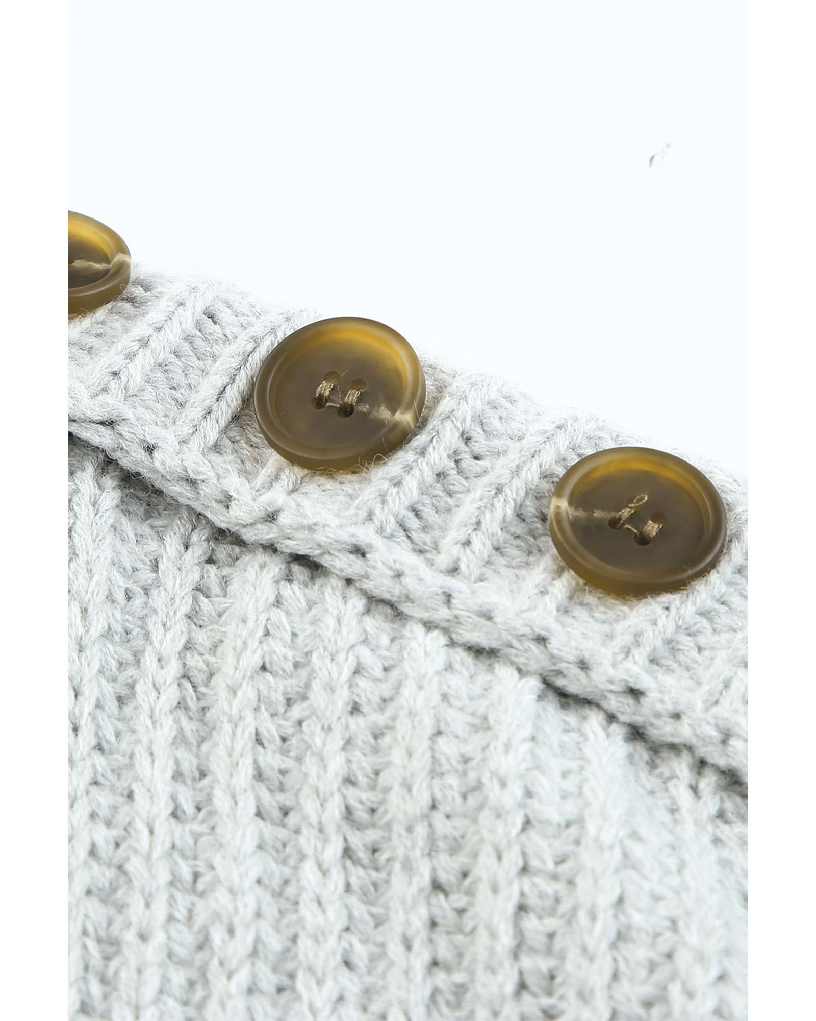 Gray Buttoned Drop Shoulder Oversized Sweater - M