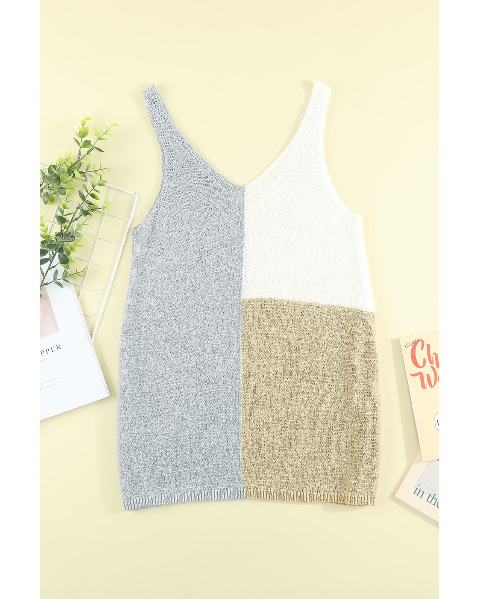 Gray Color Block Knitted Tank Top - S
