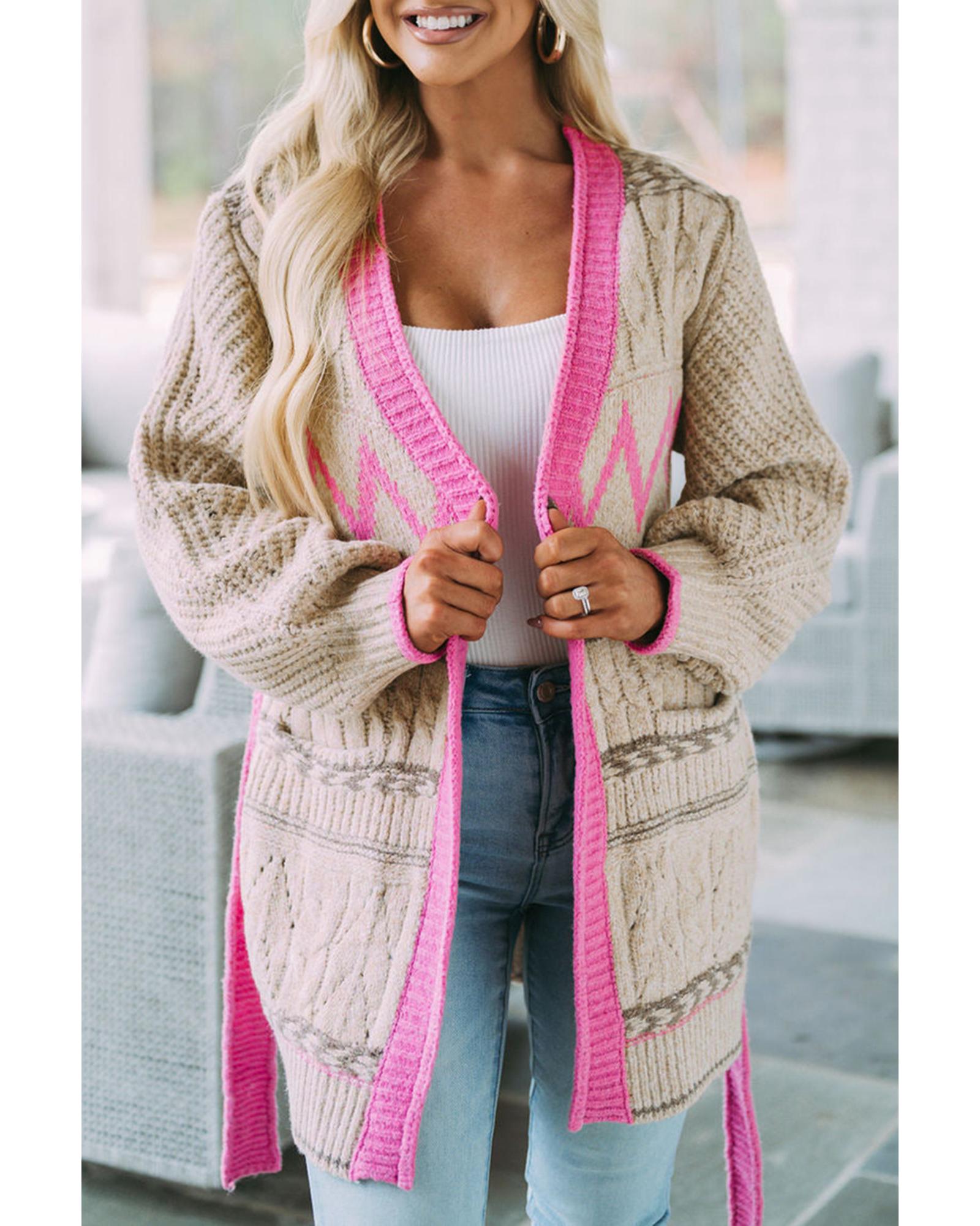 Gray Geometric Cable Knit Pocketed Open Front Cardigan - XL