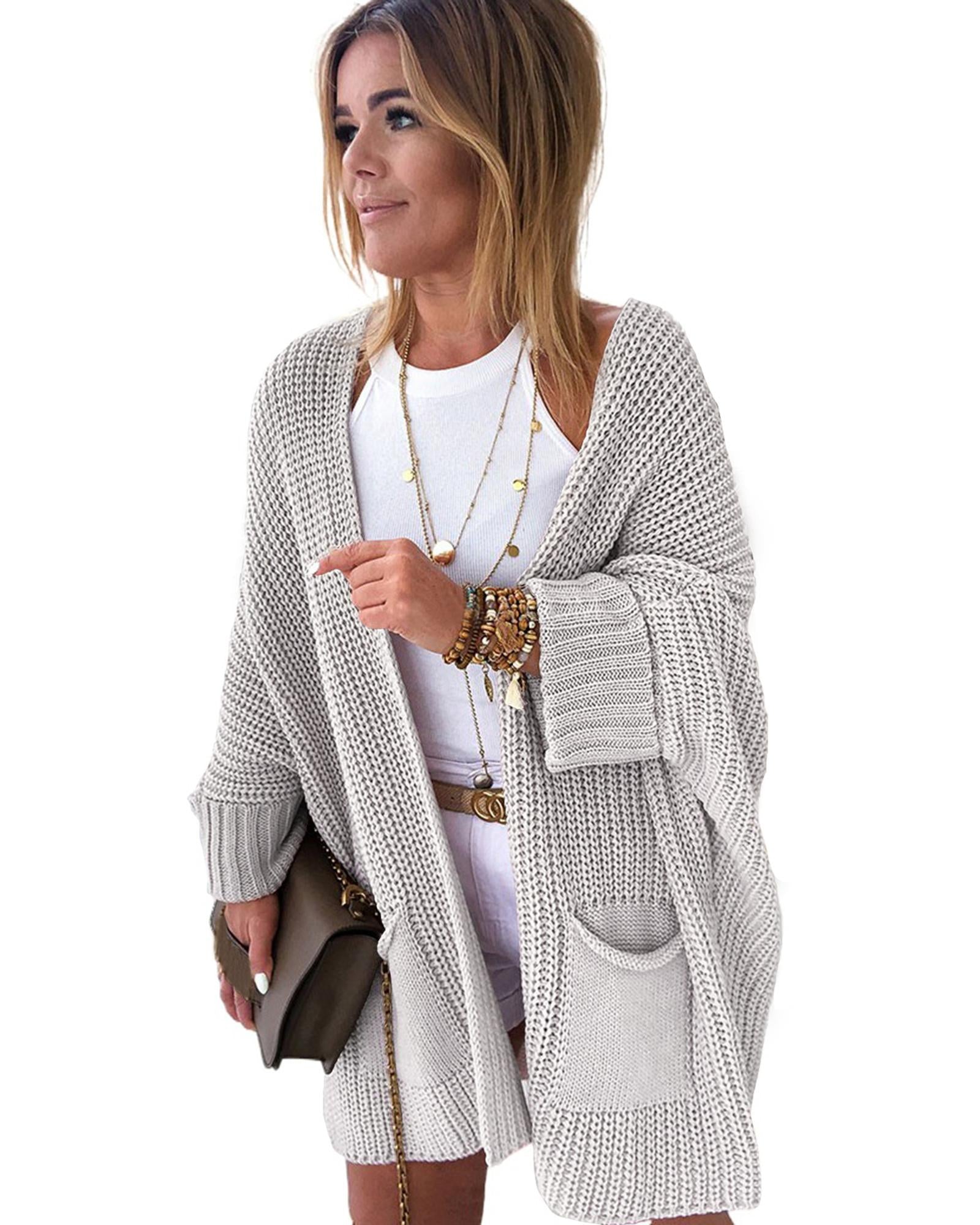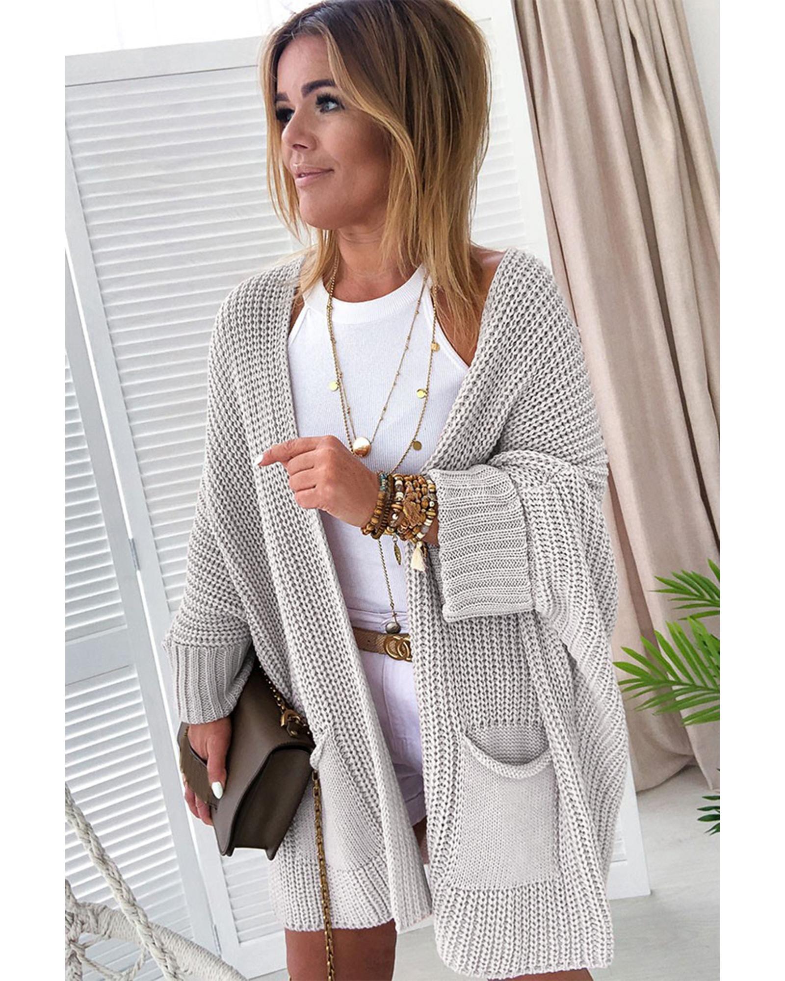 Gray Oversized Fold Over Sleeve Sweater Cardigan - L