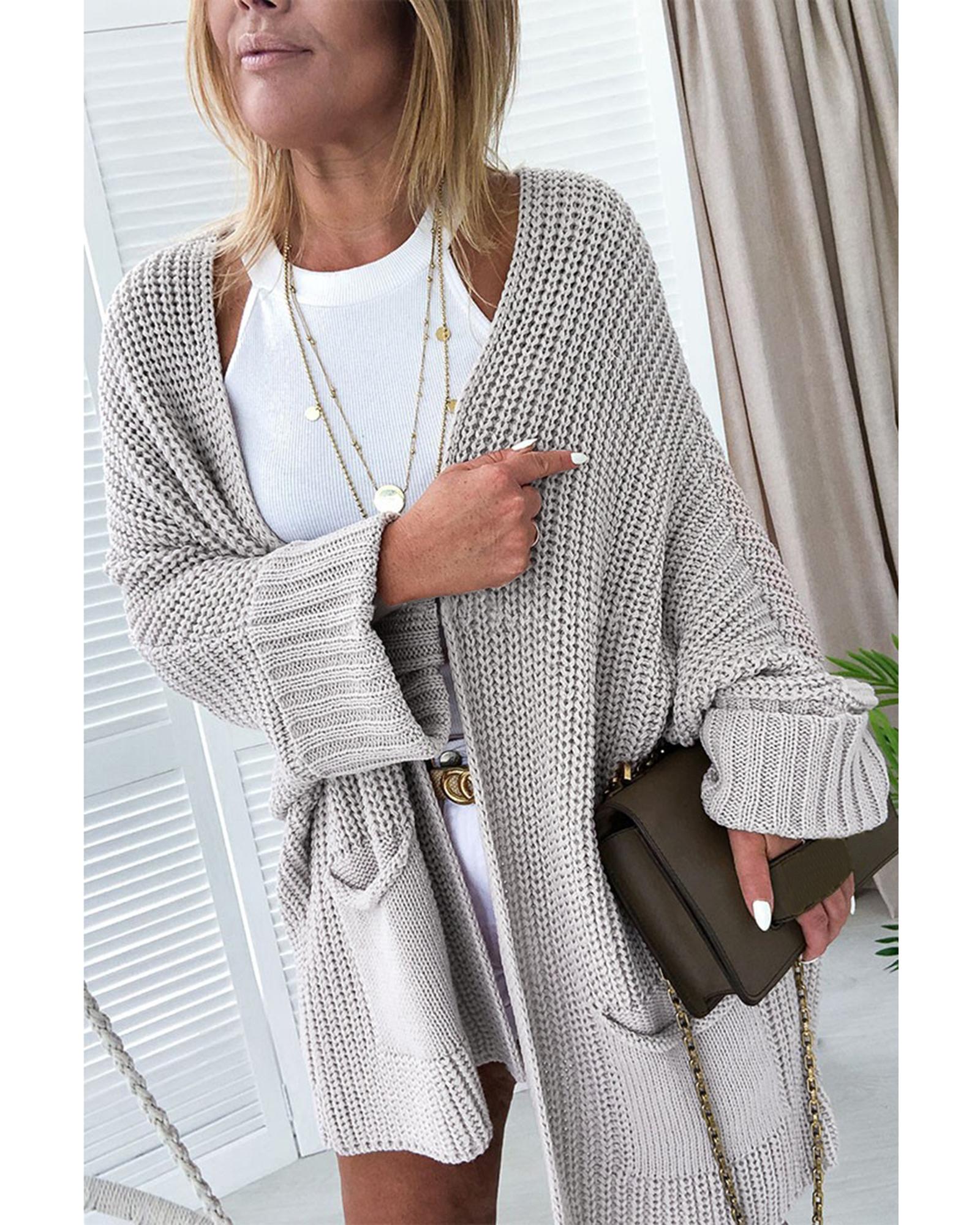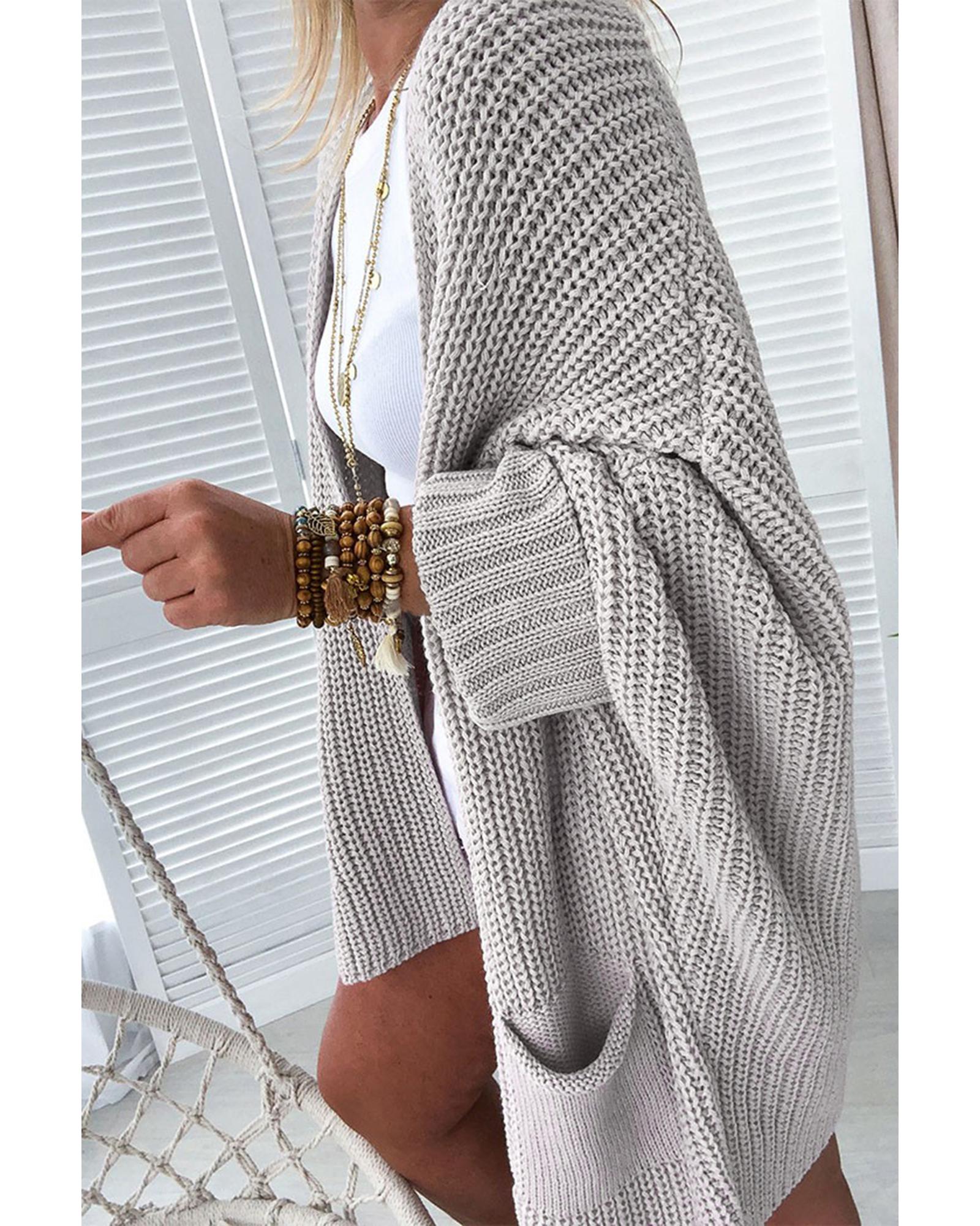 Gray Oversized Fold Over Sleeve Sweater Cardigan - M