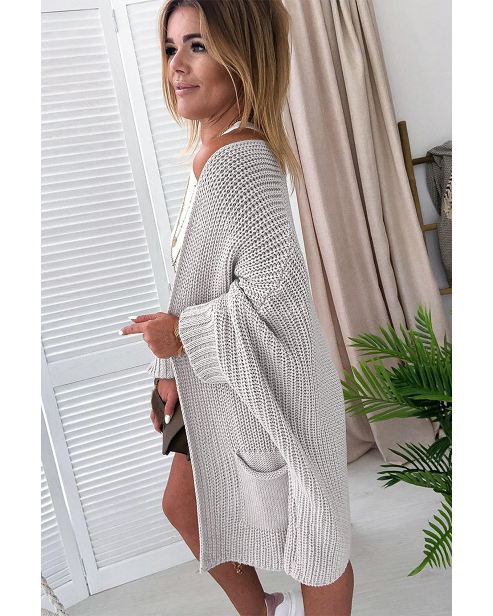 Gray Oversized Fold Over Sleeve Sweater Cardigan - XL