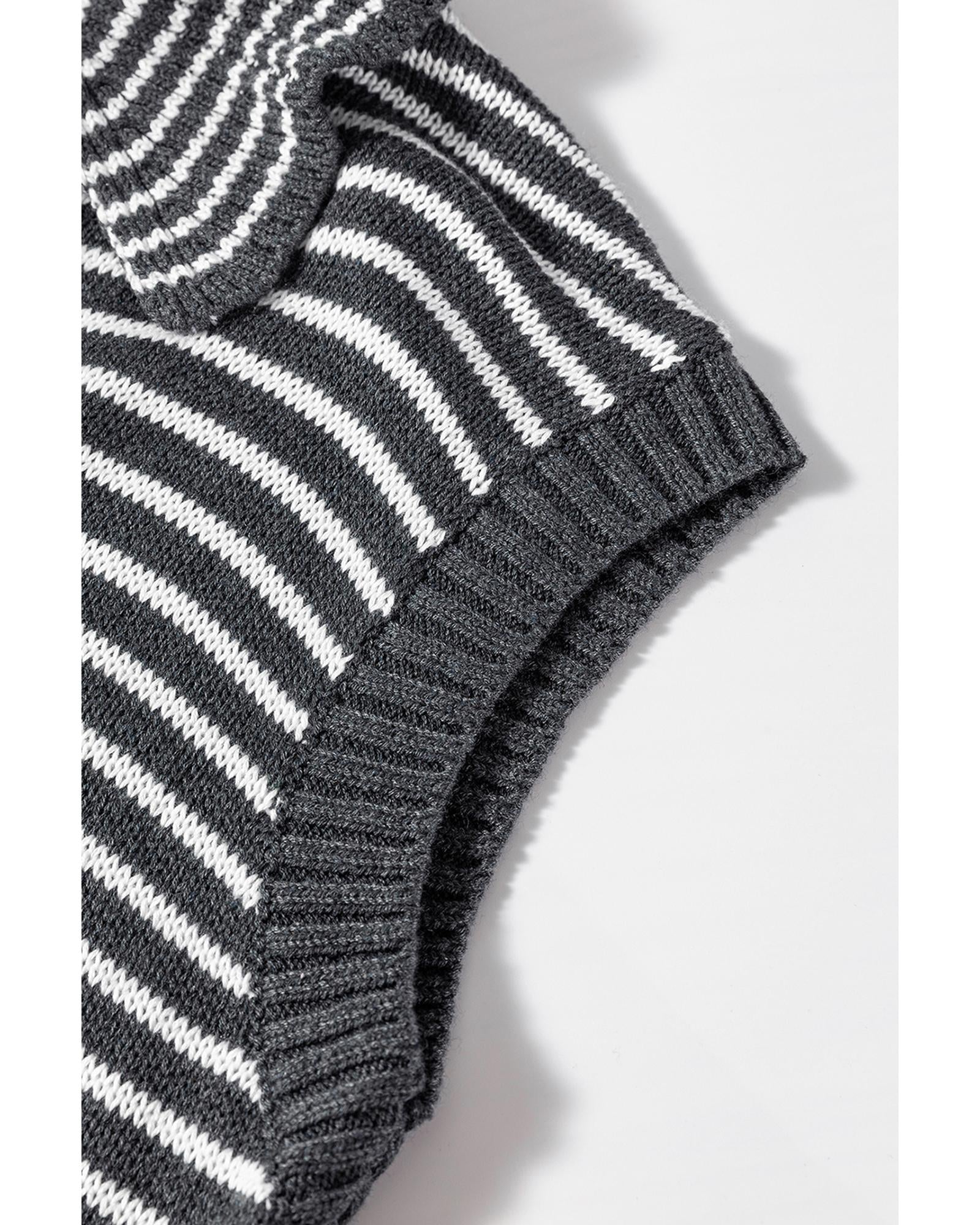 Gray Stripe Collared V Neck Sweater Vest with Pockets - M