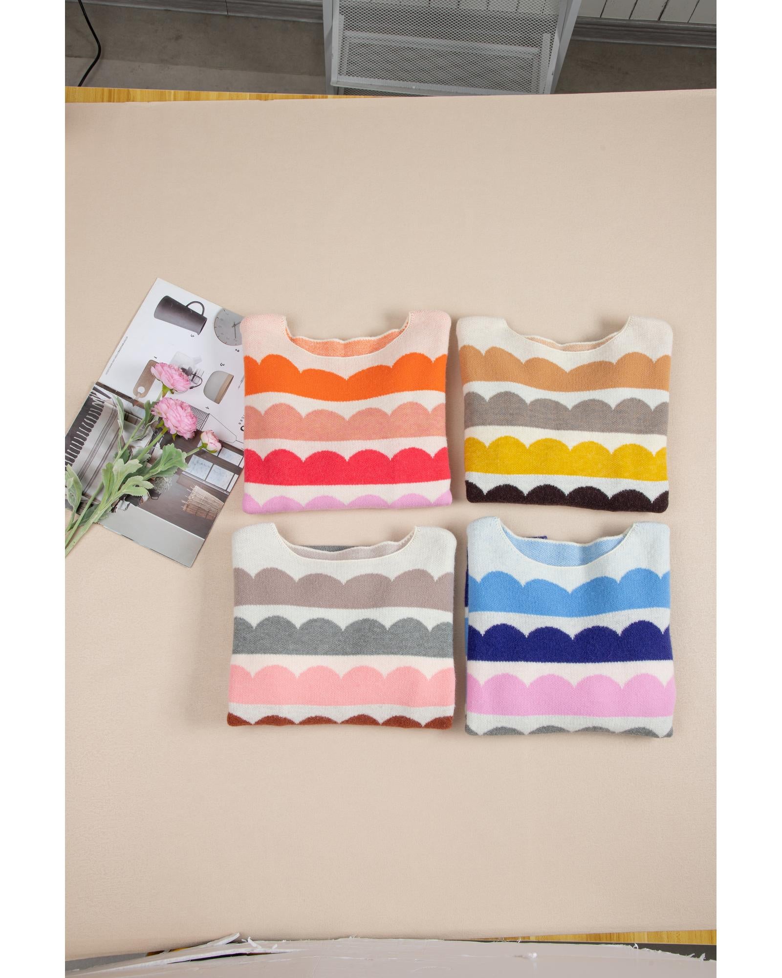 Gray Wave Striped Balloon Sleeve Drop Shoulder Sweater - M