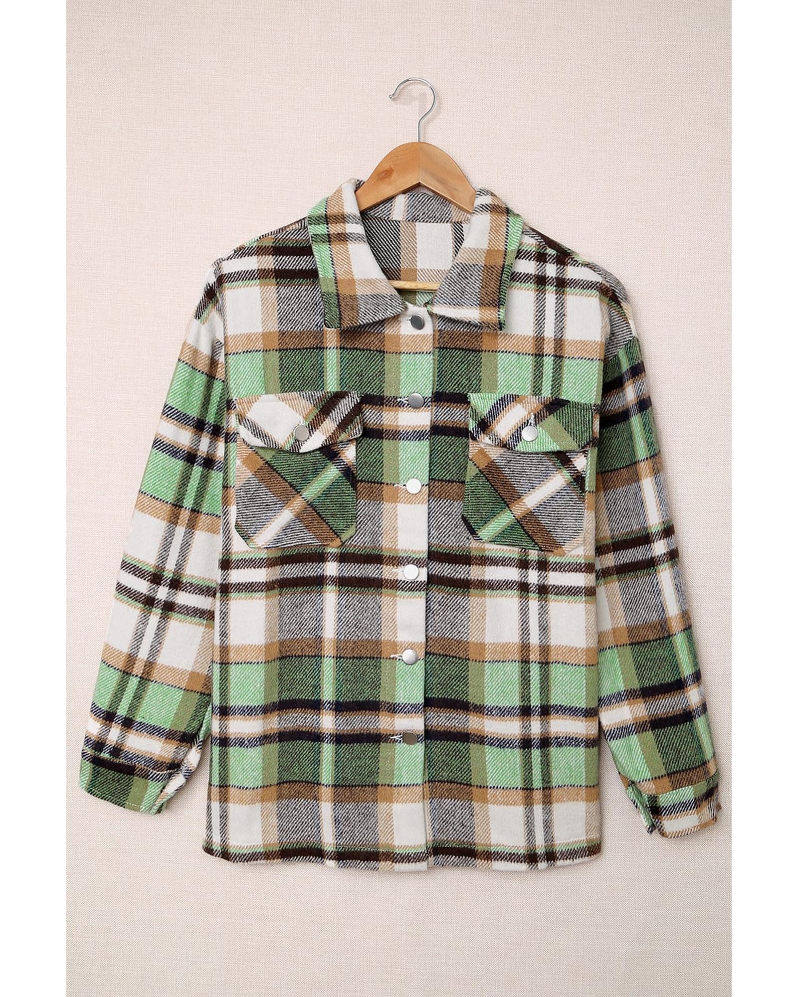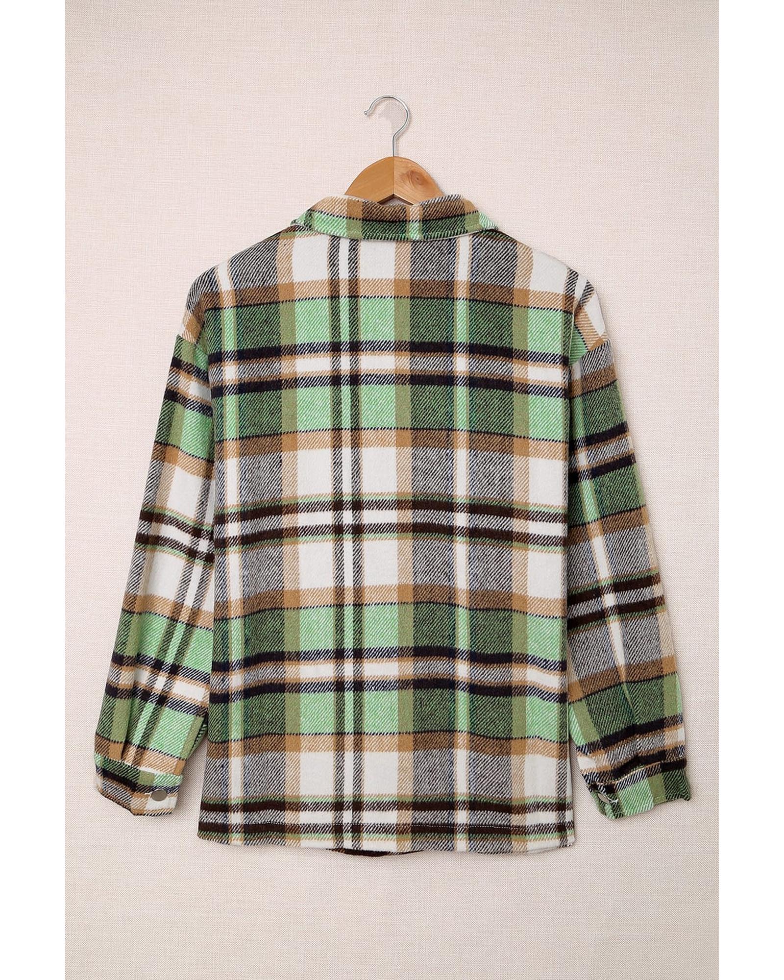 Green Geometric Plaid Print Pocketed Shacket - XL