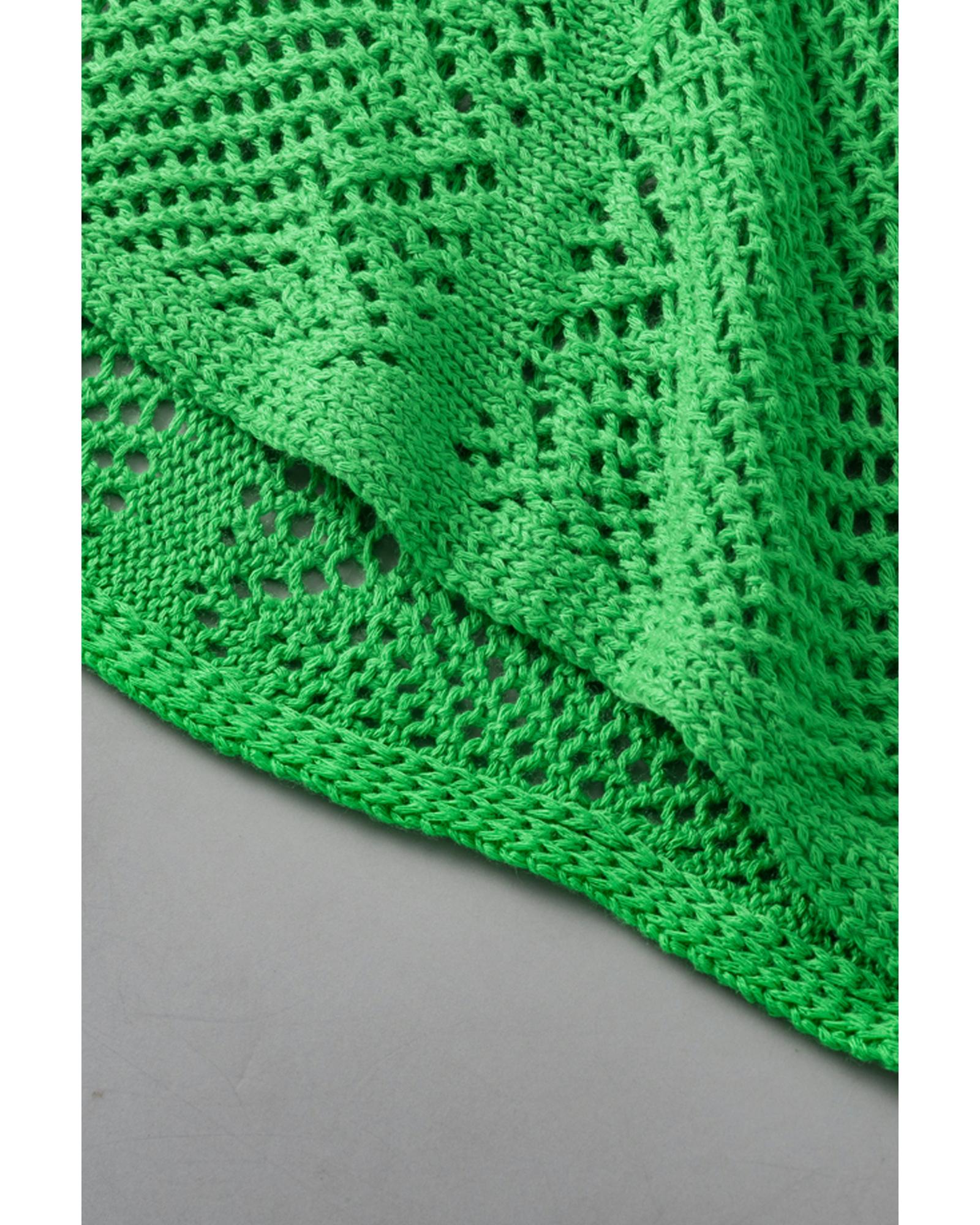 Green Pointelle Knit Scallop Edge Short Sleeve Top - L