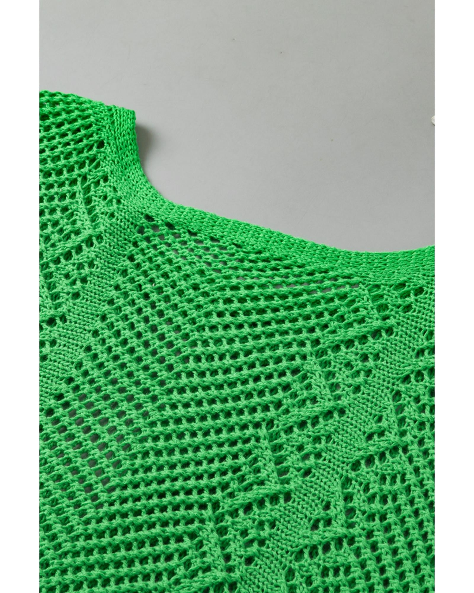 Green Pointelle Knit Scallop Edge Short Sleeve Top - M