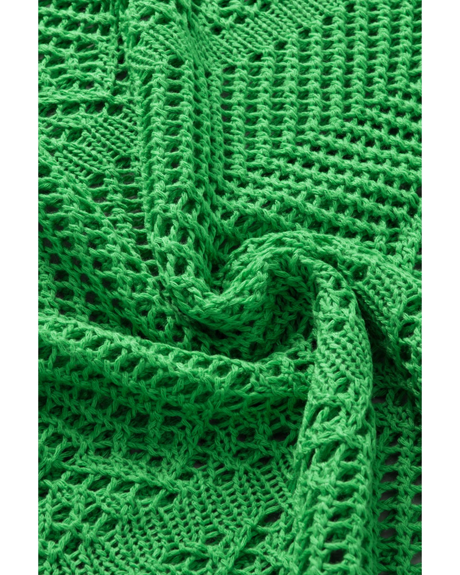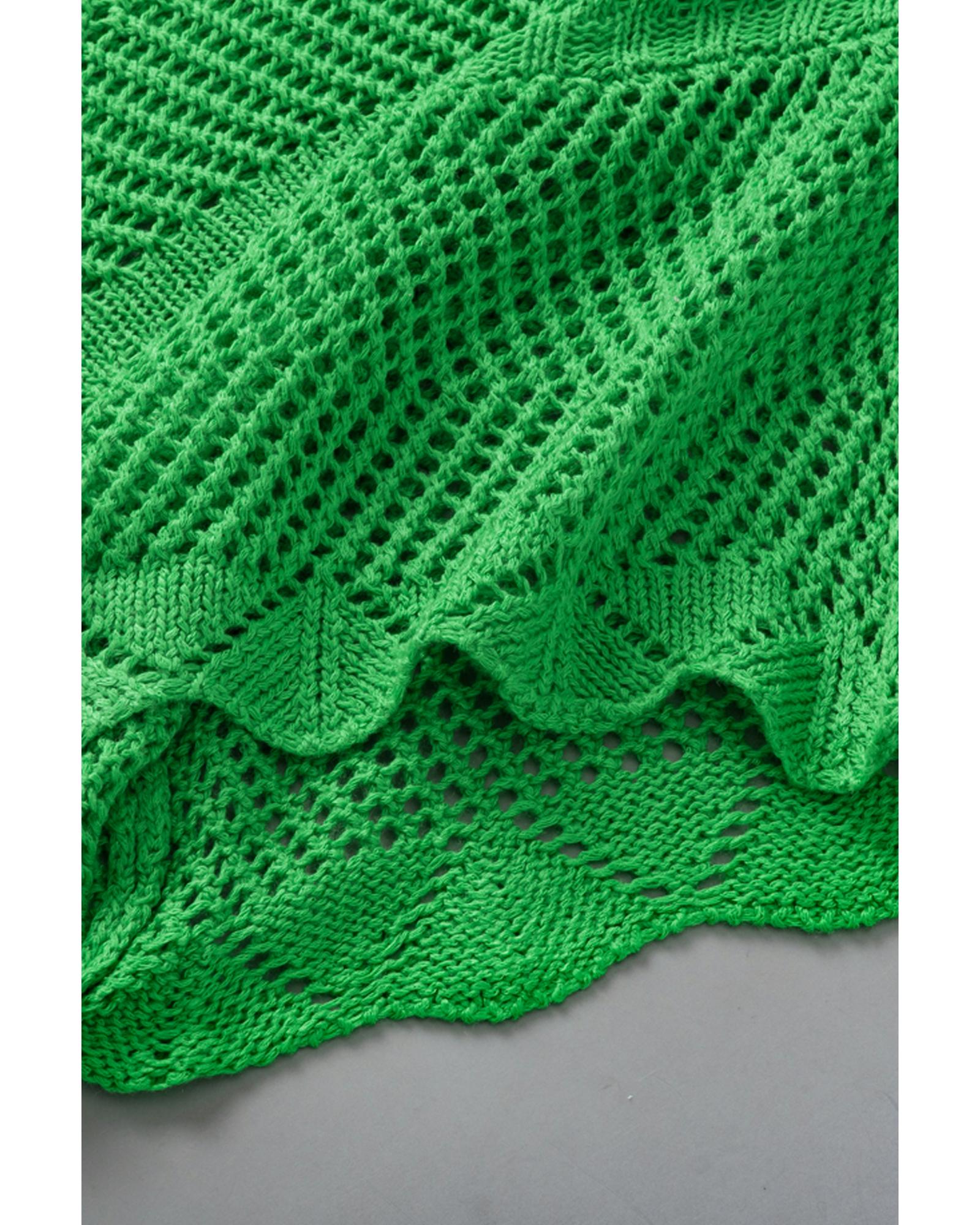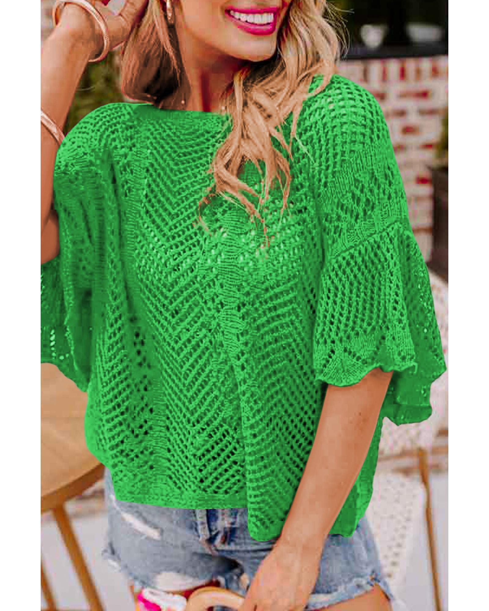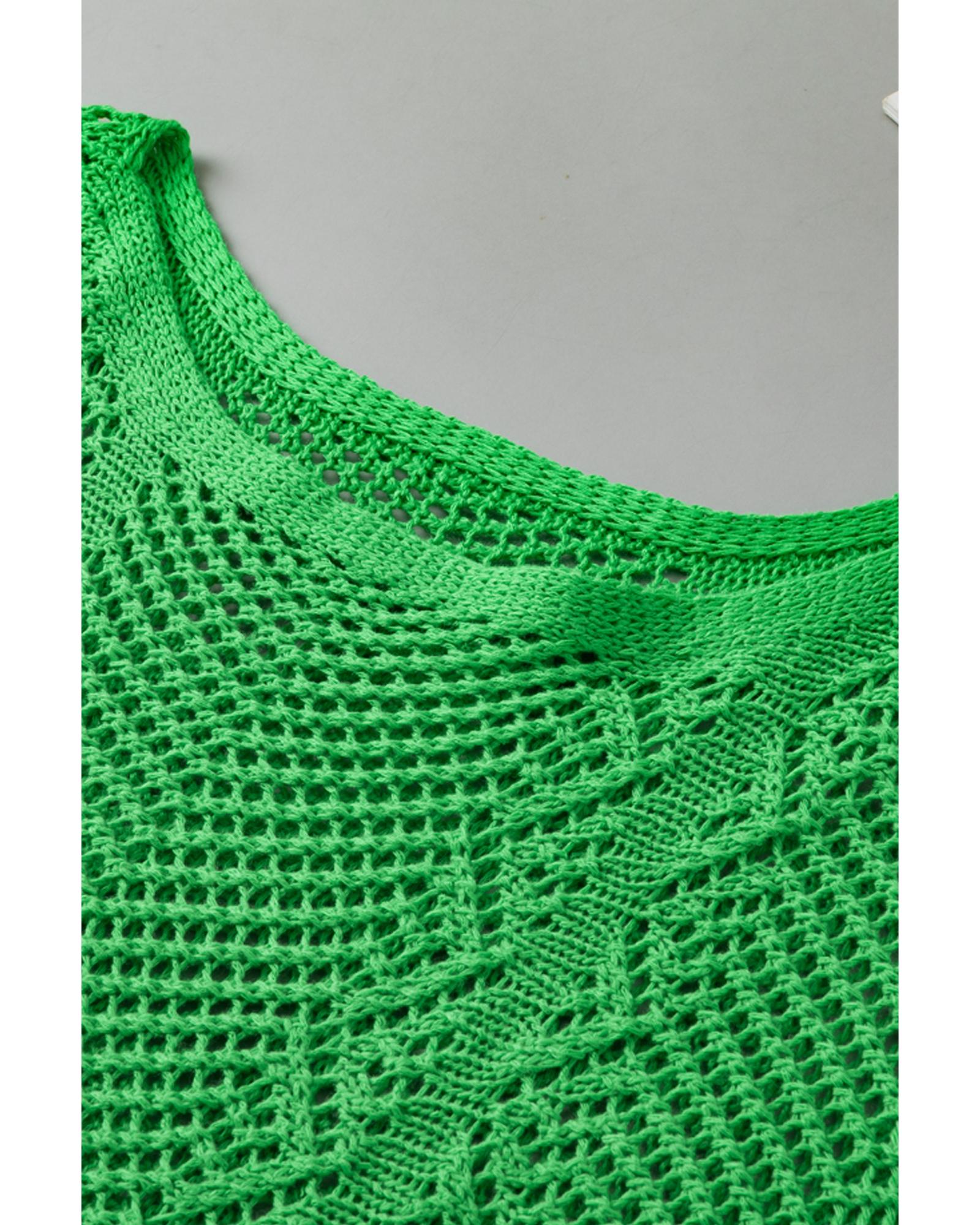 Green Pointelle Knit Scallop Edge Short Sleeve Top - XL