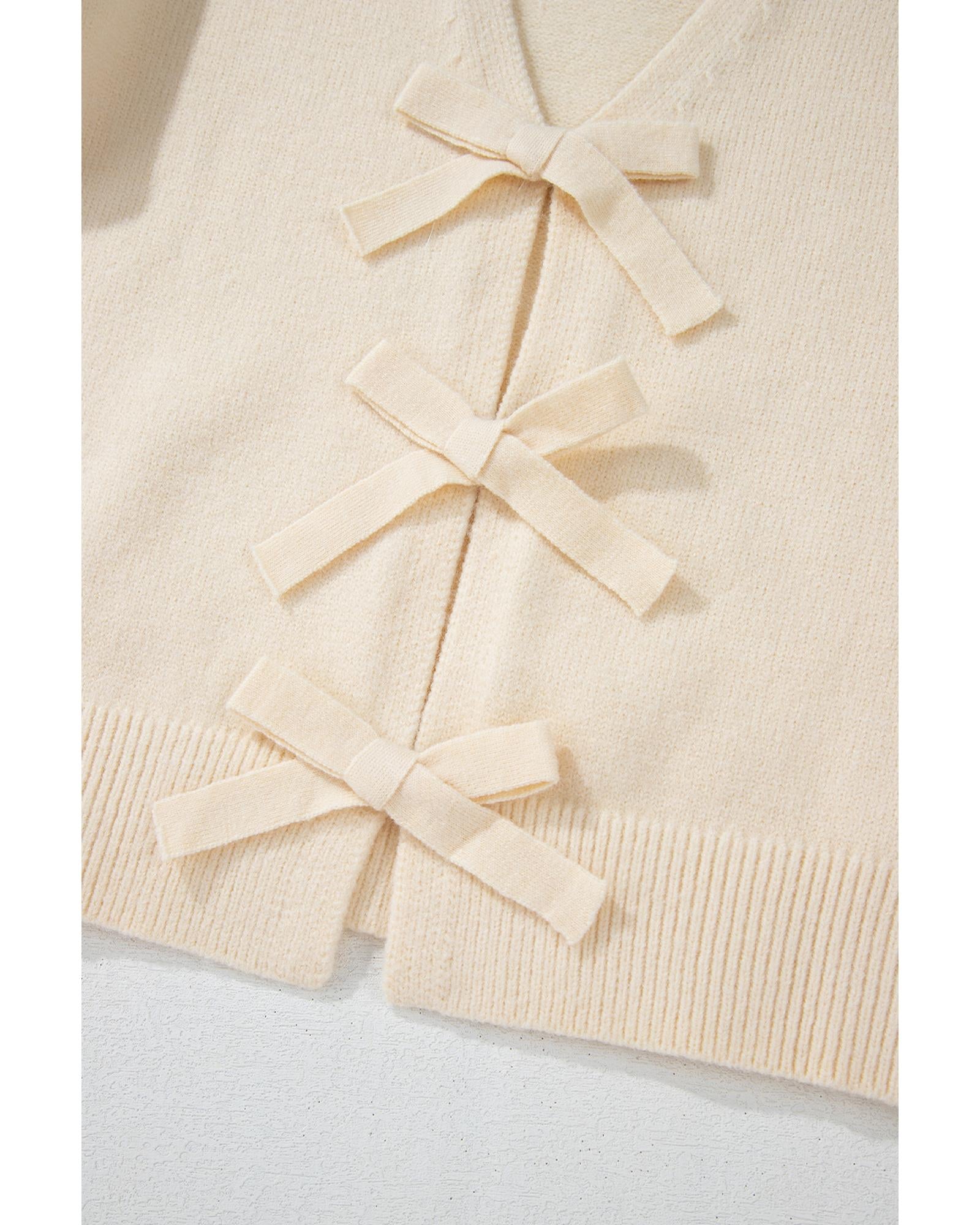 Jet Stream Bowknot Front Loose V Neck Knitted Cardigan - M