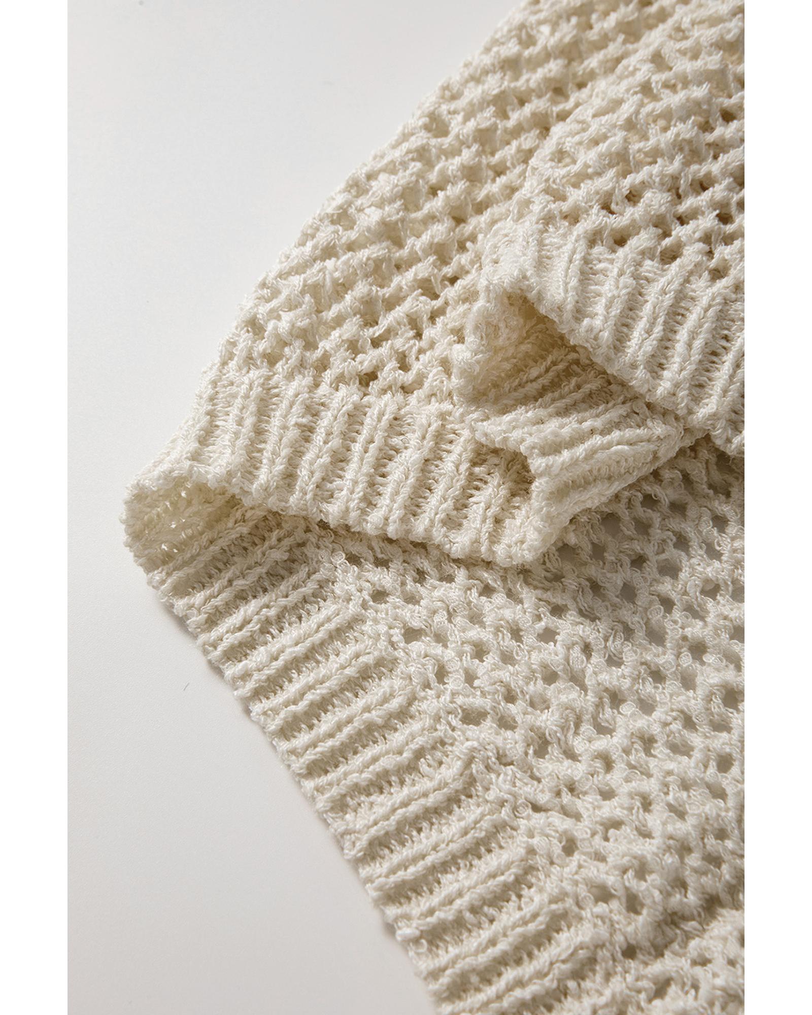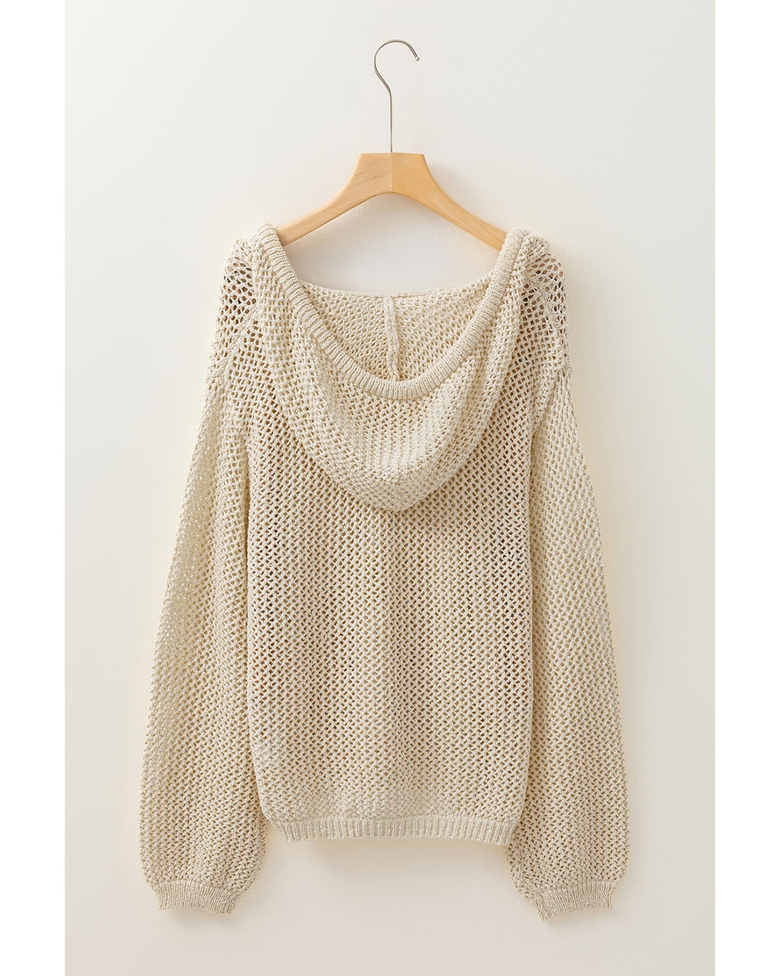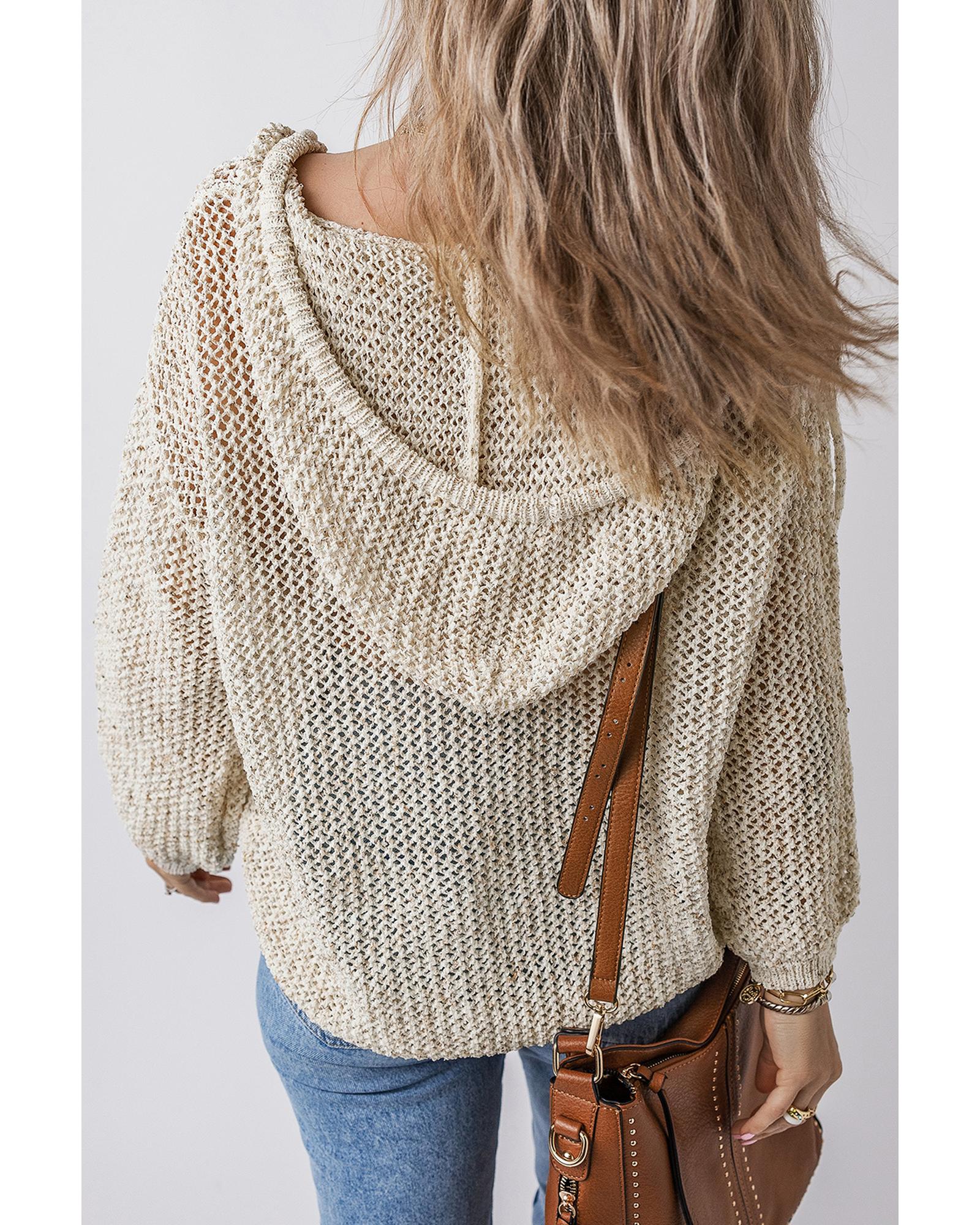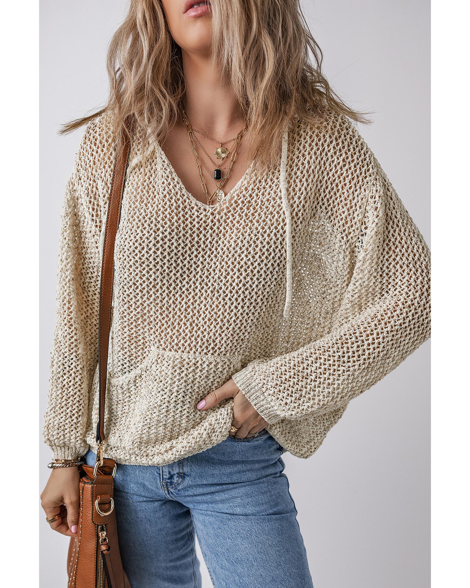 Jet Stream Hollow-out Kangaroo Pocket V Neck Hooded Sweater - S