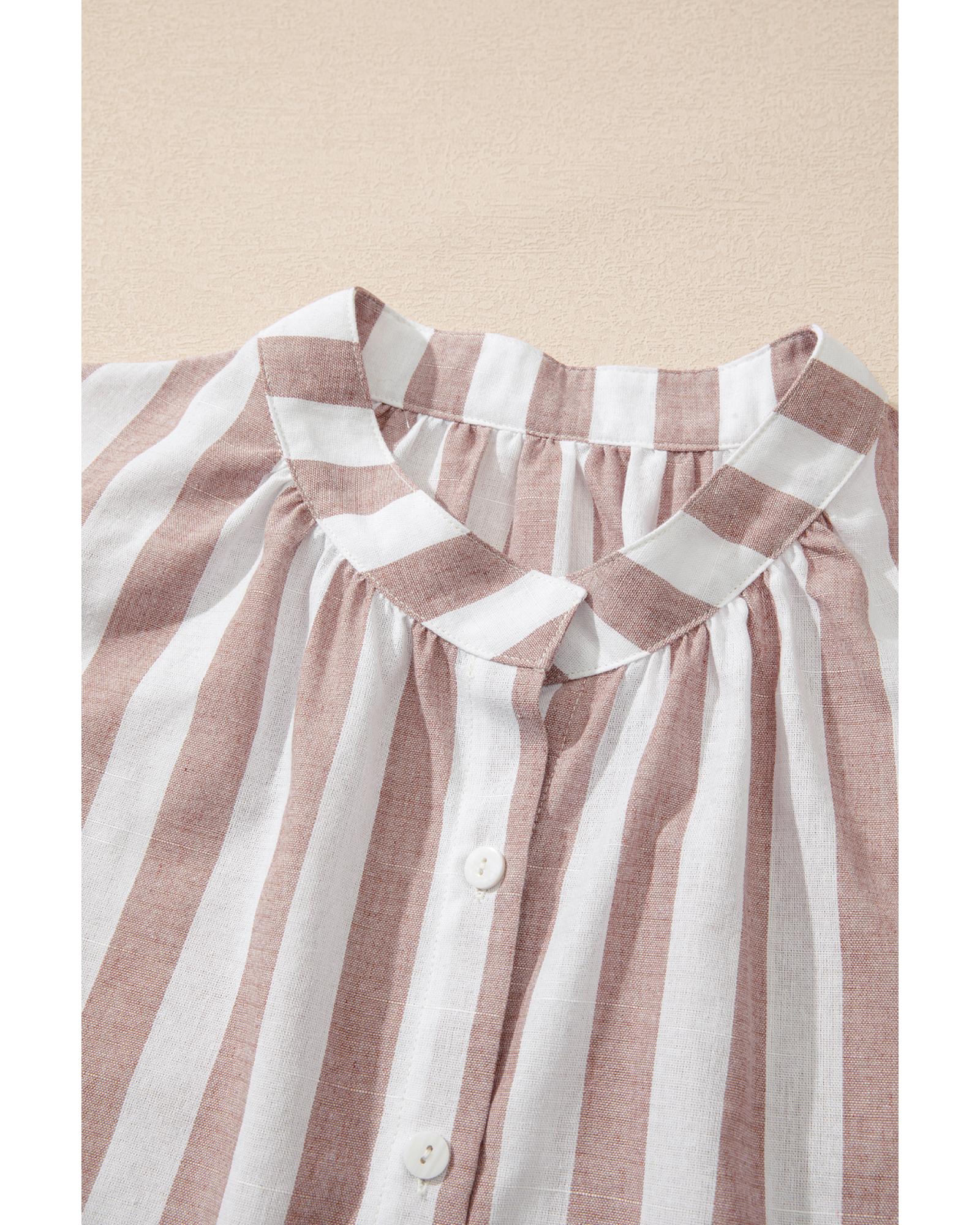 Khaki Stripe Casual Button Down Sleeveless Shirt - L