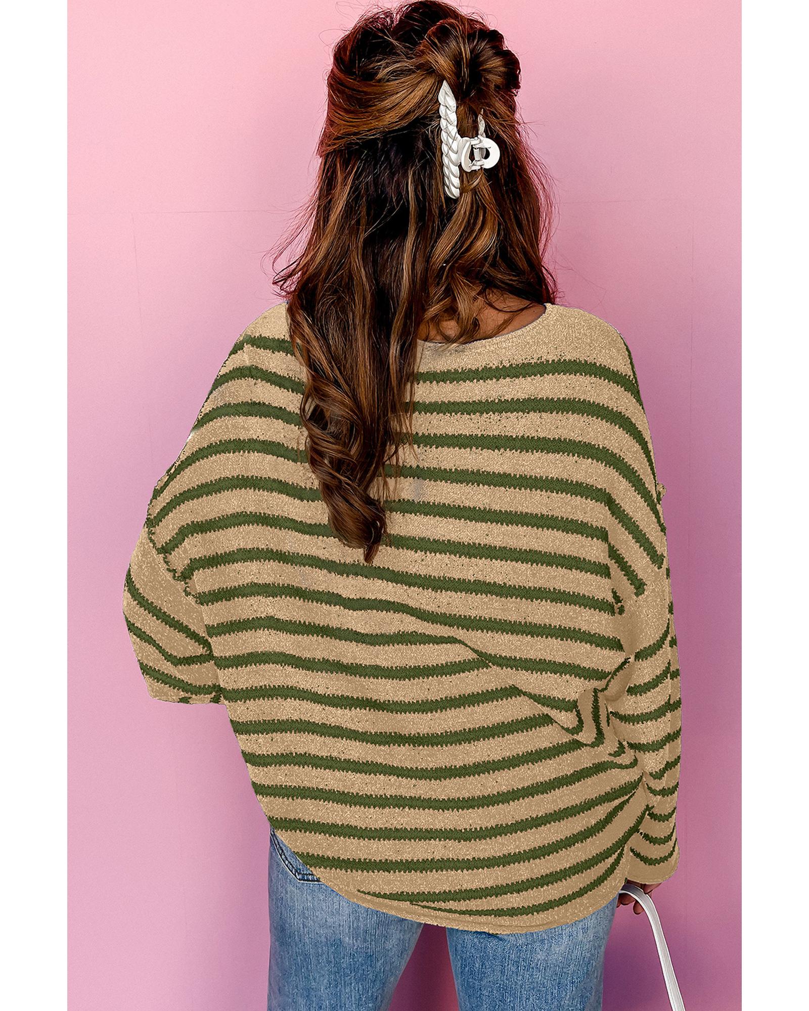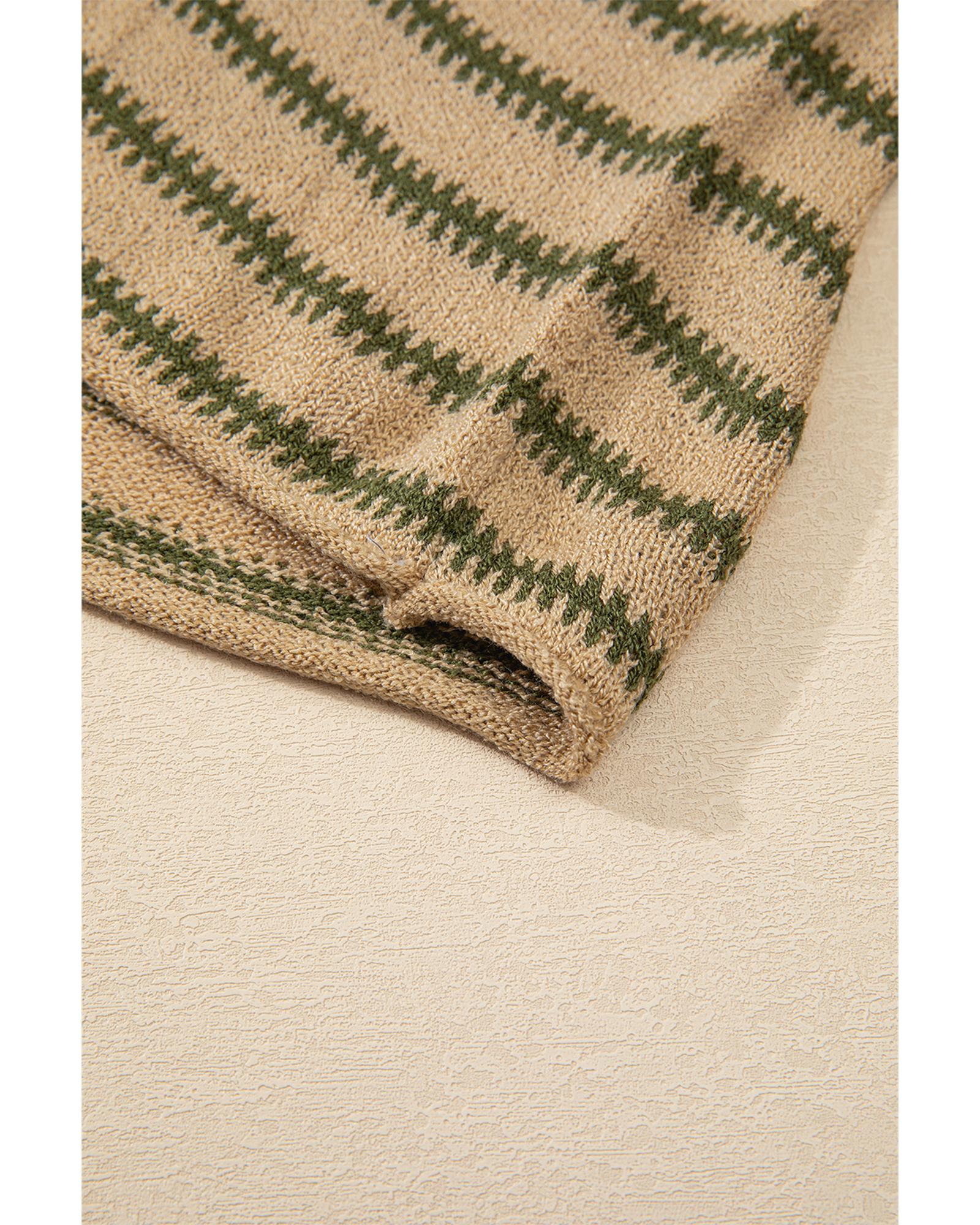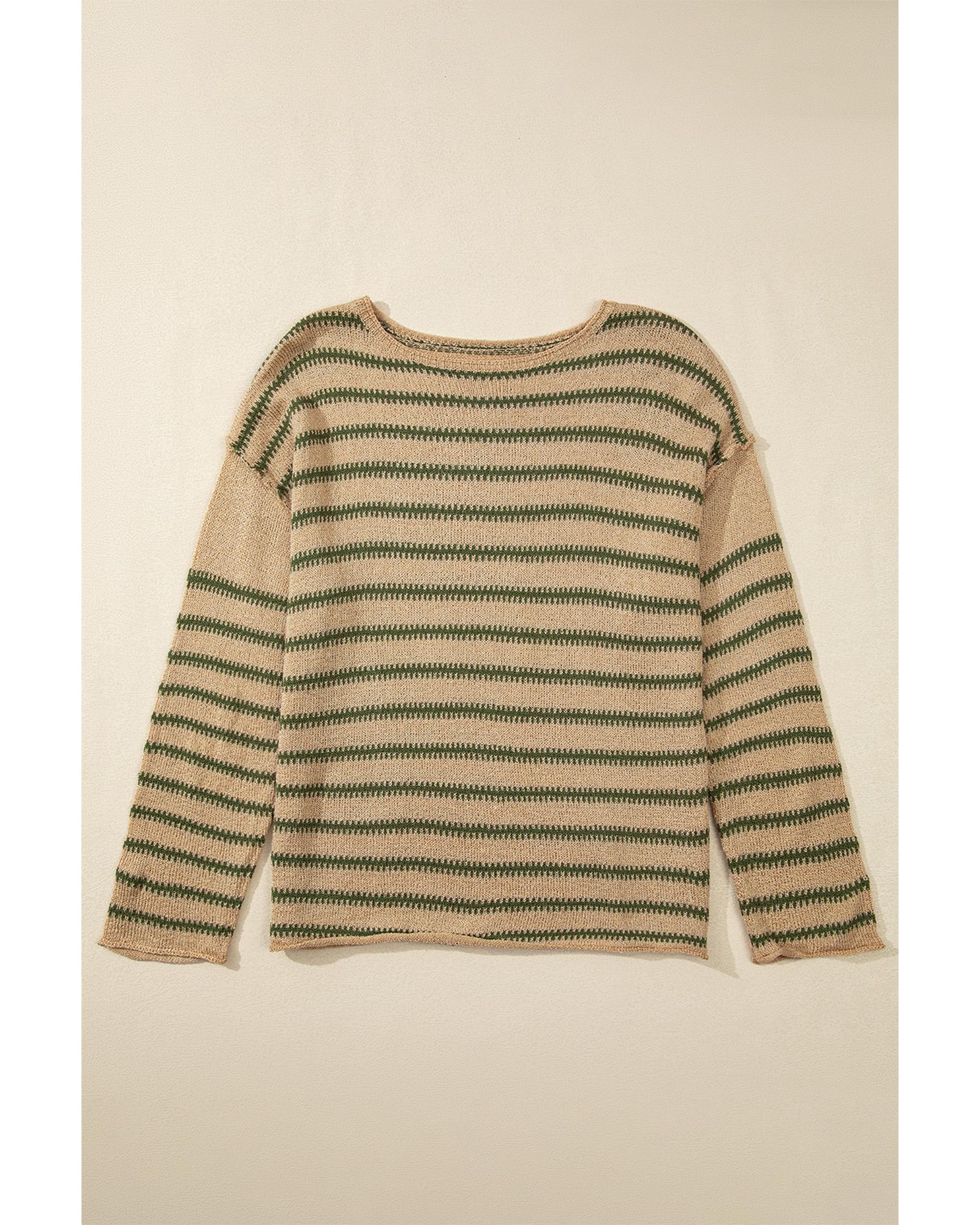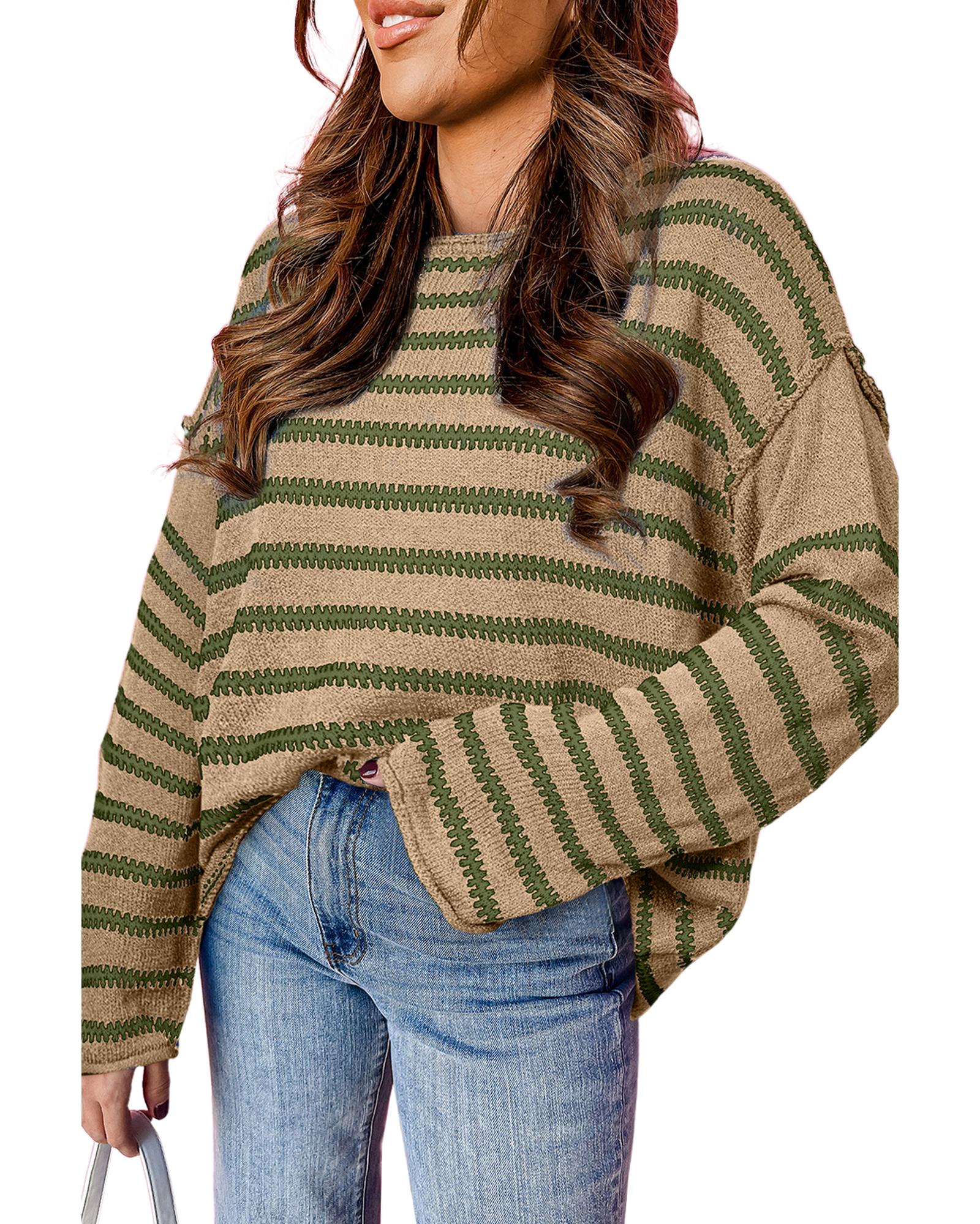 Khaki Stripe Drop Shoulder Casual Sweater - XL