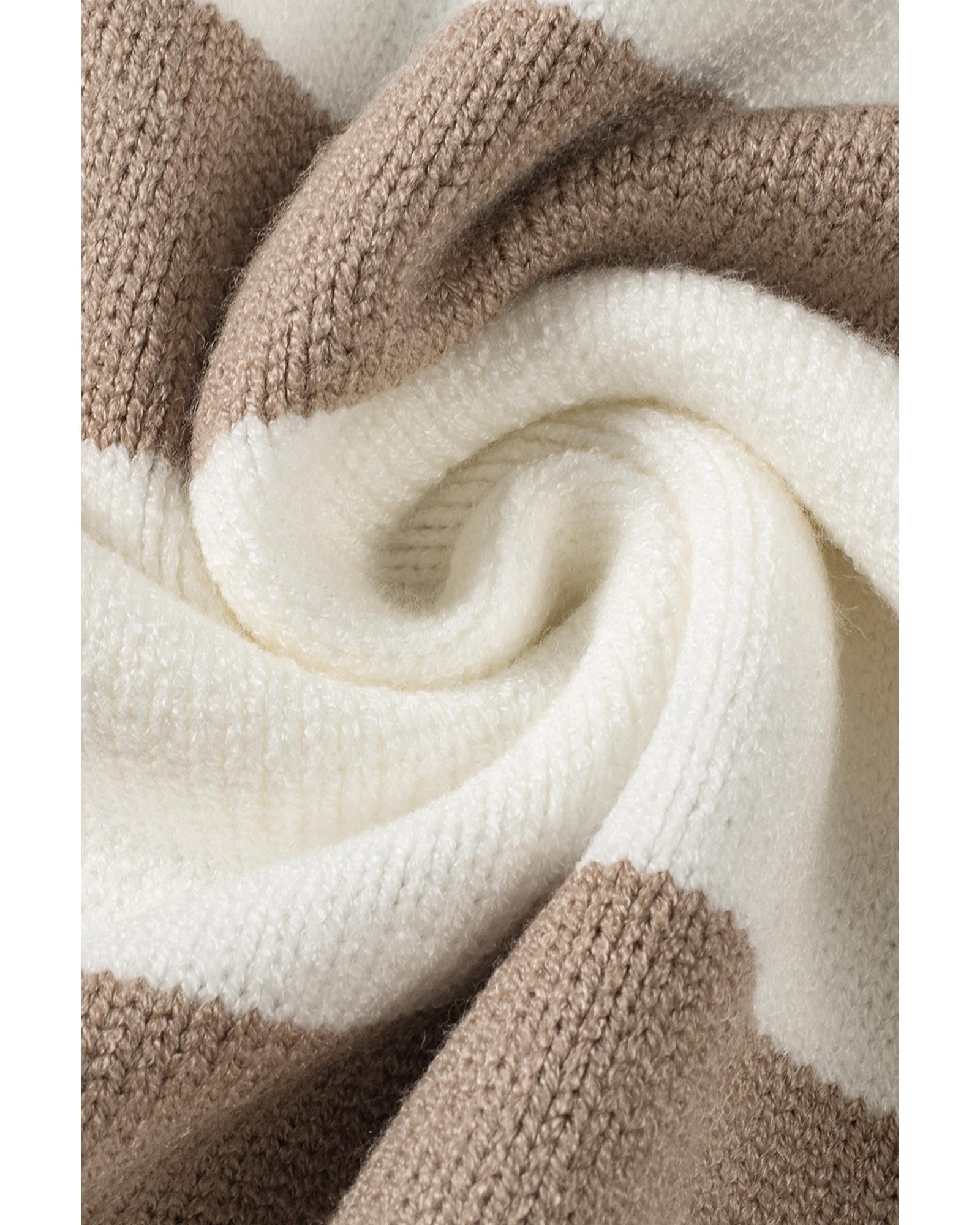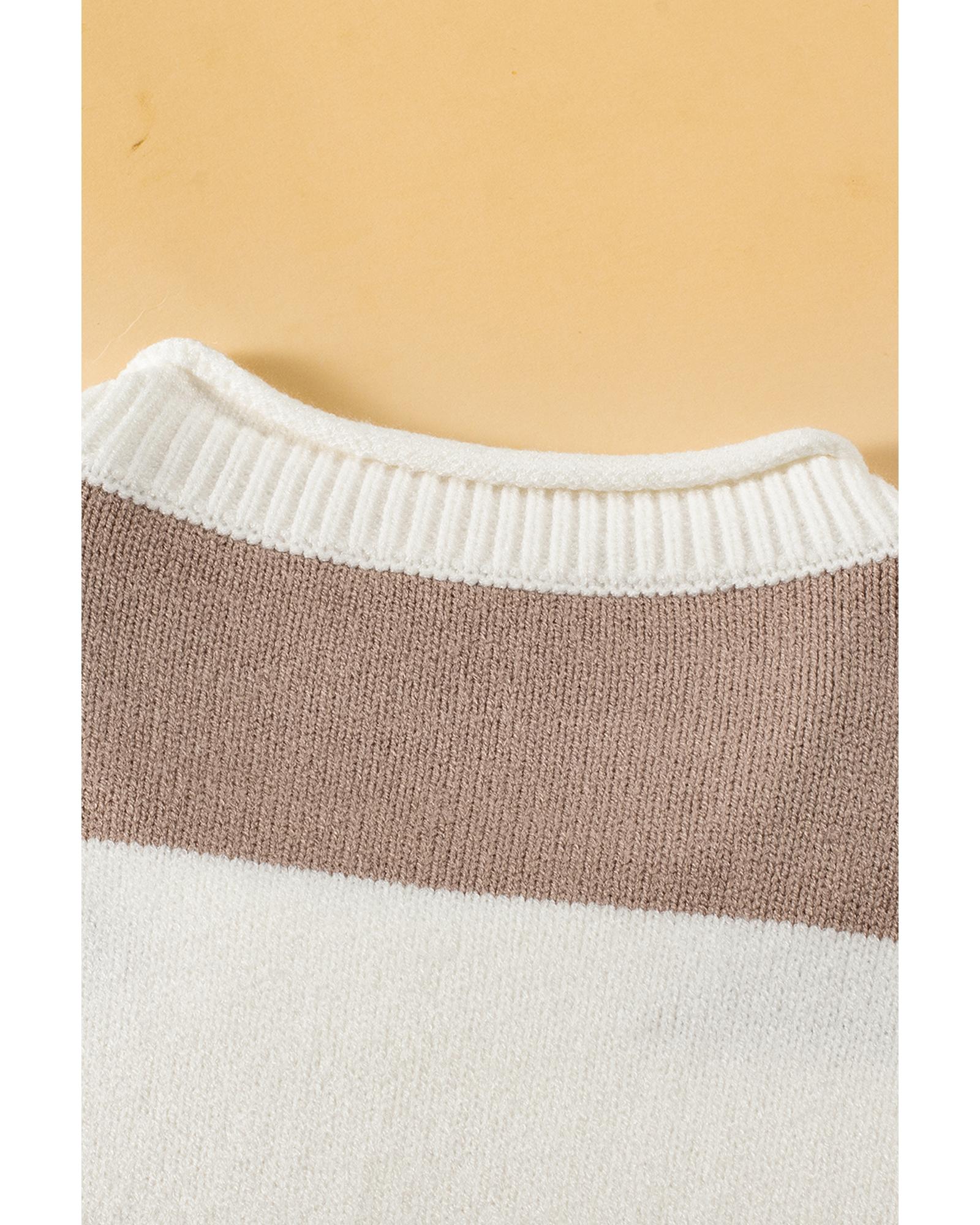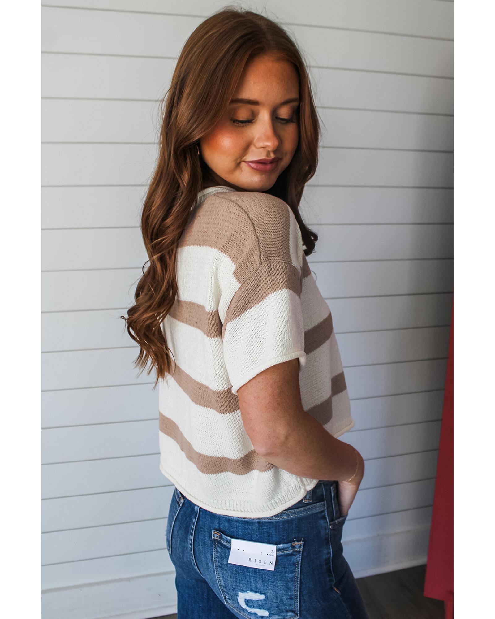 Khaki Stripe Dropped Short Sleeve Lightweight Knitted Top - L