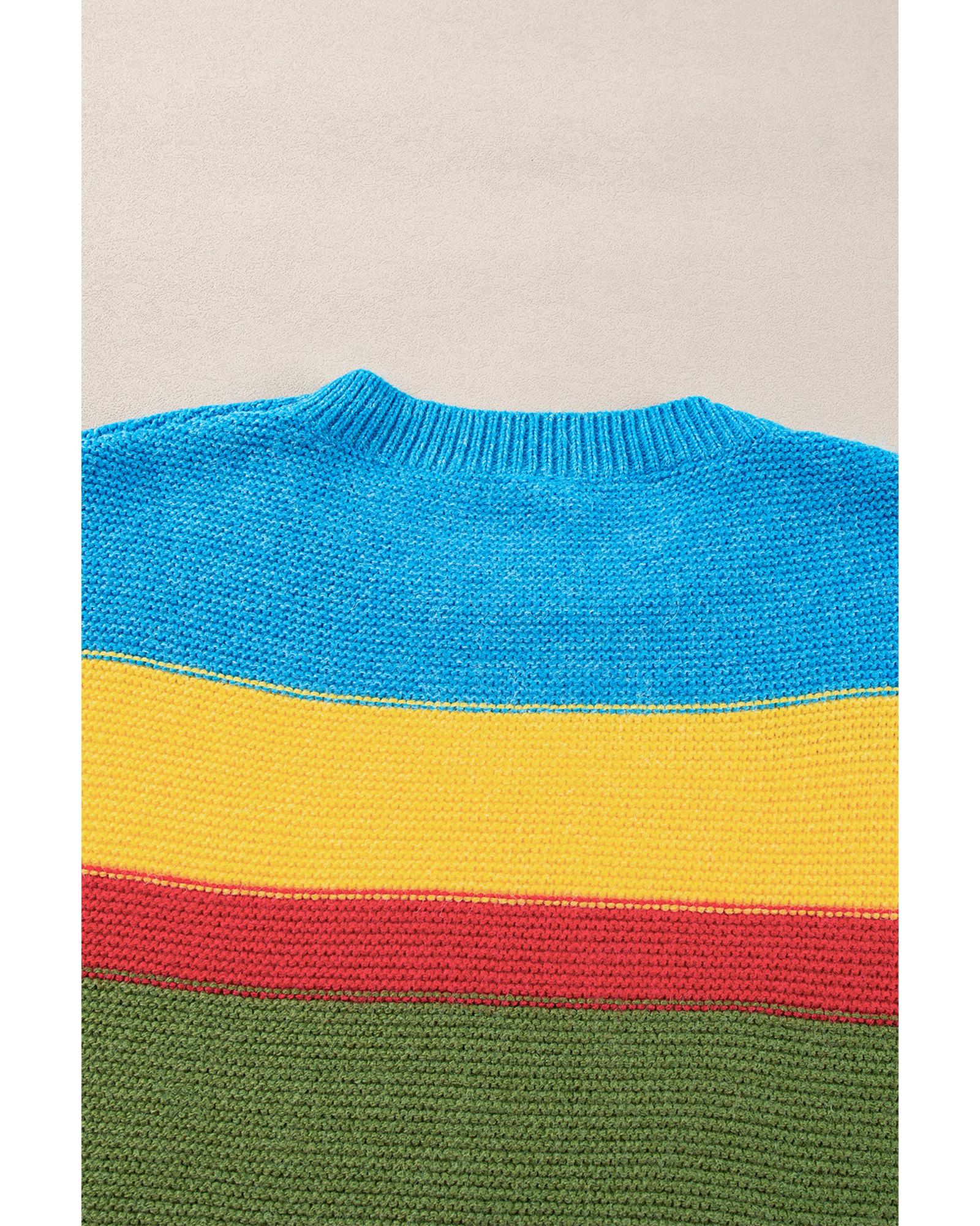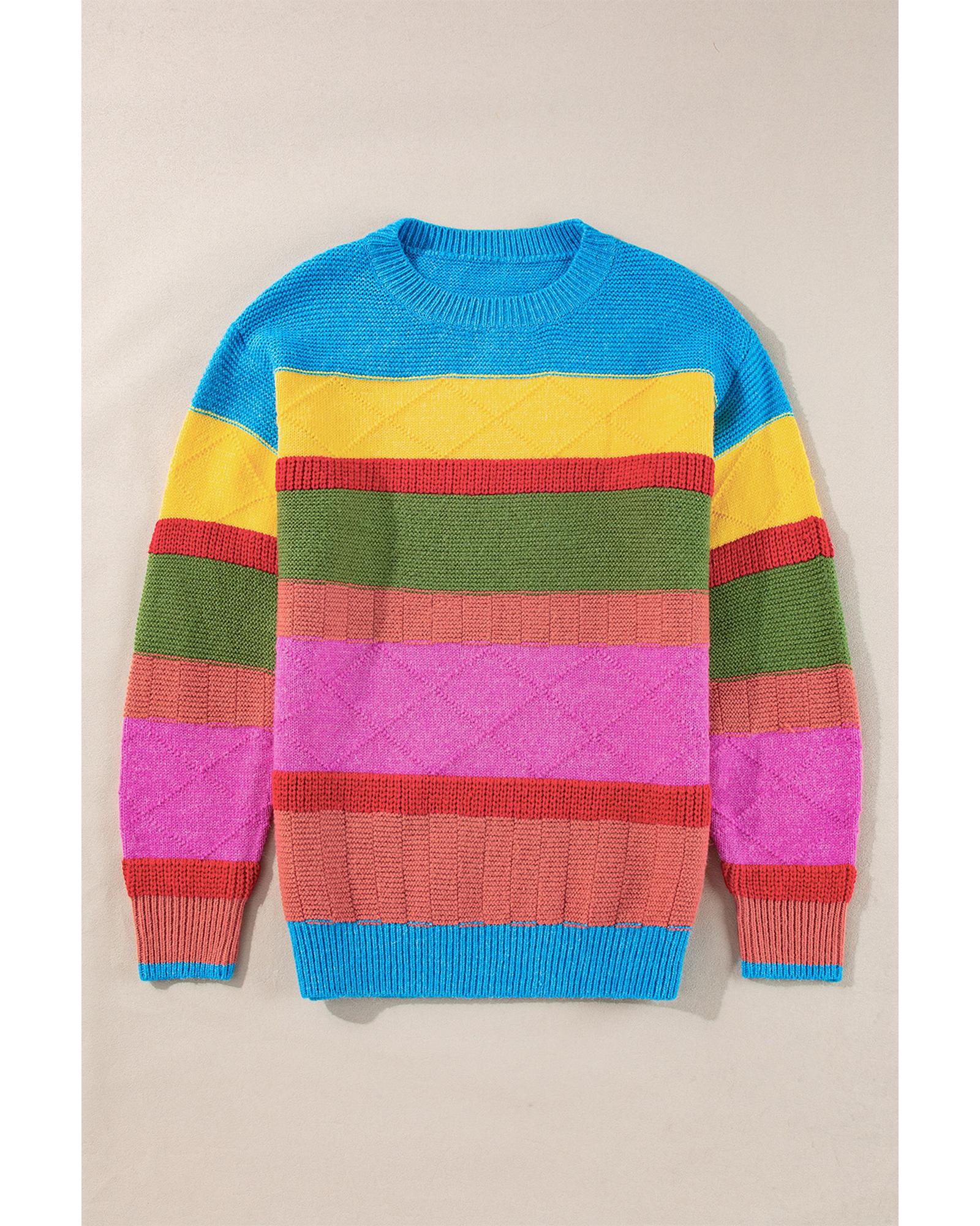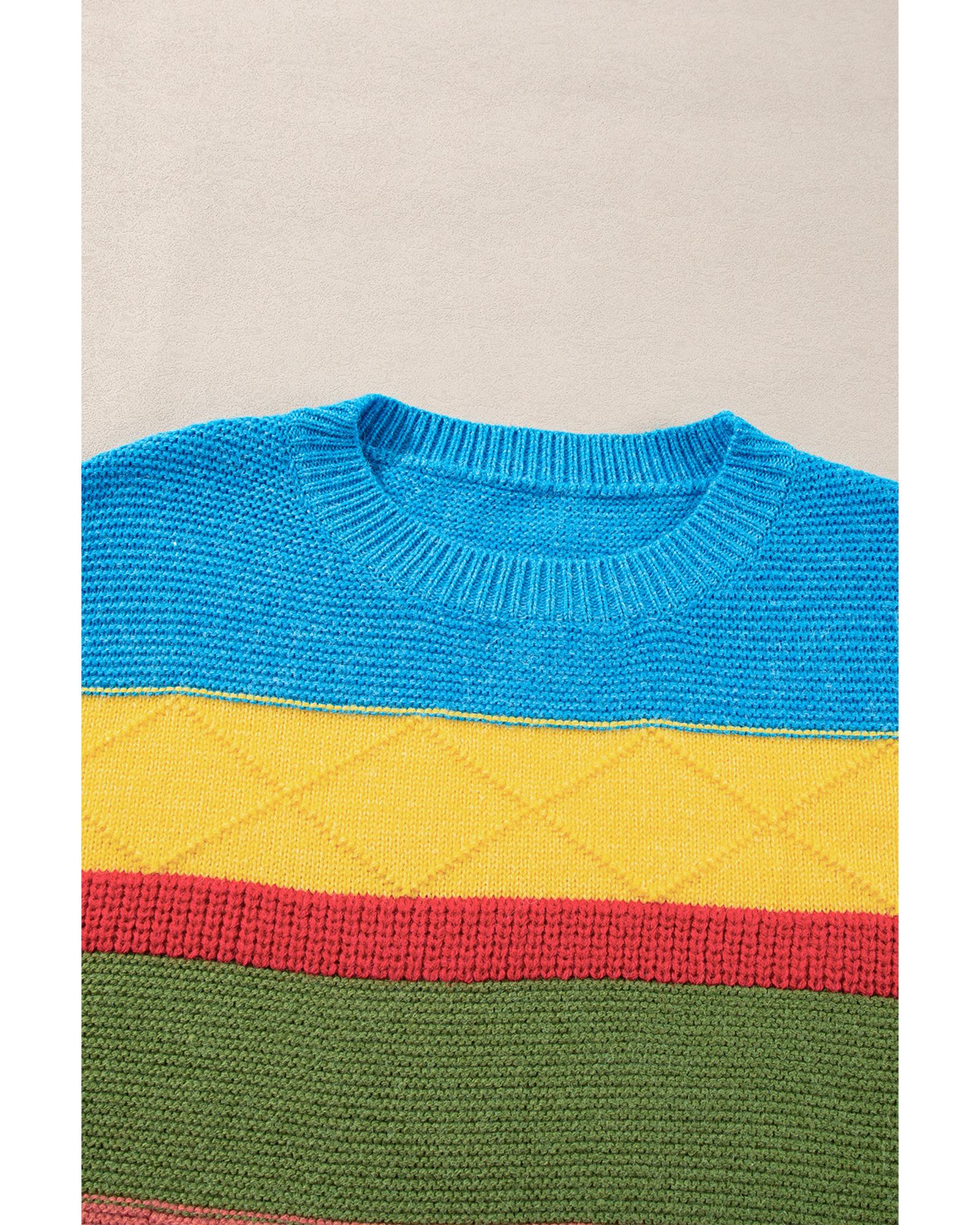 Light Blue Colorblock Mixed Textured Drop Shoulder Sweater - S