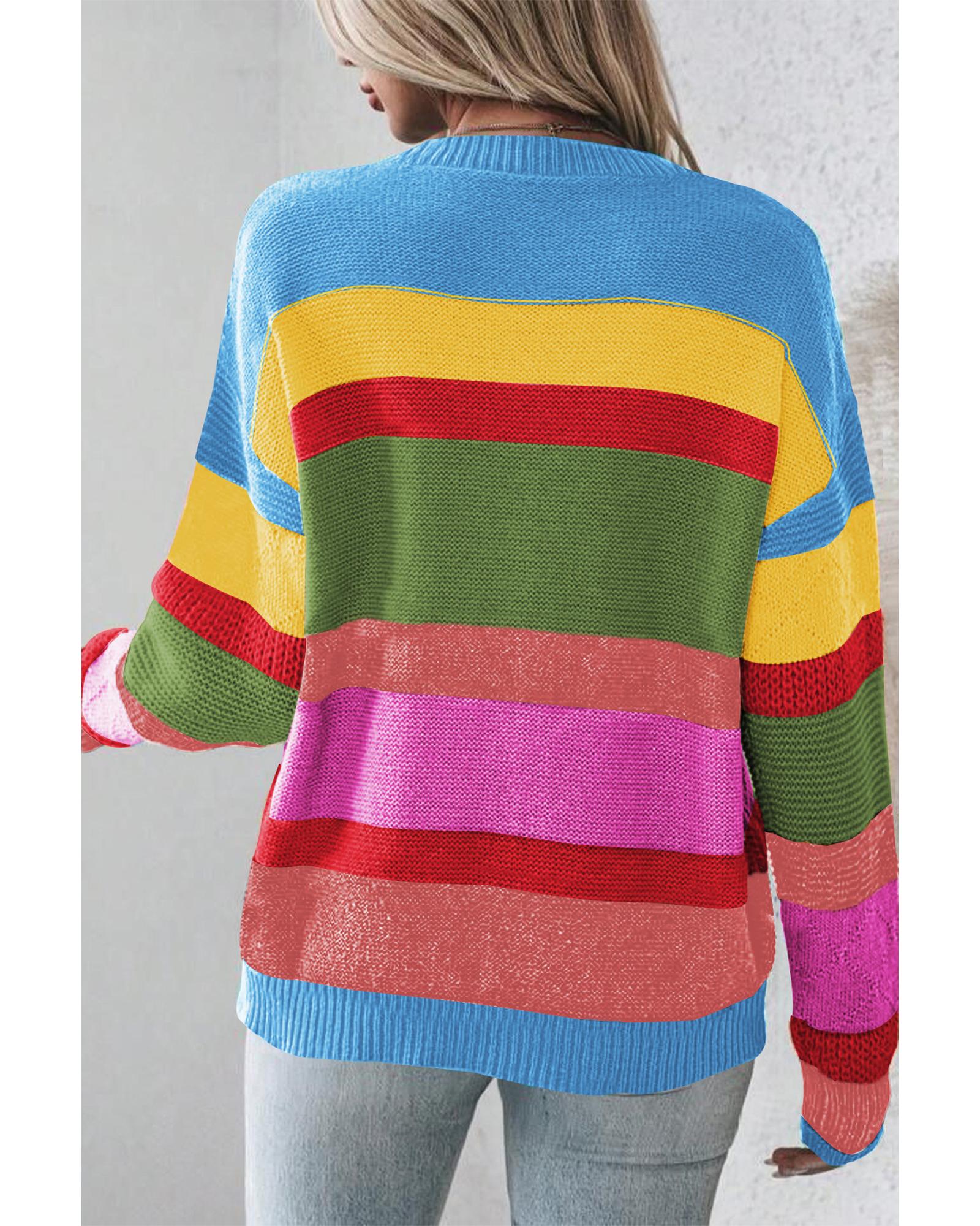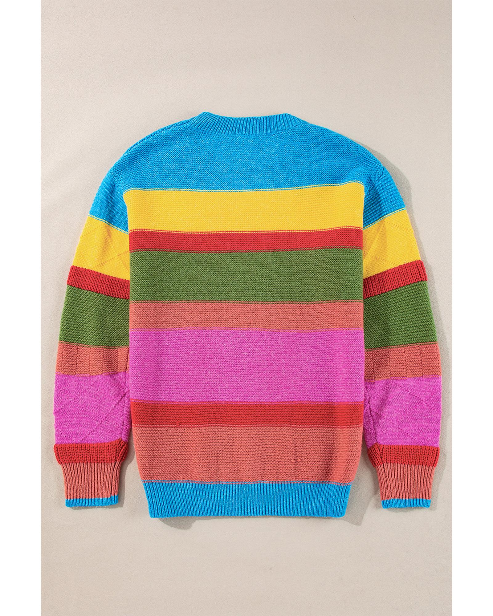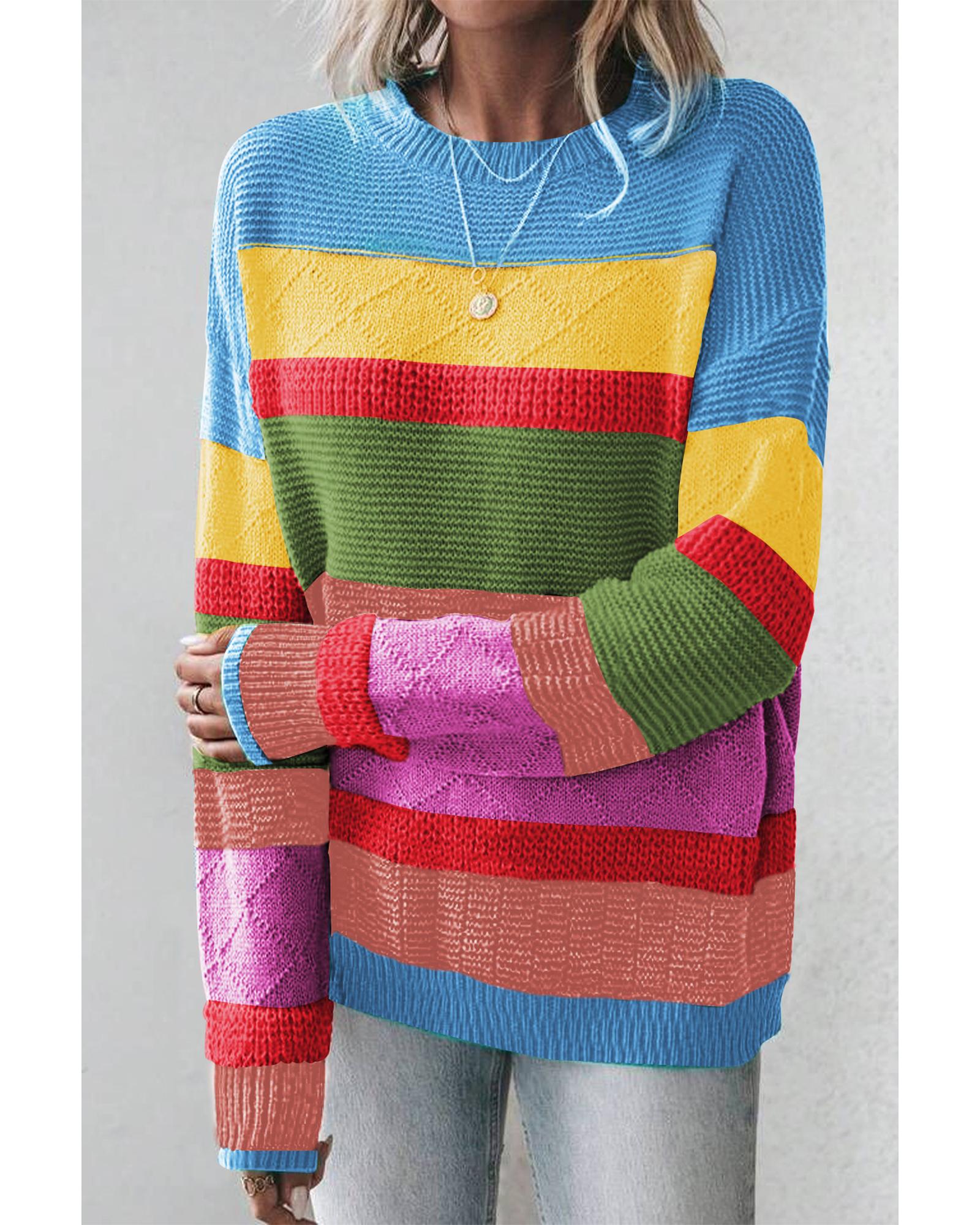 Light Blue Colorblock Mixed Textured Drop Shoulder Sweater - S