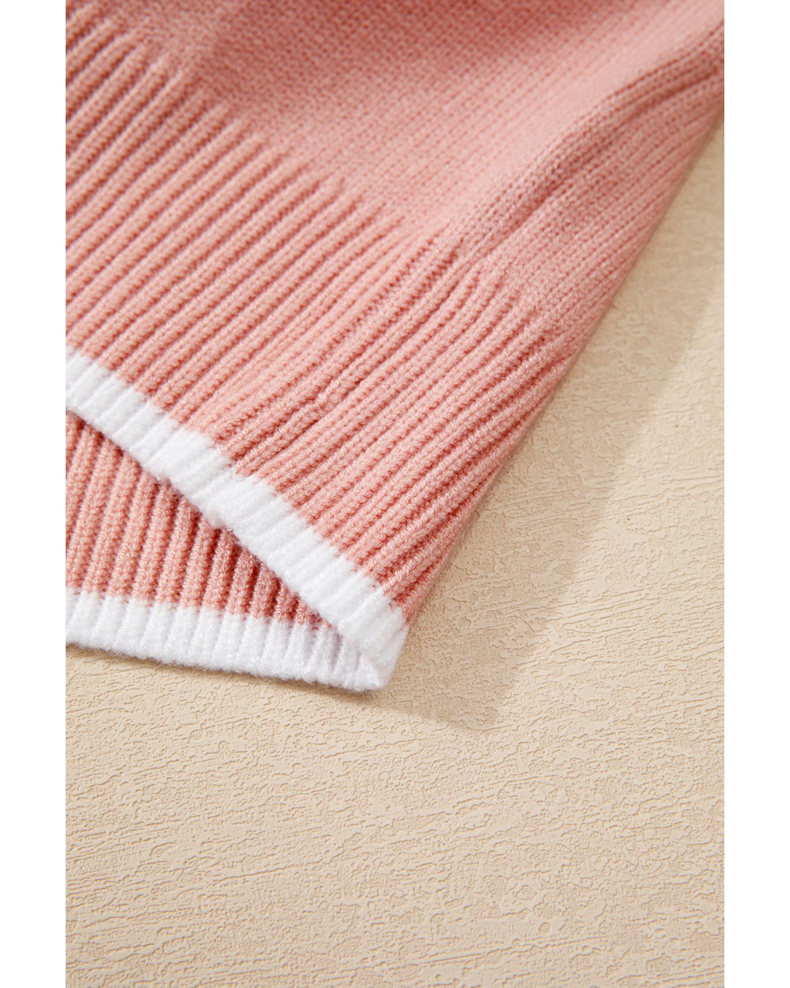 Light Pink Ruffled Bowknot Ribbed Trim Long Sleeve Sweater - S