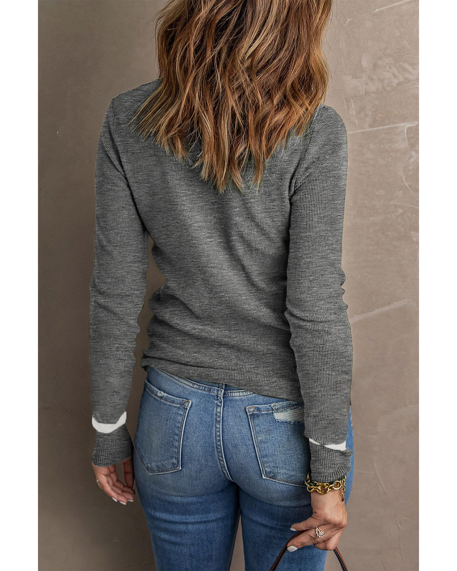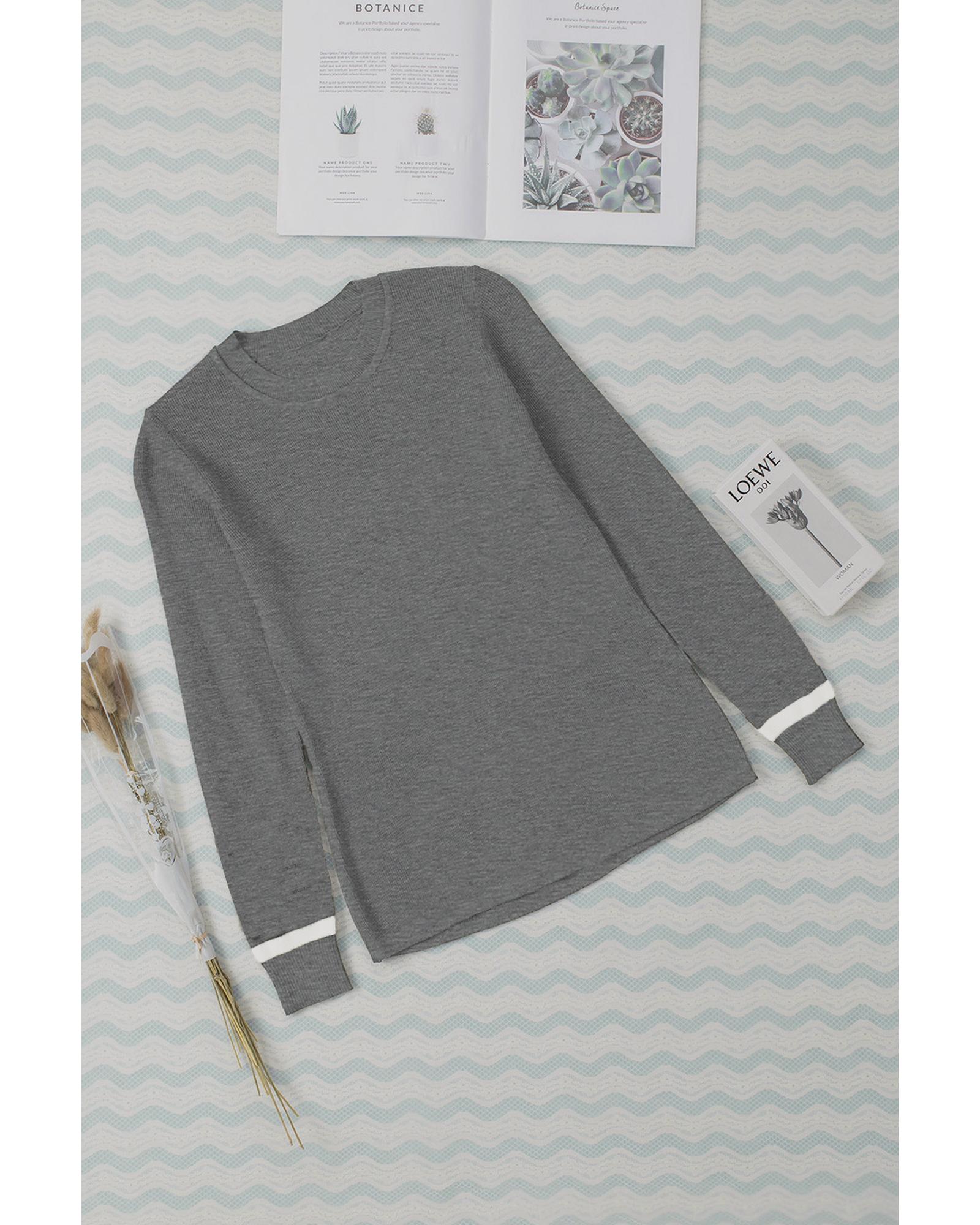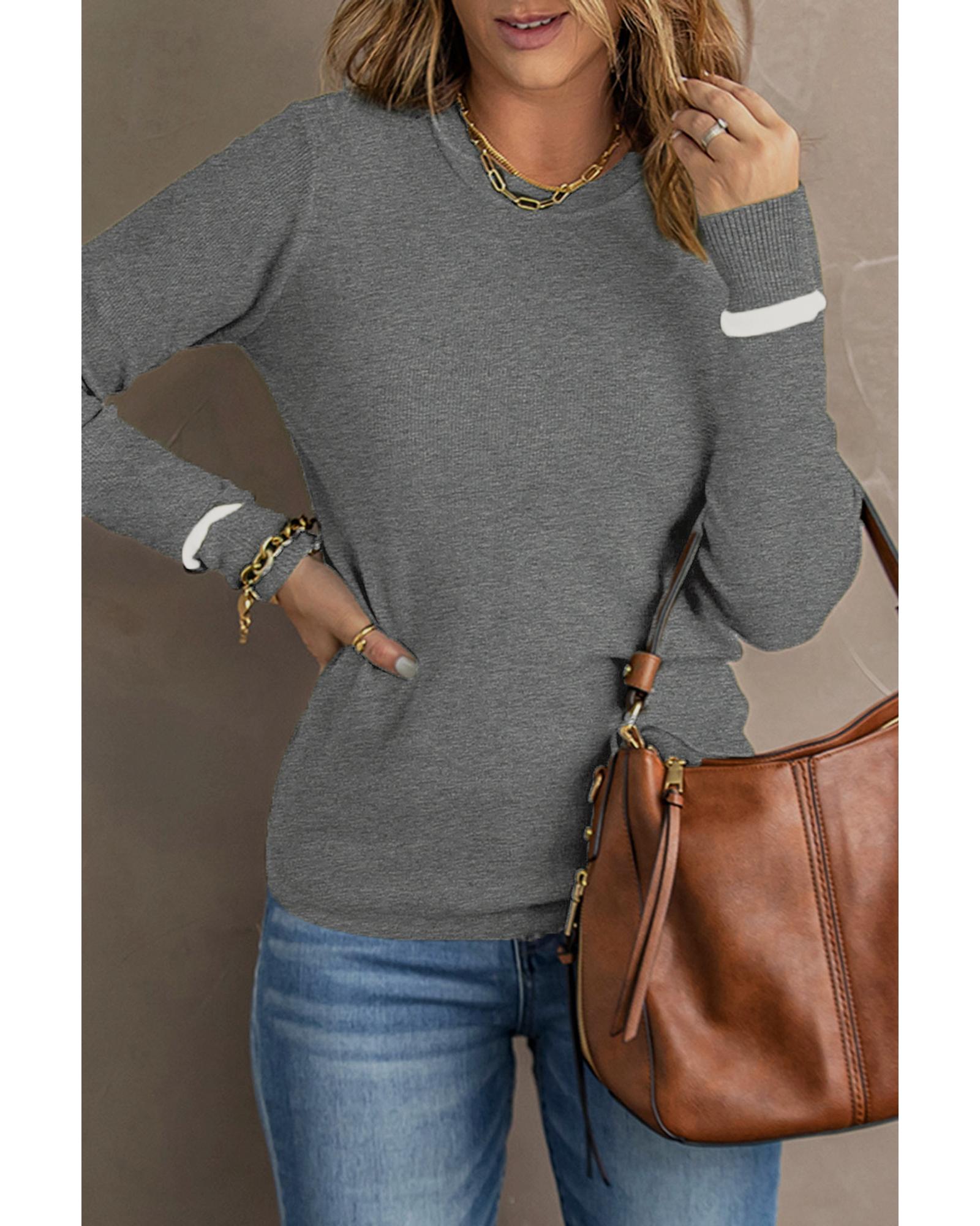 Medium Grey Ribbed Trim Crew Neck Long Sleeve Sweater - L