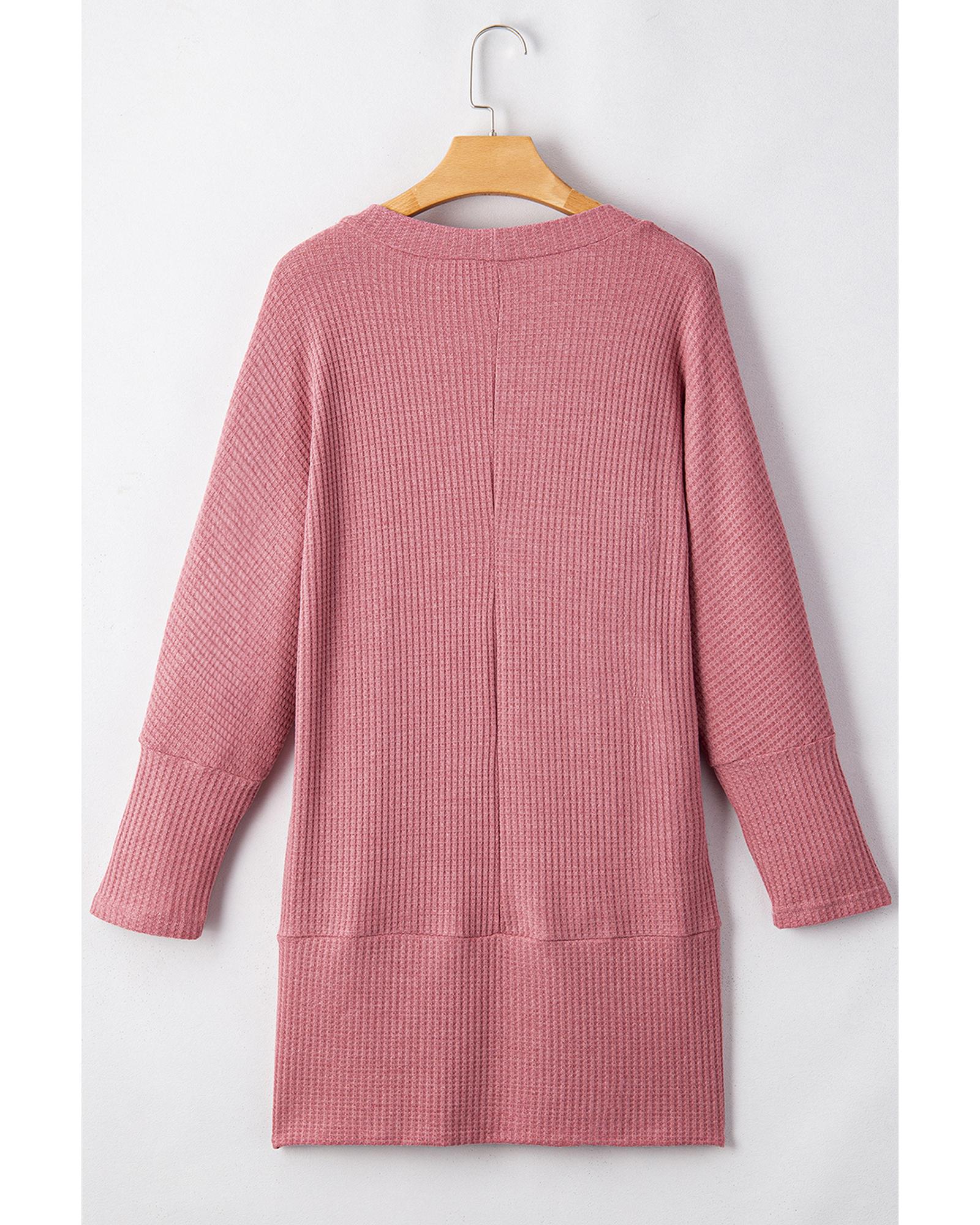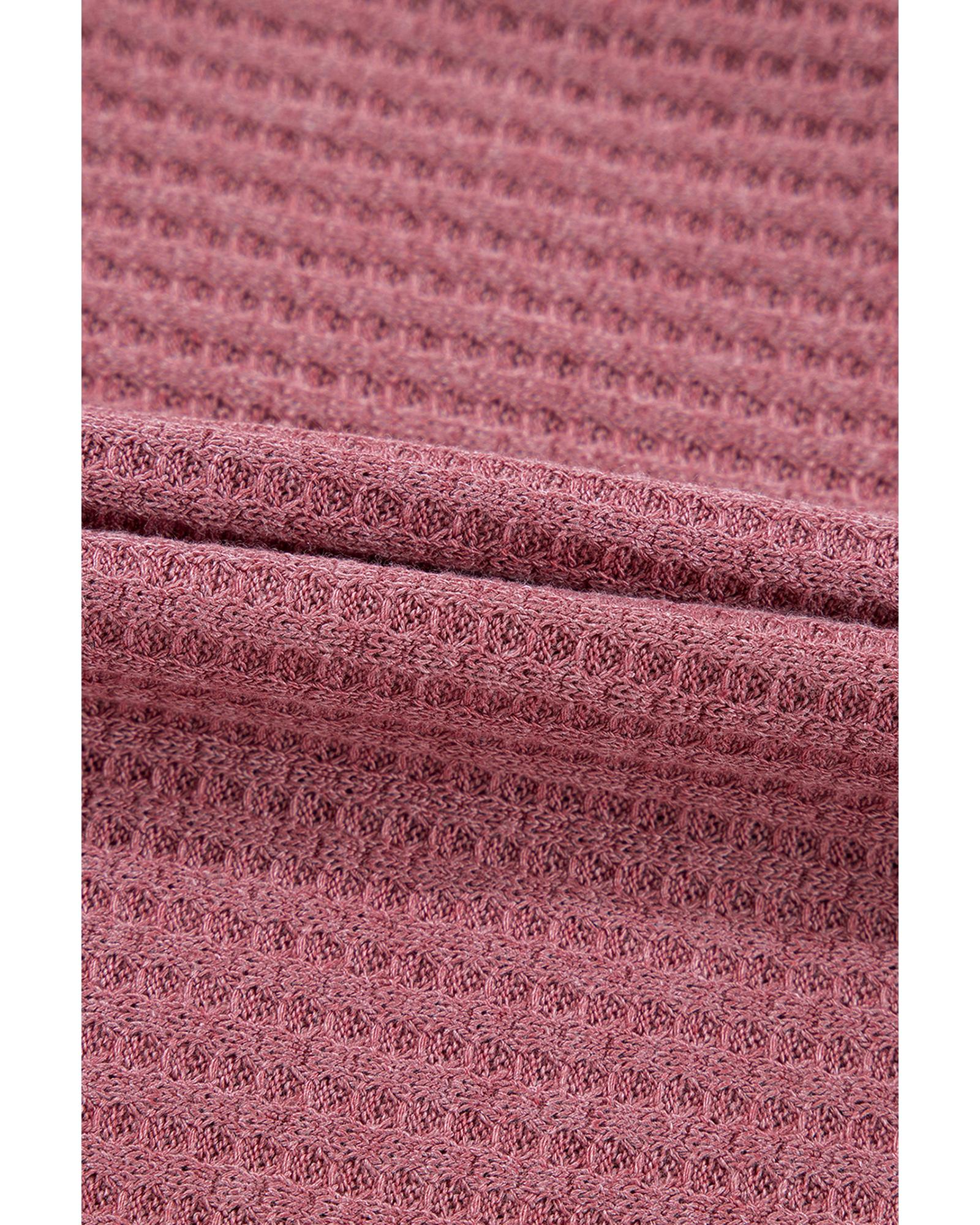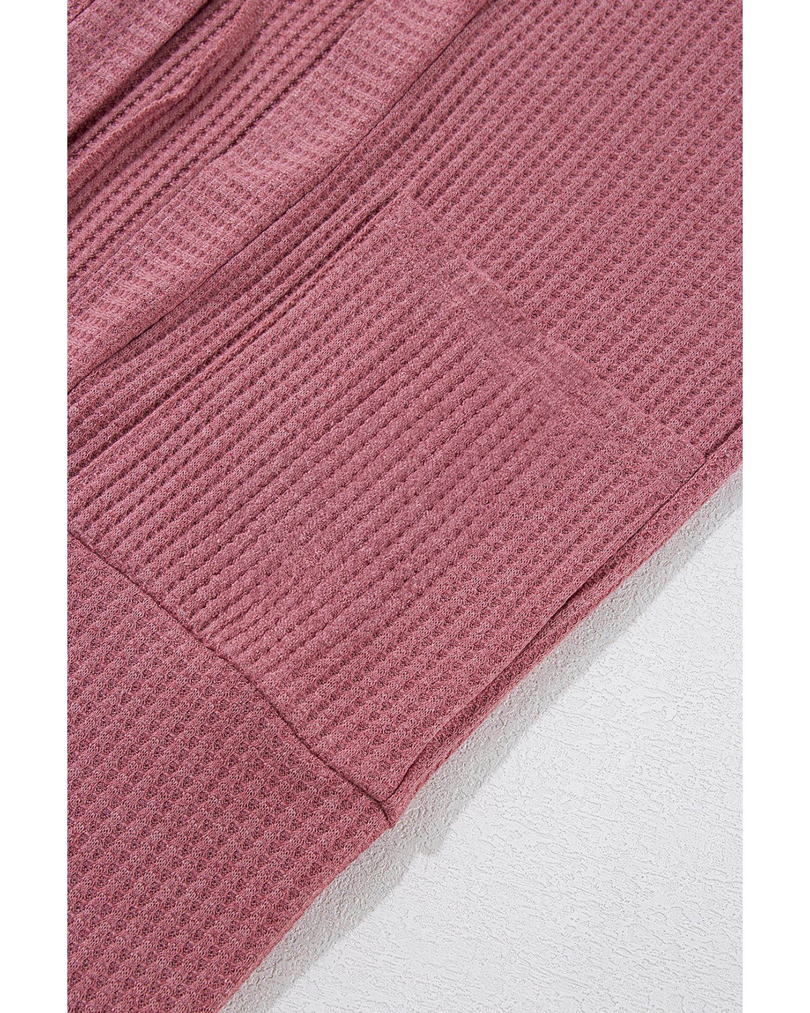 Mineral Red Solid Color Waffle Knit Cardigan with Pocket - M
