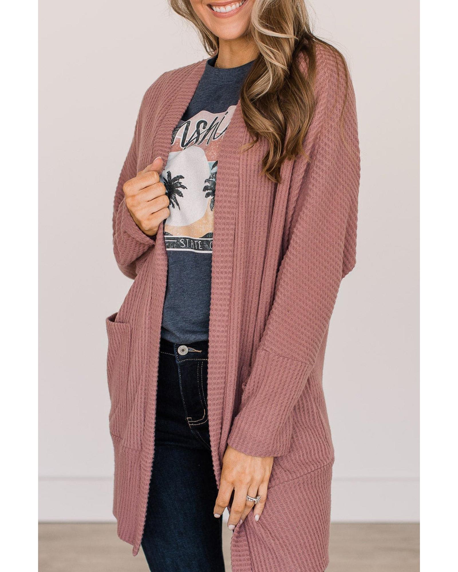 Mineral Red Solid Color Waffle Knit Cardigan with Pocket - XL