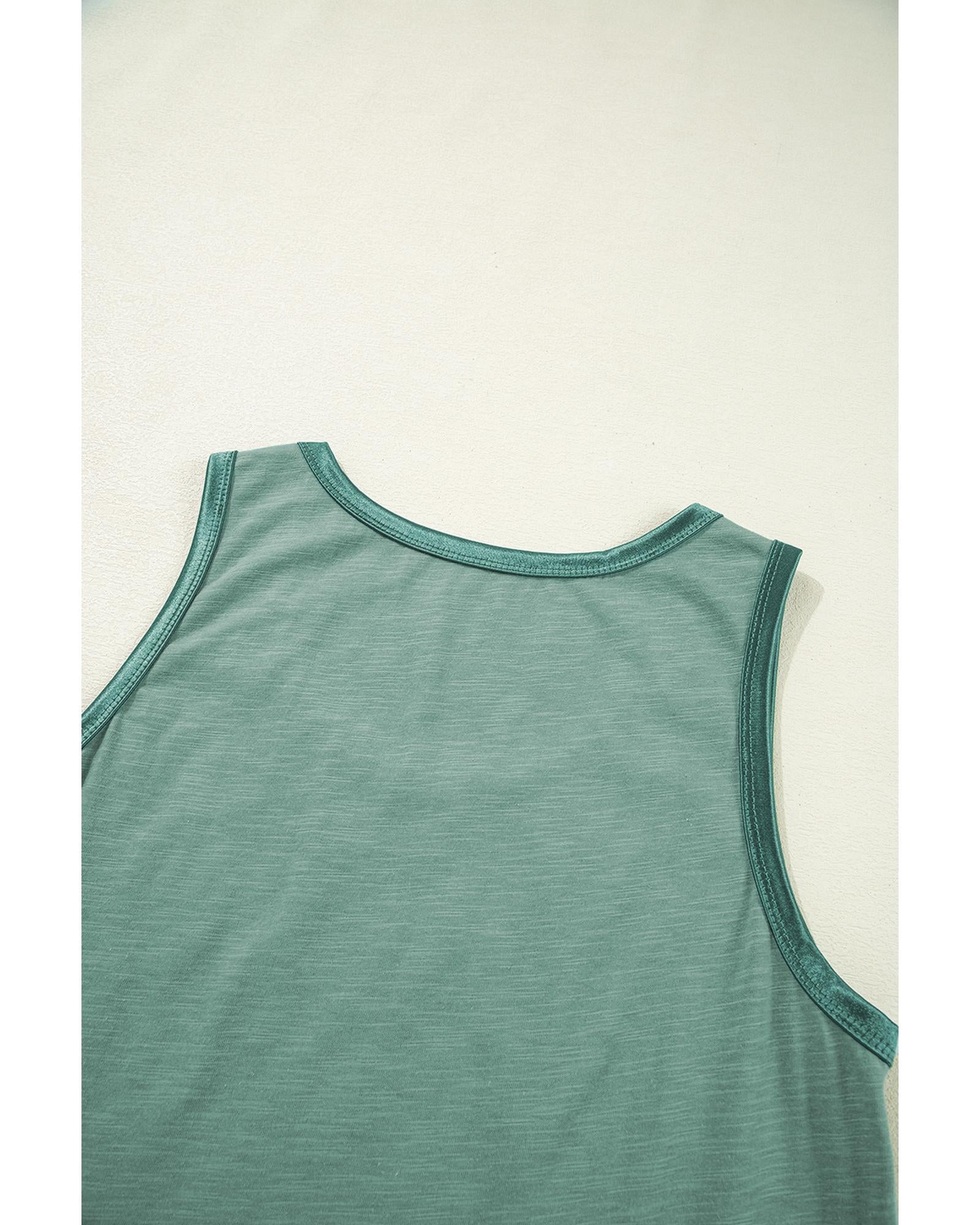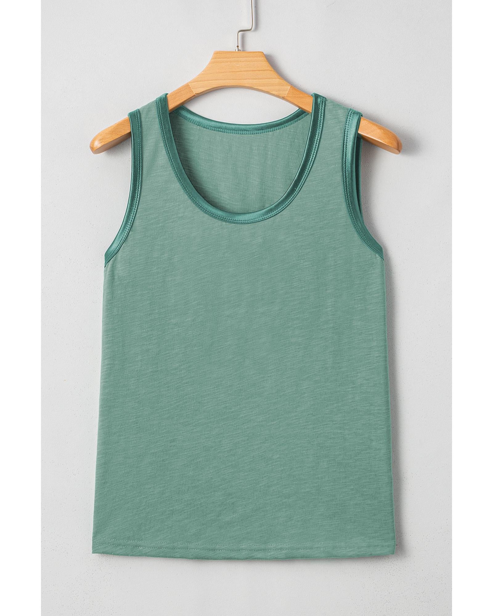 Mist Green Metallic Sheen Edge Scoop Neck Tank Top - L