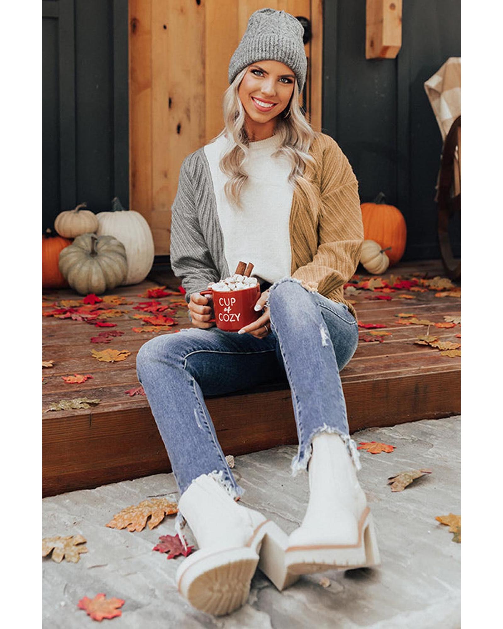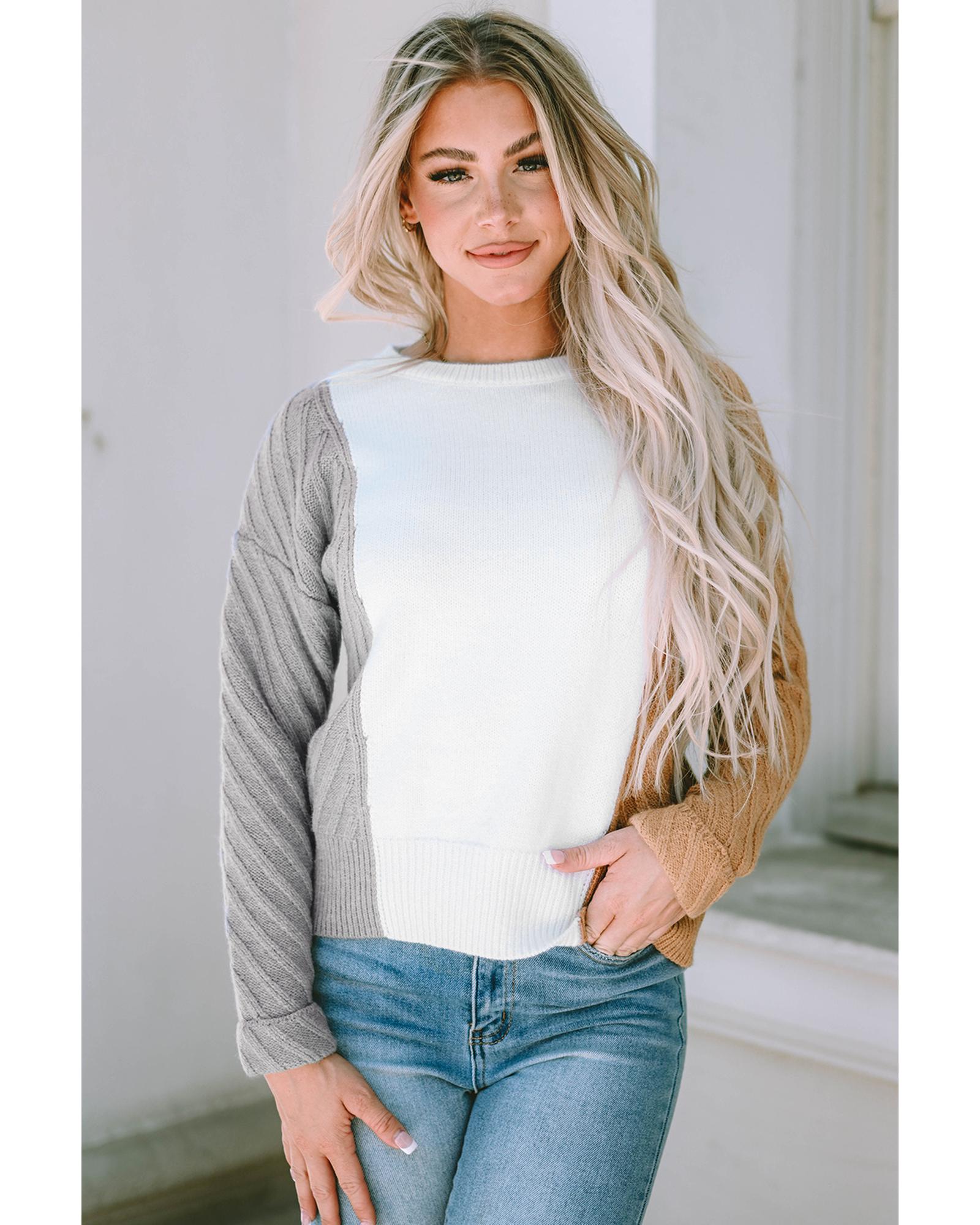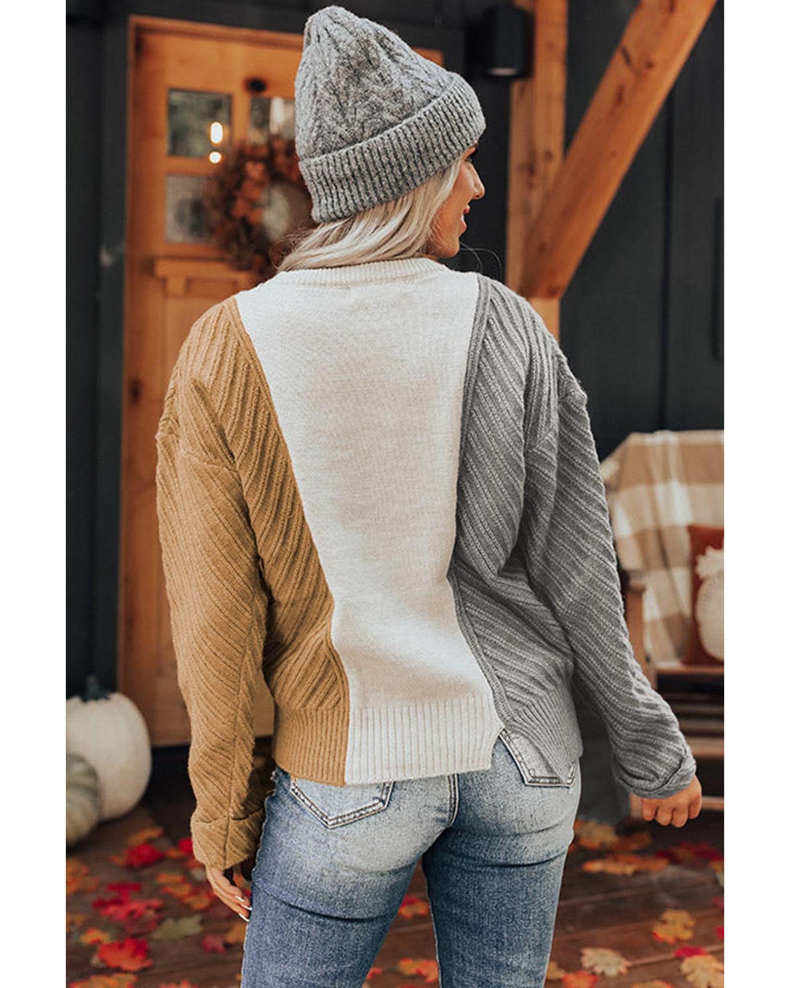 Multicolor Colorblock Textured Drop Shoulder Sweater - 2XL