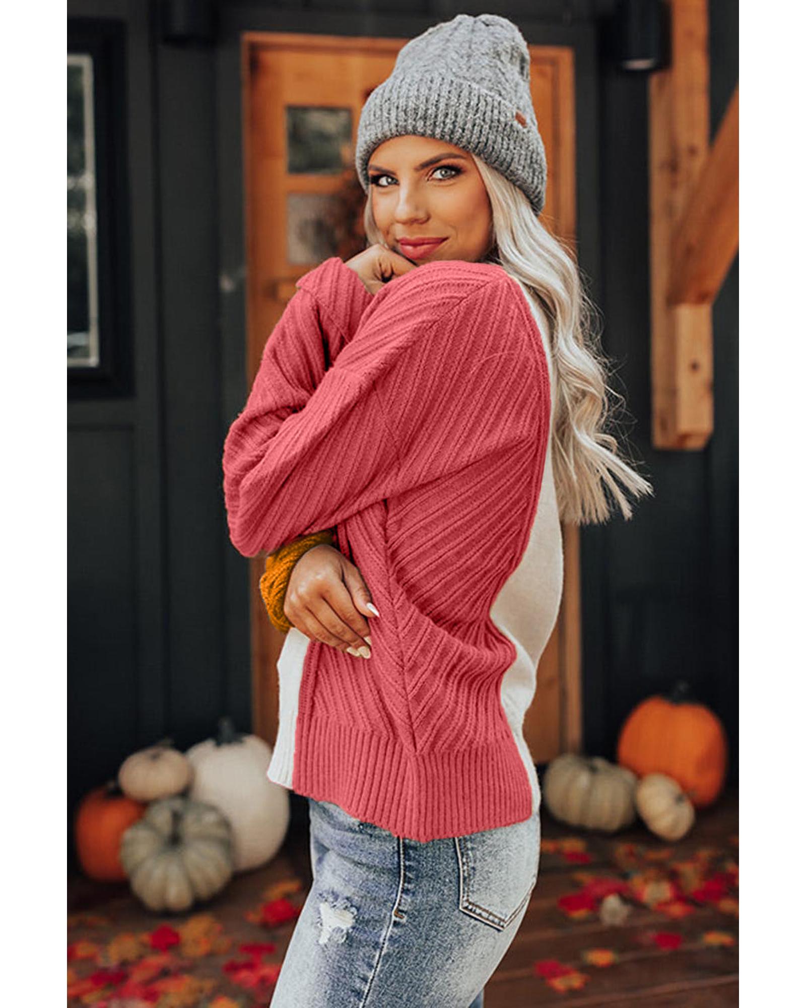 Multicolor Colorblock Textured Drop Shoulder Sweater - L