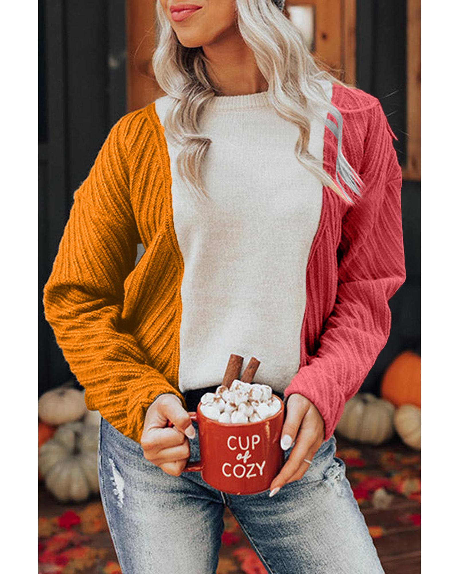 Multicolor Colorblock Textured Drop Shoulder Sweater - M