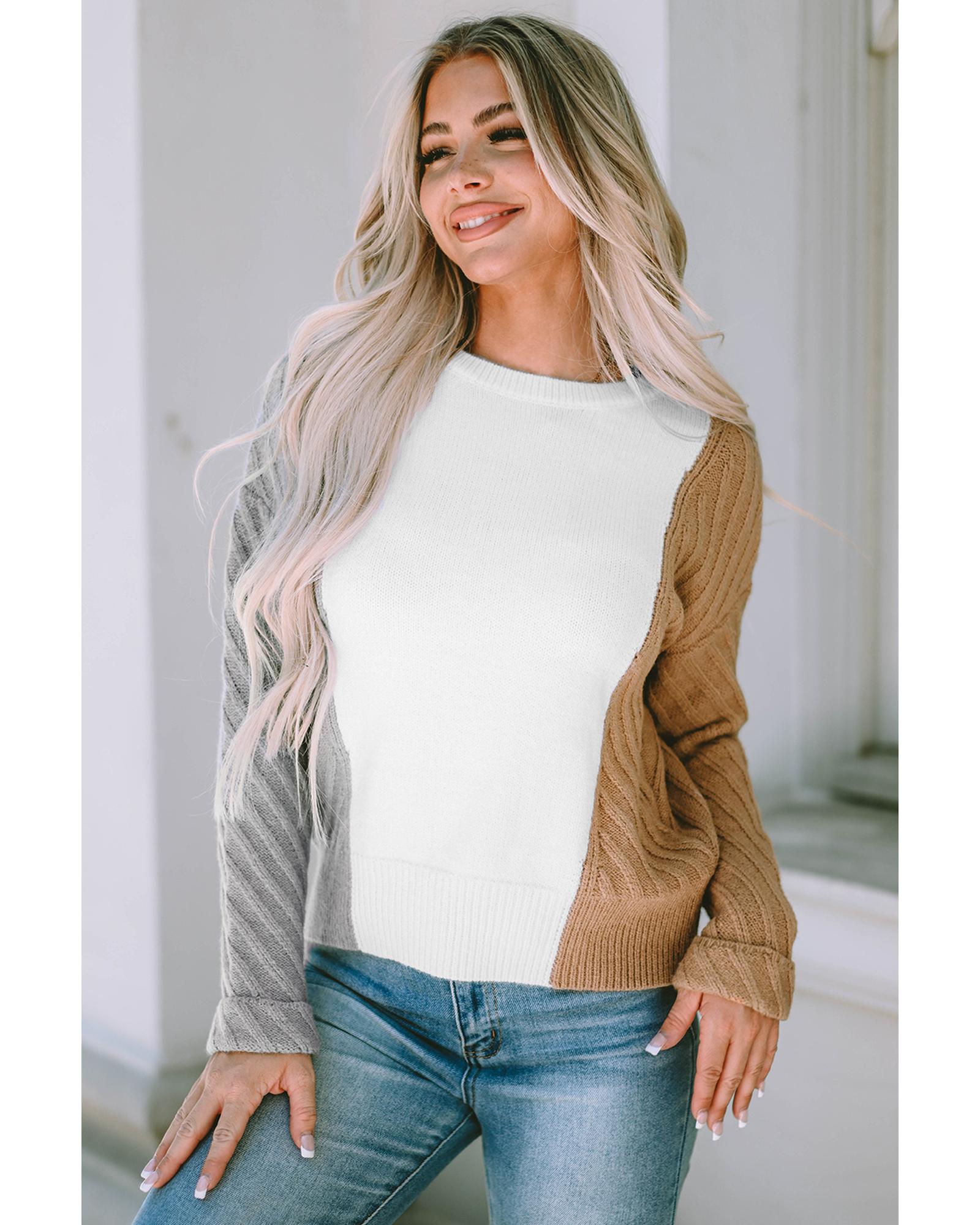 Multicolor Colorblock Textured Drop Shoulder Sweater - M