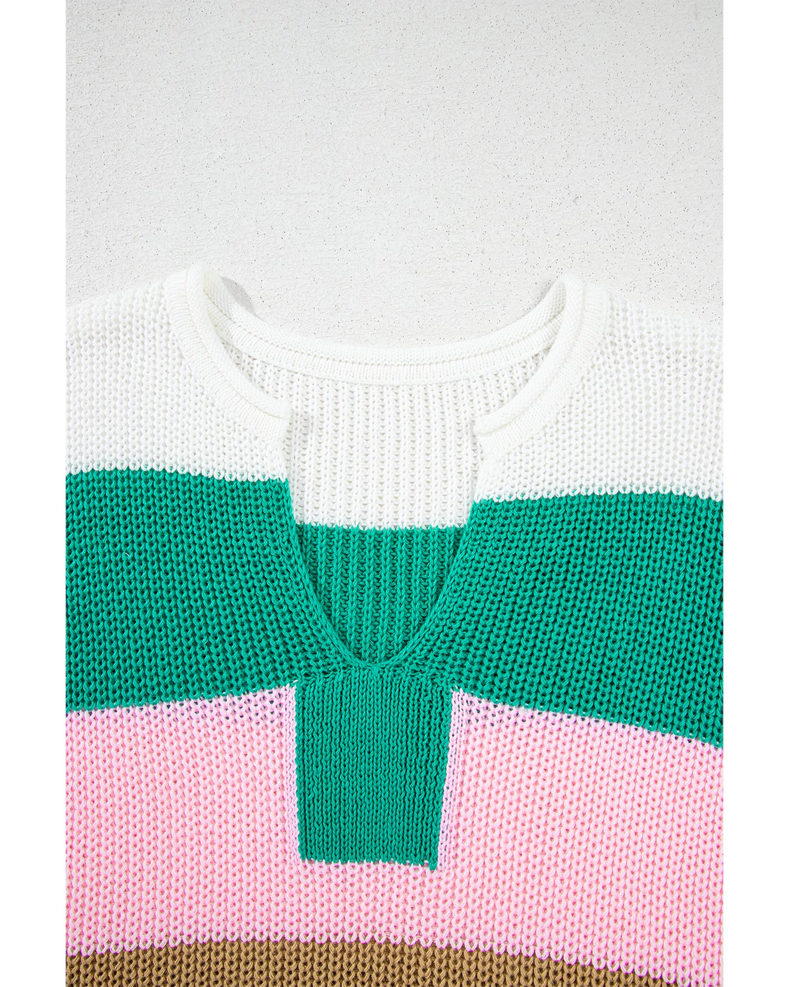 Multicolour Color Block Notch V Neck Sweater T Shirt - S