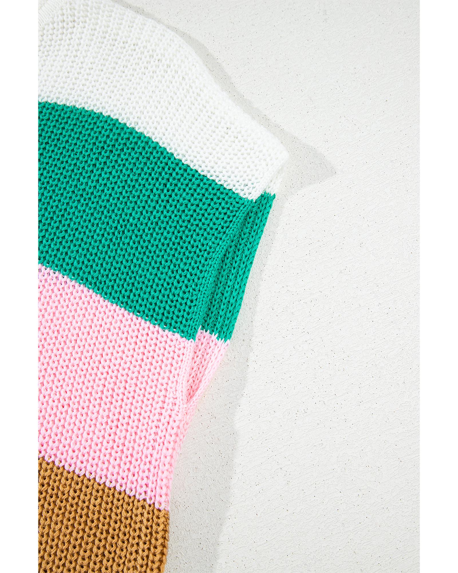 Multicolour Color Block Notch V Neck Sweater T Shirt - XL