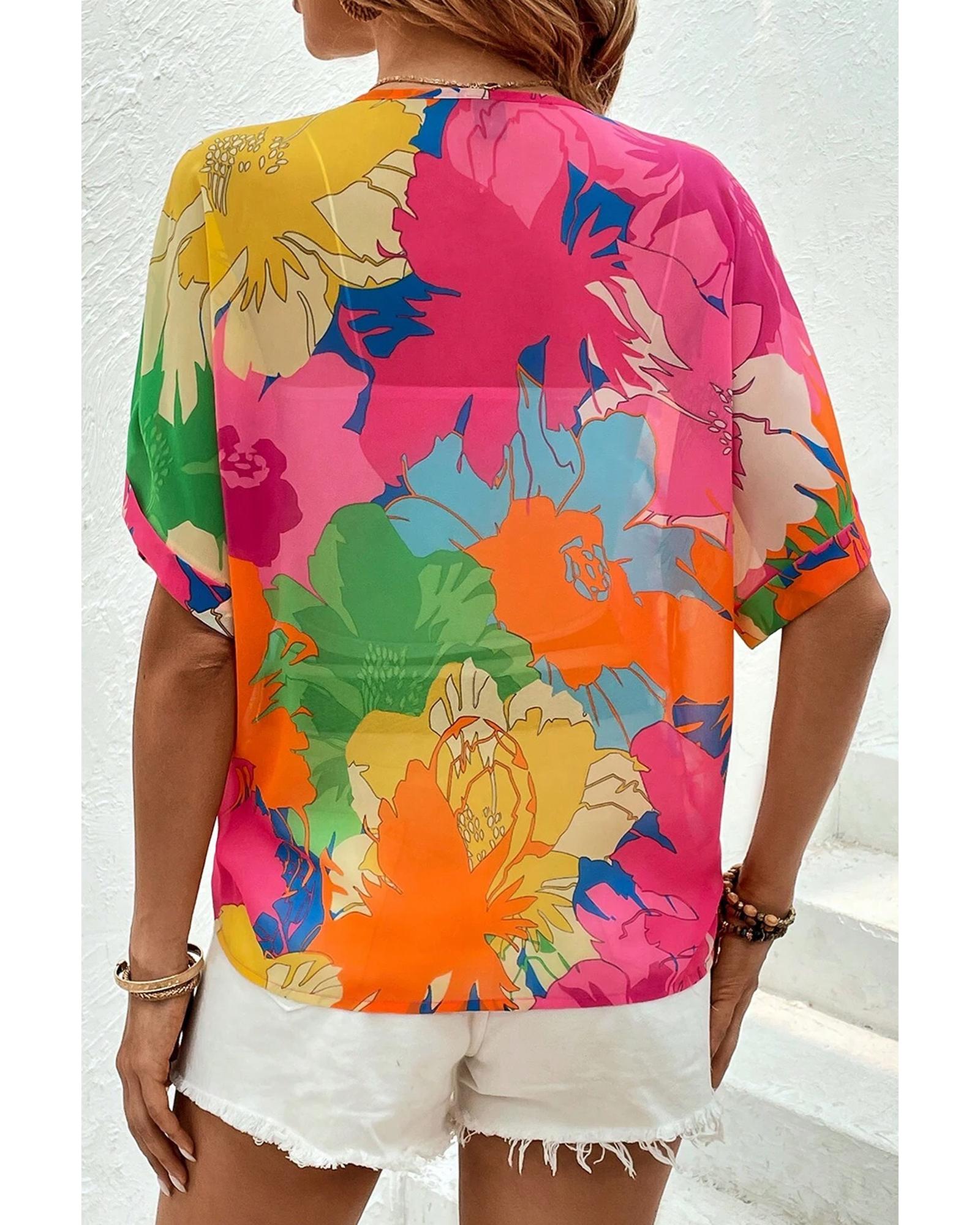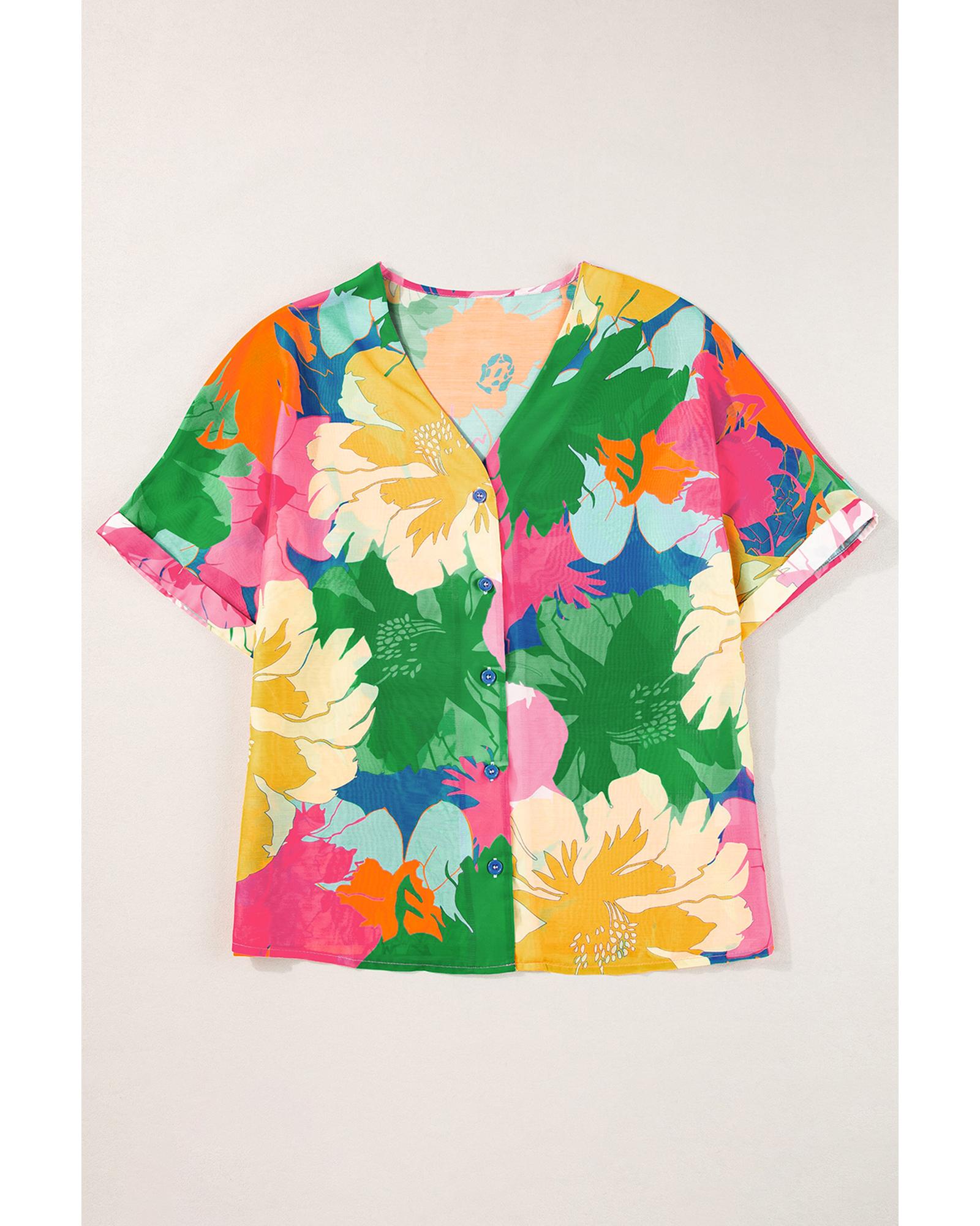 Multicolour Floral Print Folded Short Sleeve Shirt - XL