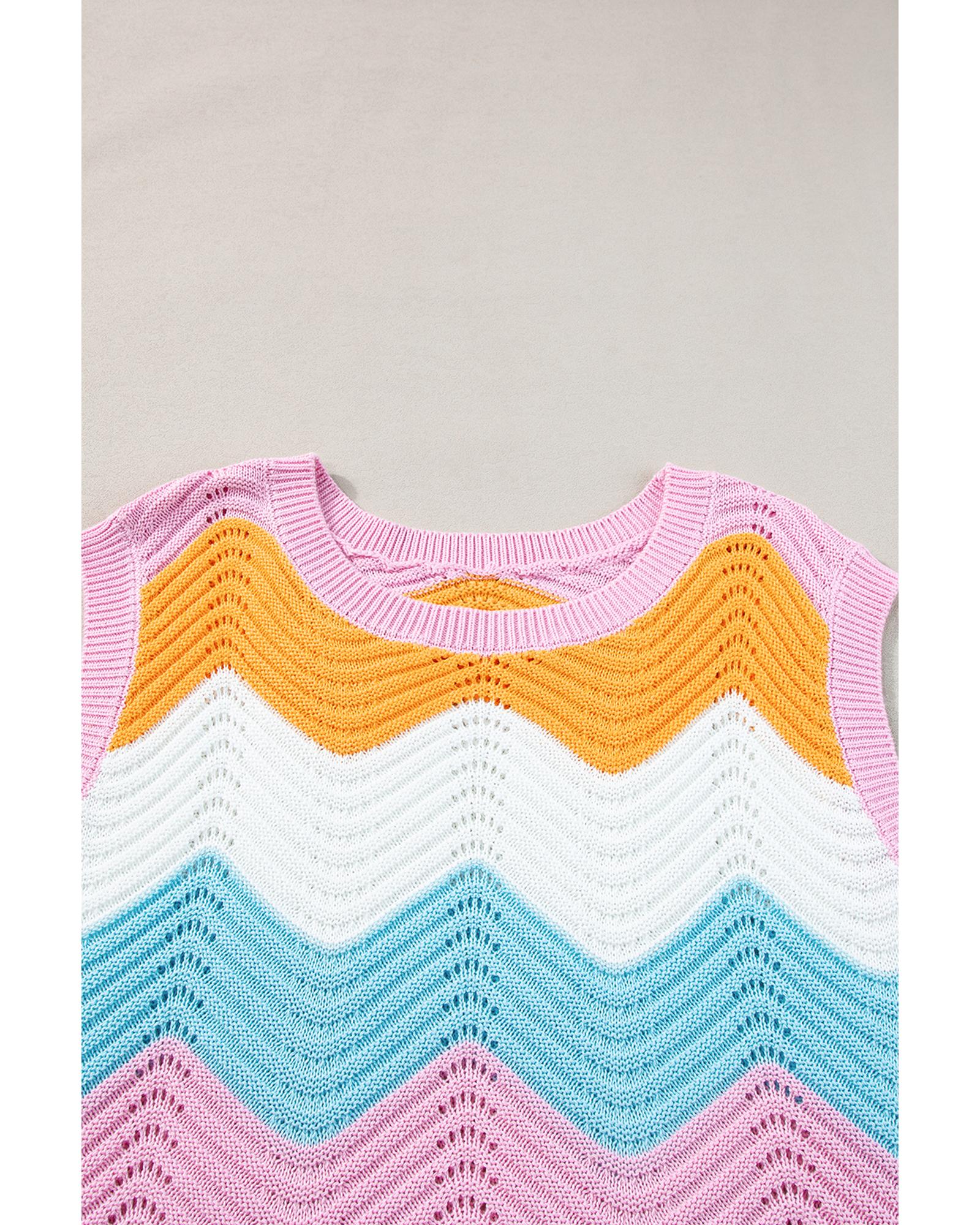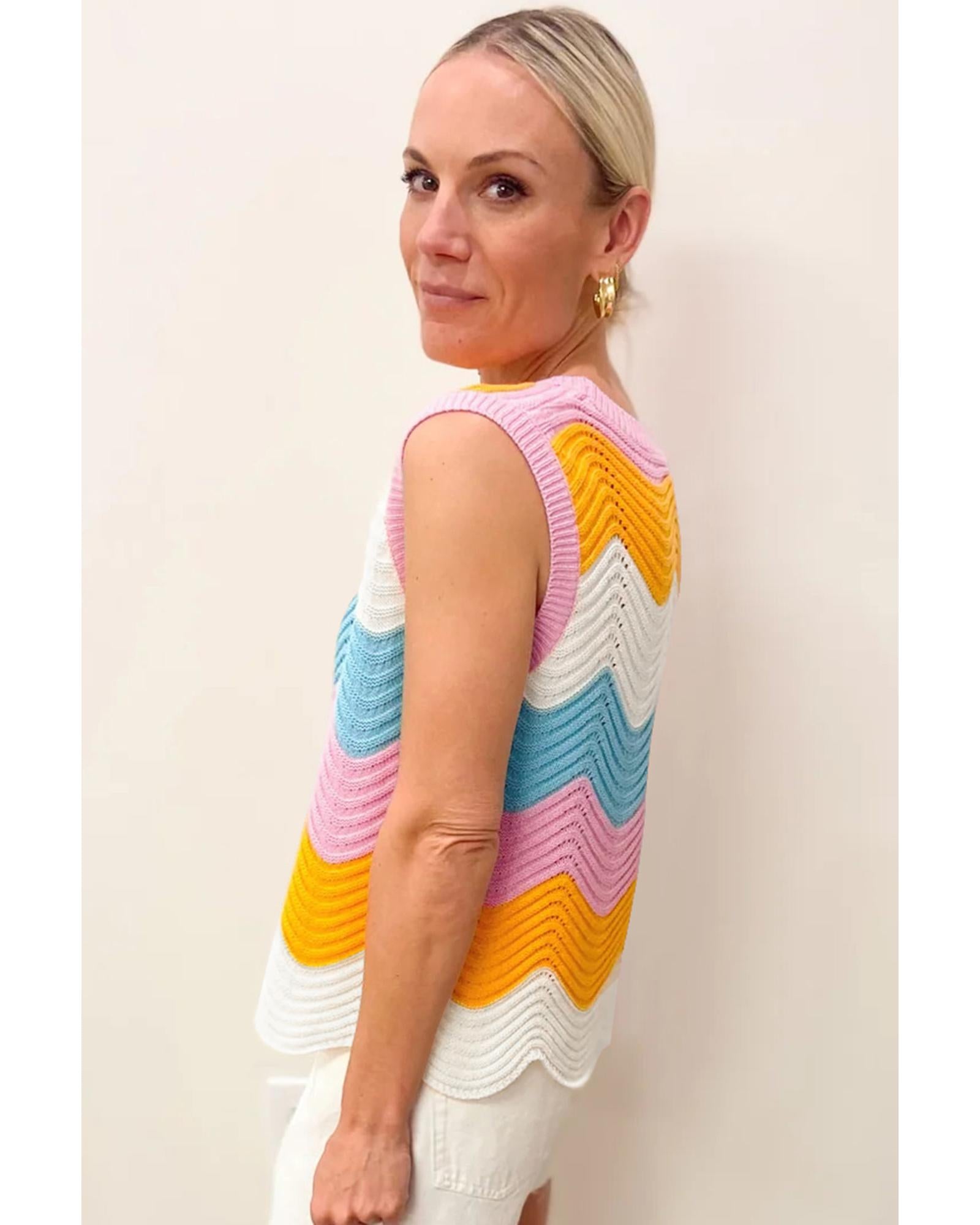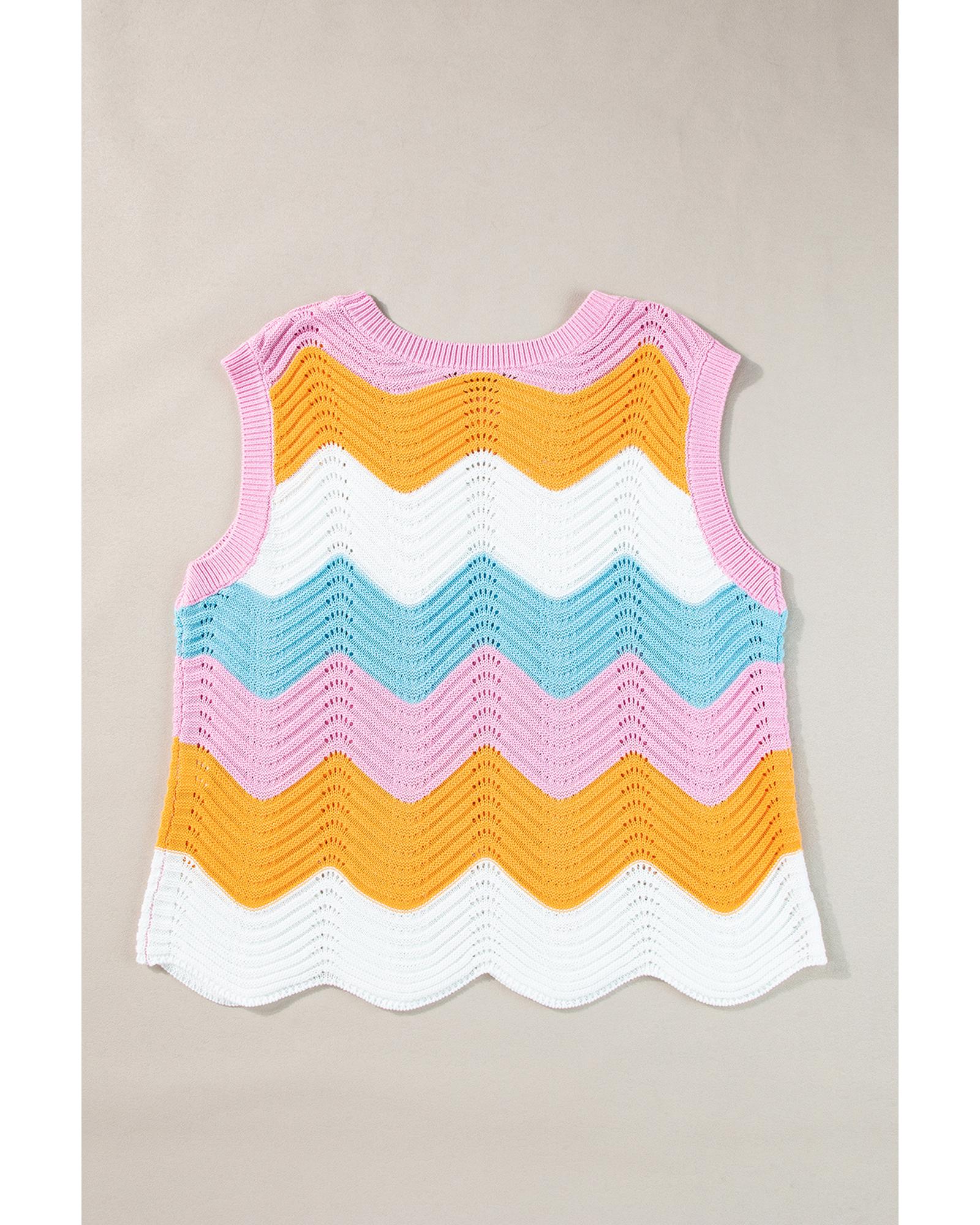 Multicolour Striped Colorblock Scalloped Hem Knitted Vest - S