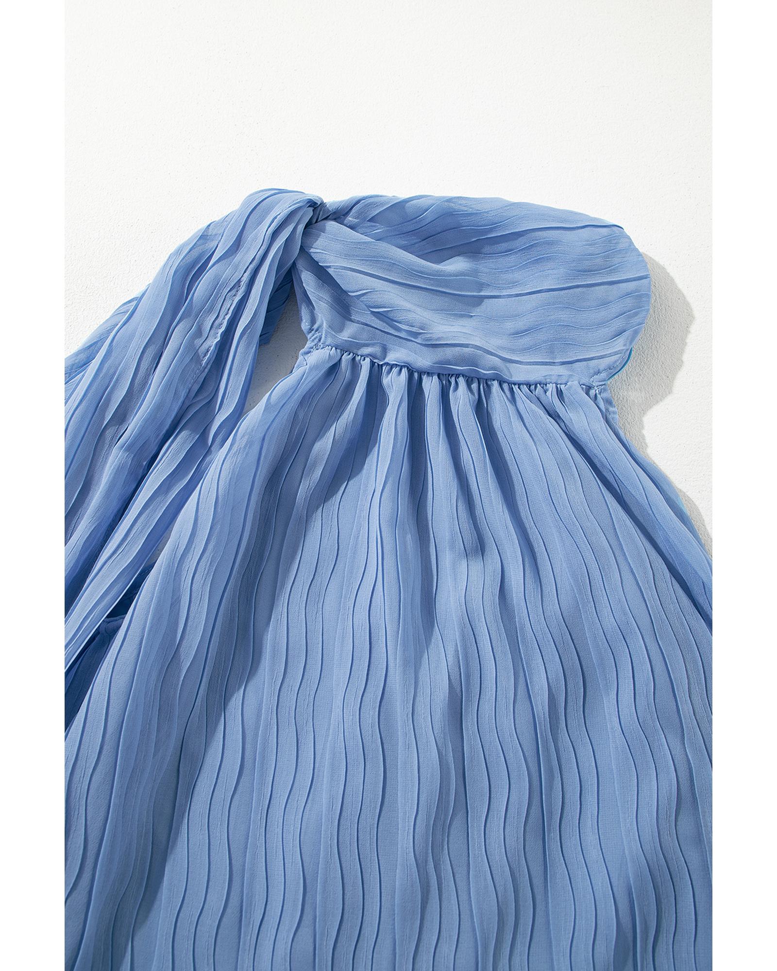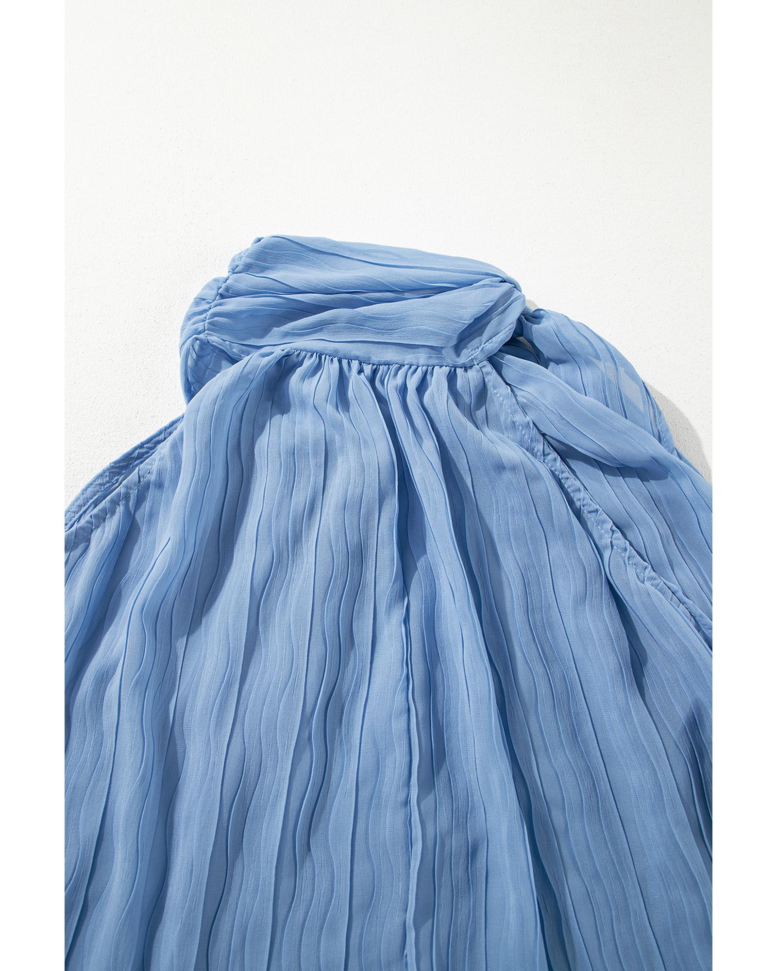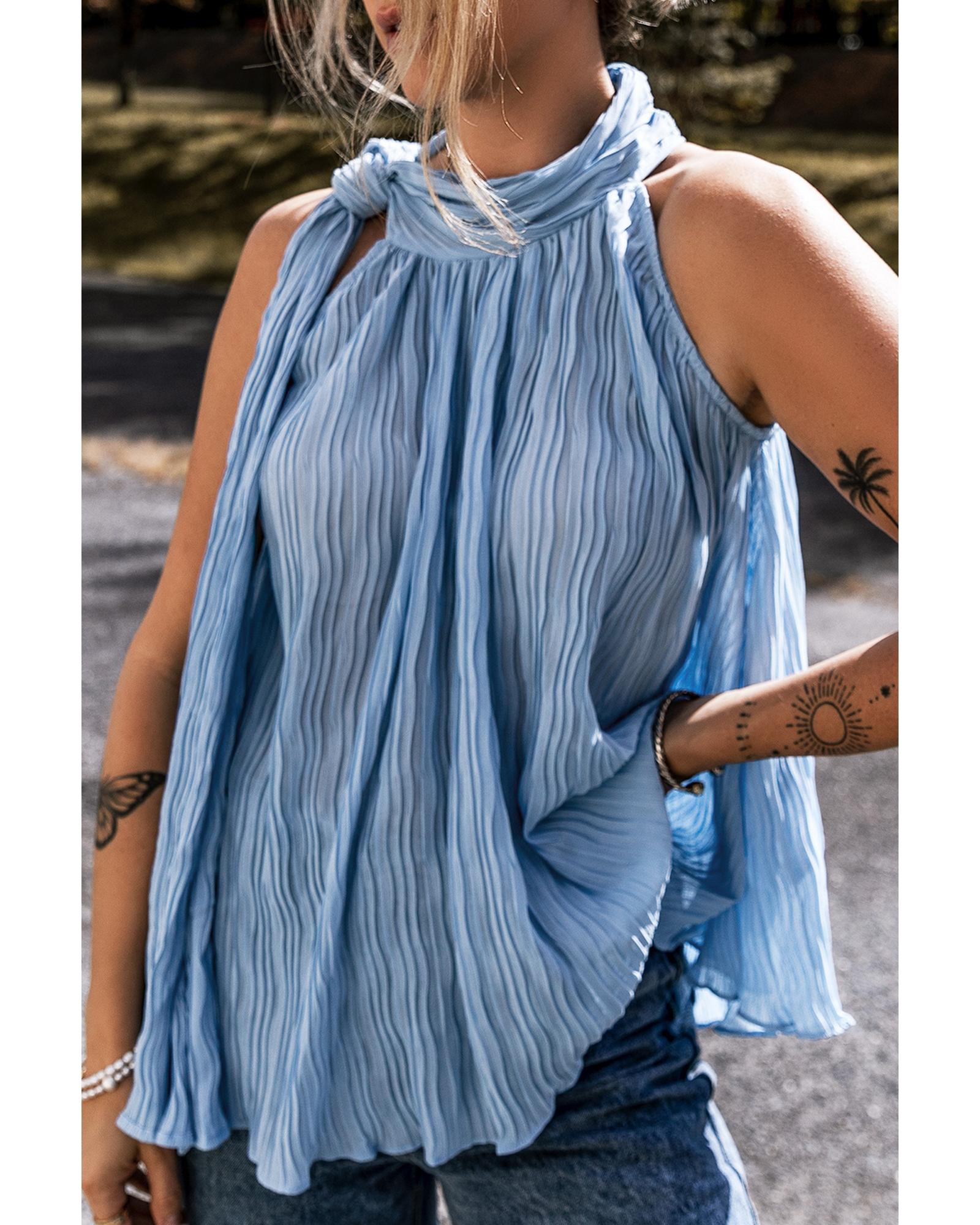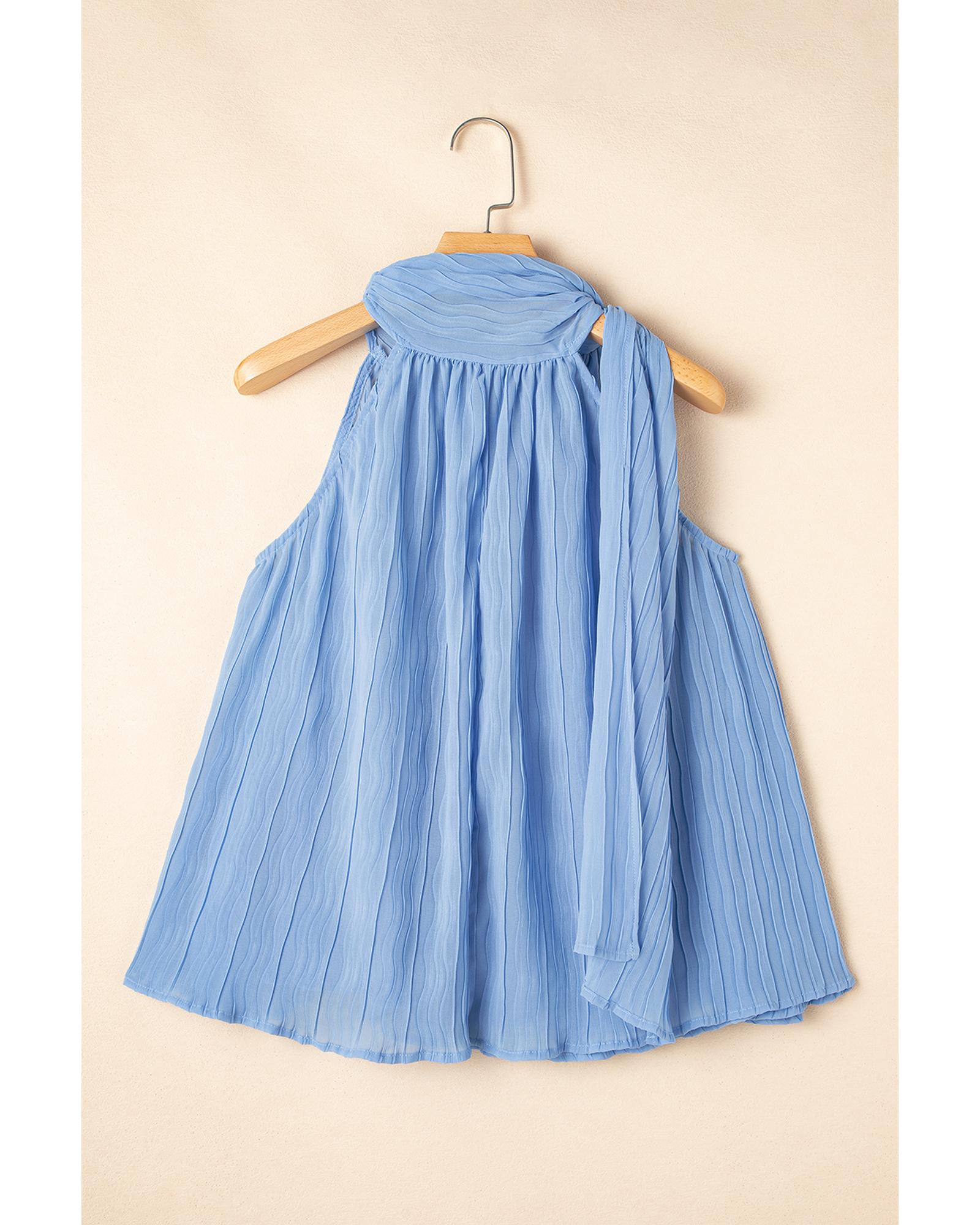 Myosotis Textured Pleated Tied Mock Neck Flowy Tank Top - L