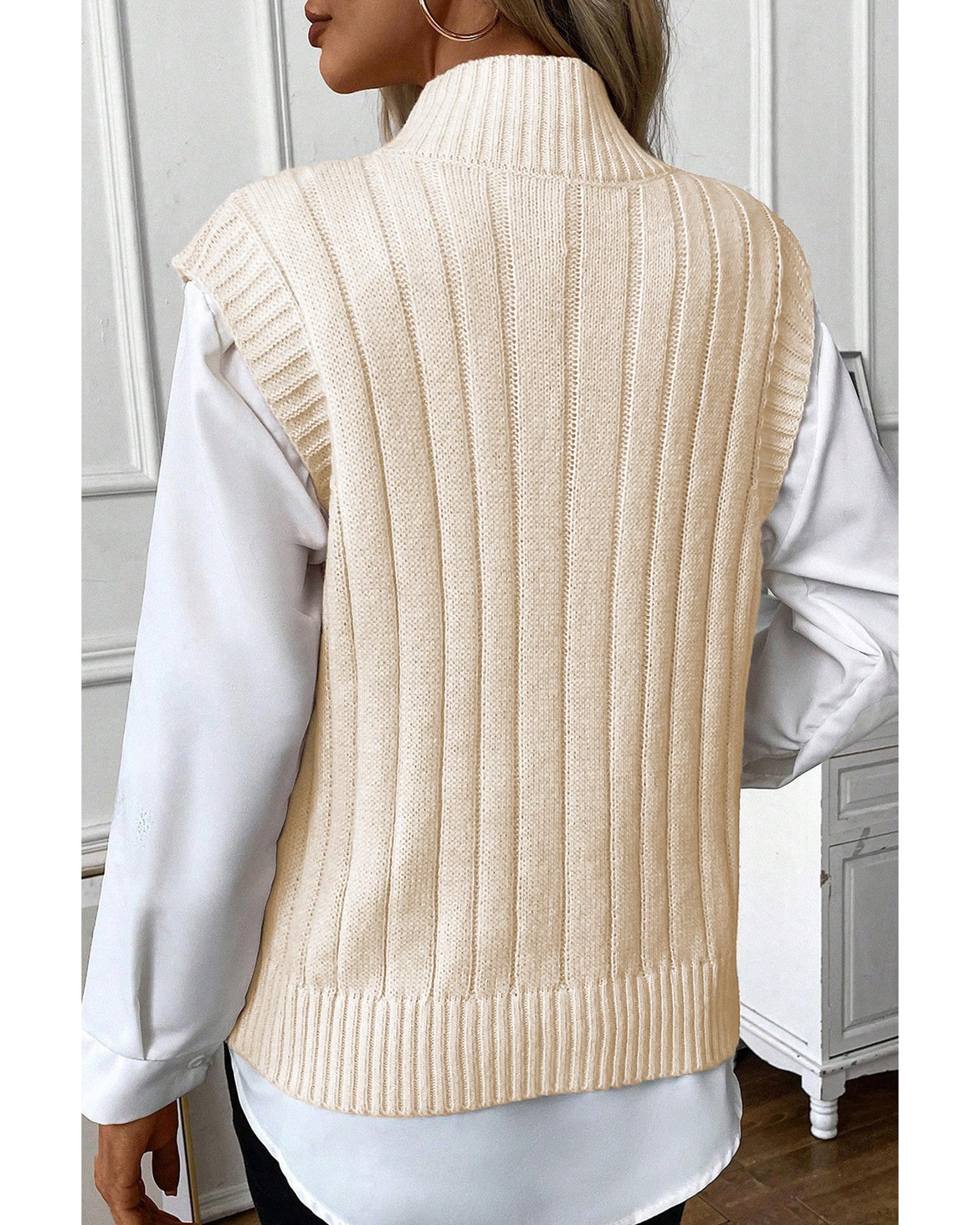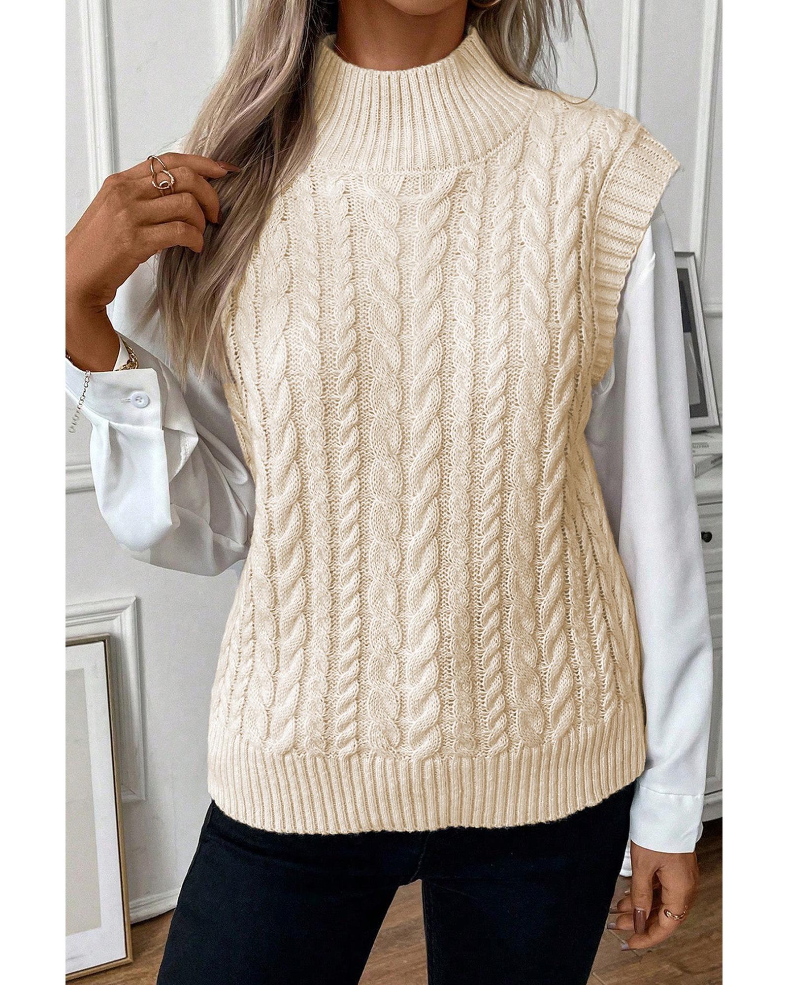 Oatmeal Cable Knit High Neck Sweater Vest - L