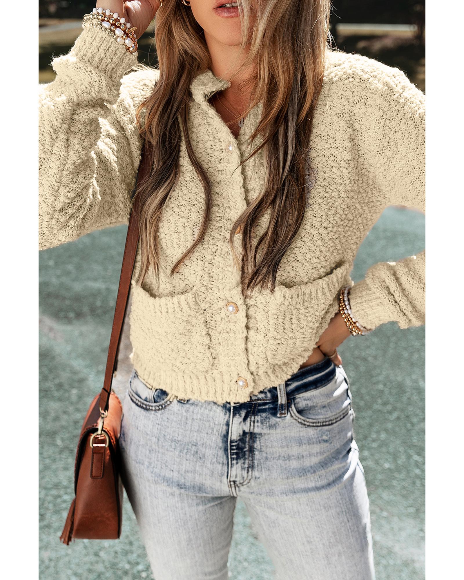 Oatmeal Pearl Buttons Popcorn Textured Sweater Cardigan - XL