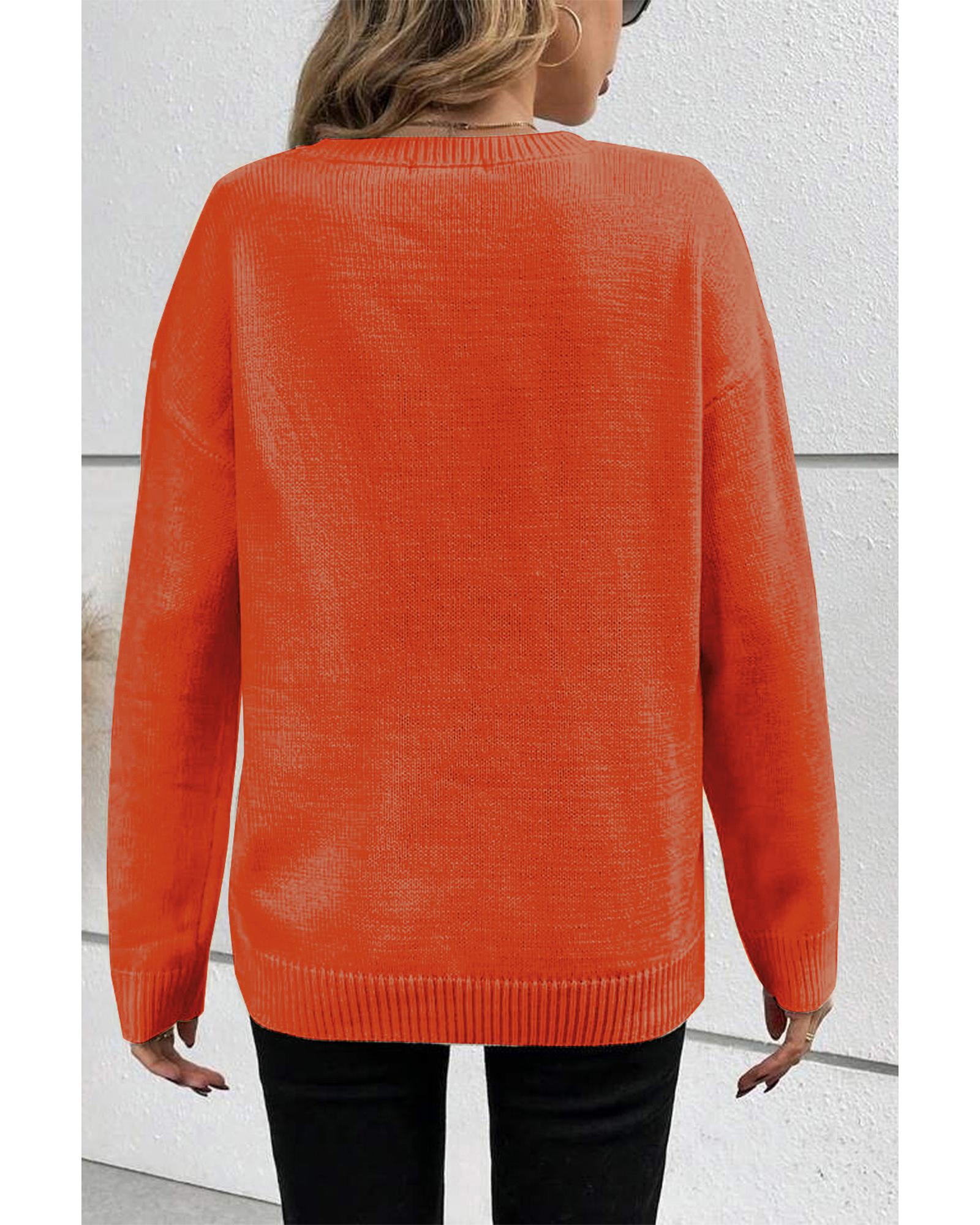 Orange Boo Knitted Pattern Ribbed Edge Drop Shoulder Sweater - L