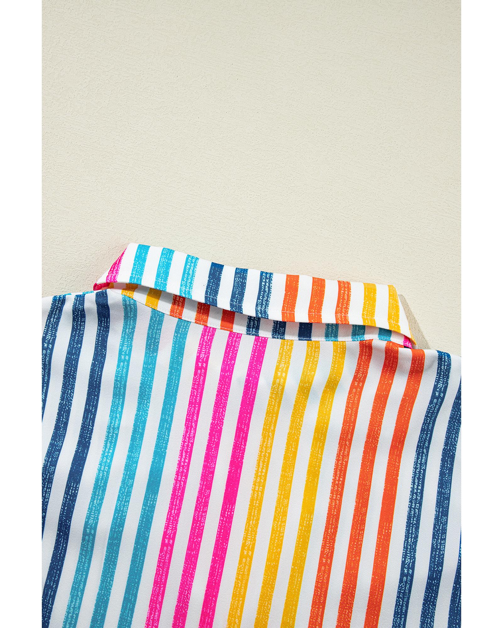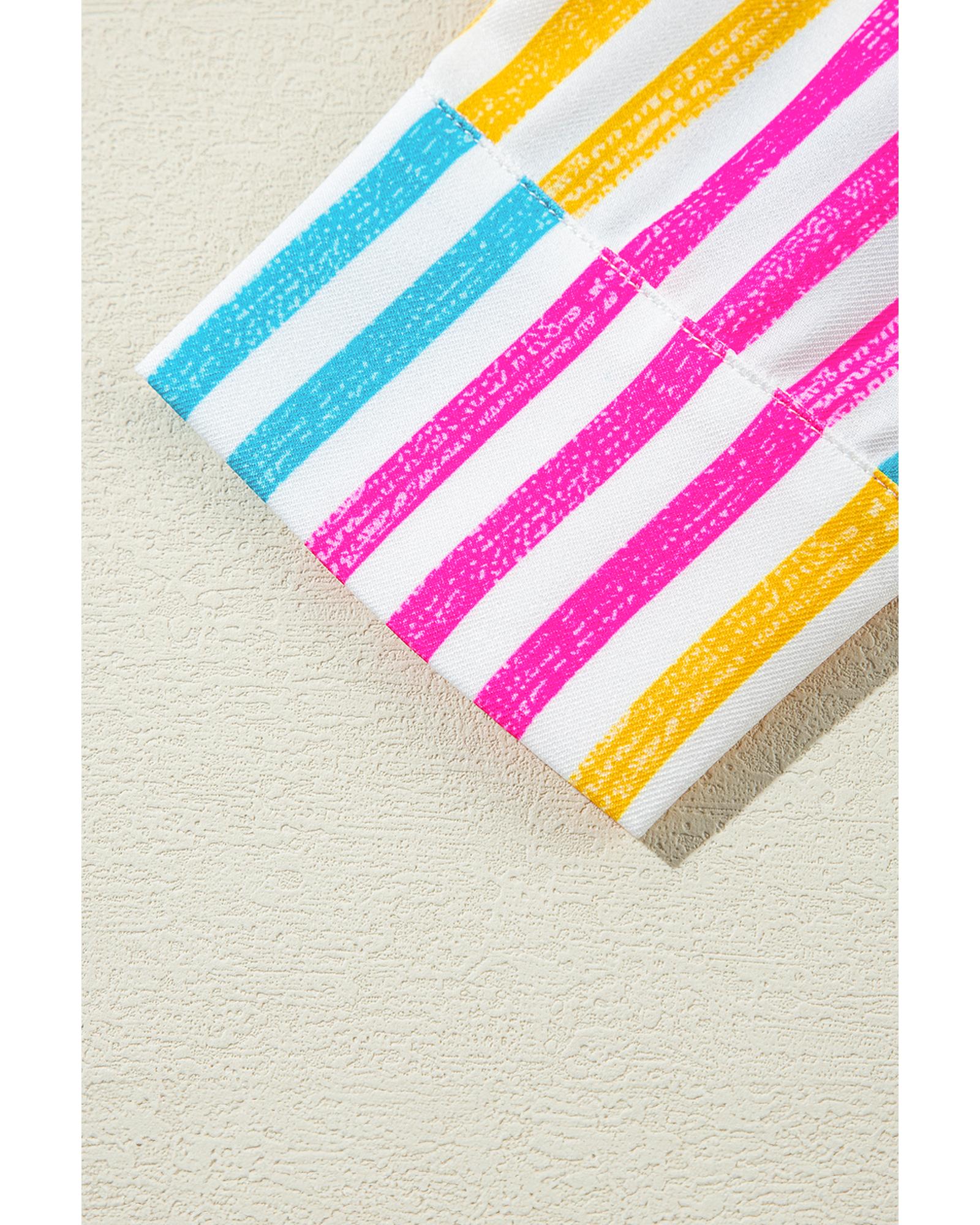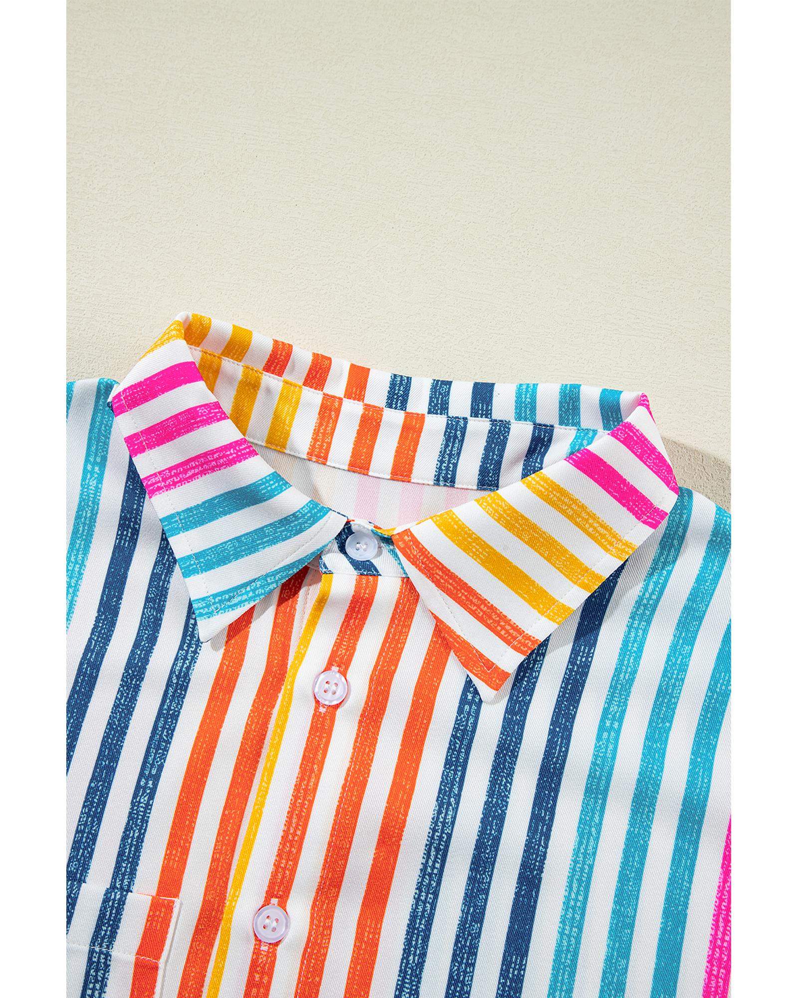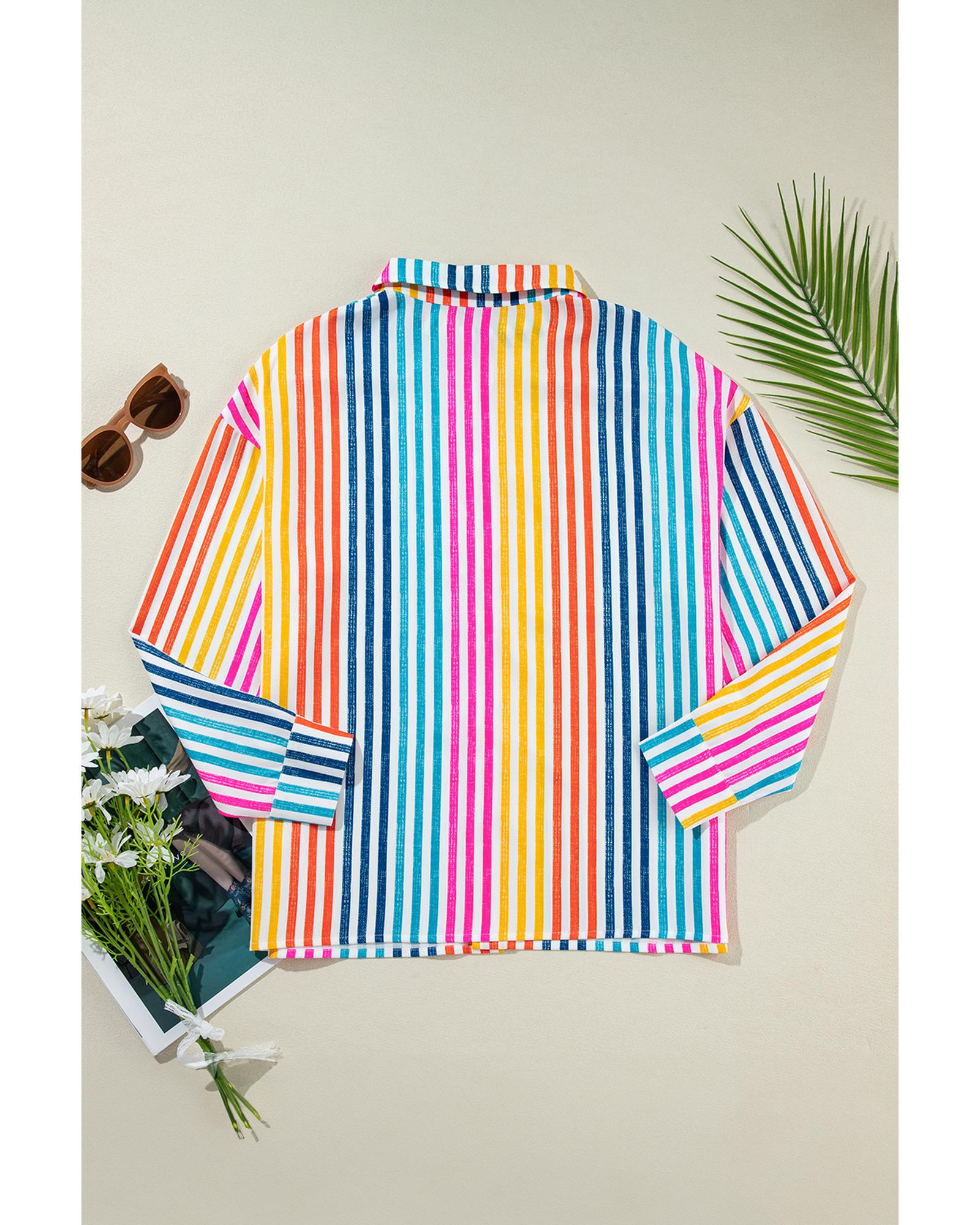 Orange Stripe Multicolor Drop Shoulder Loose Shirt - L