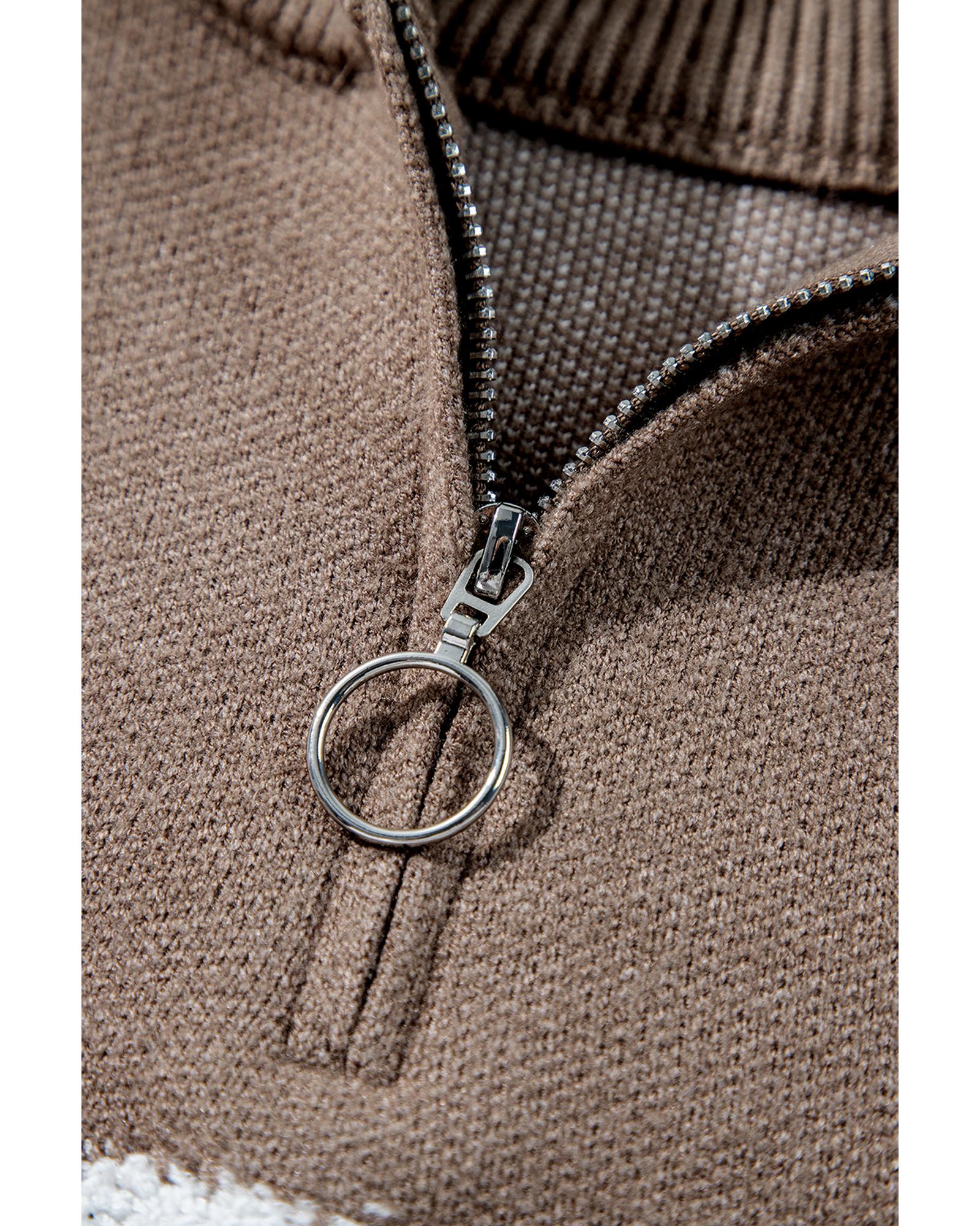 Parchment Contrast Flower Half Zipper Stand Neck Sweater - S
