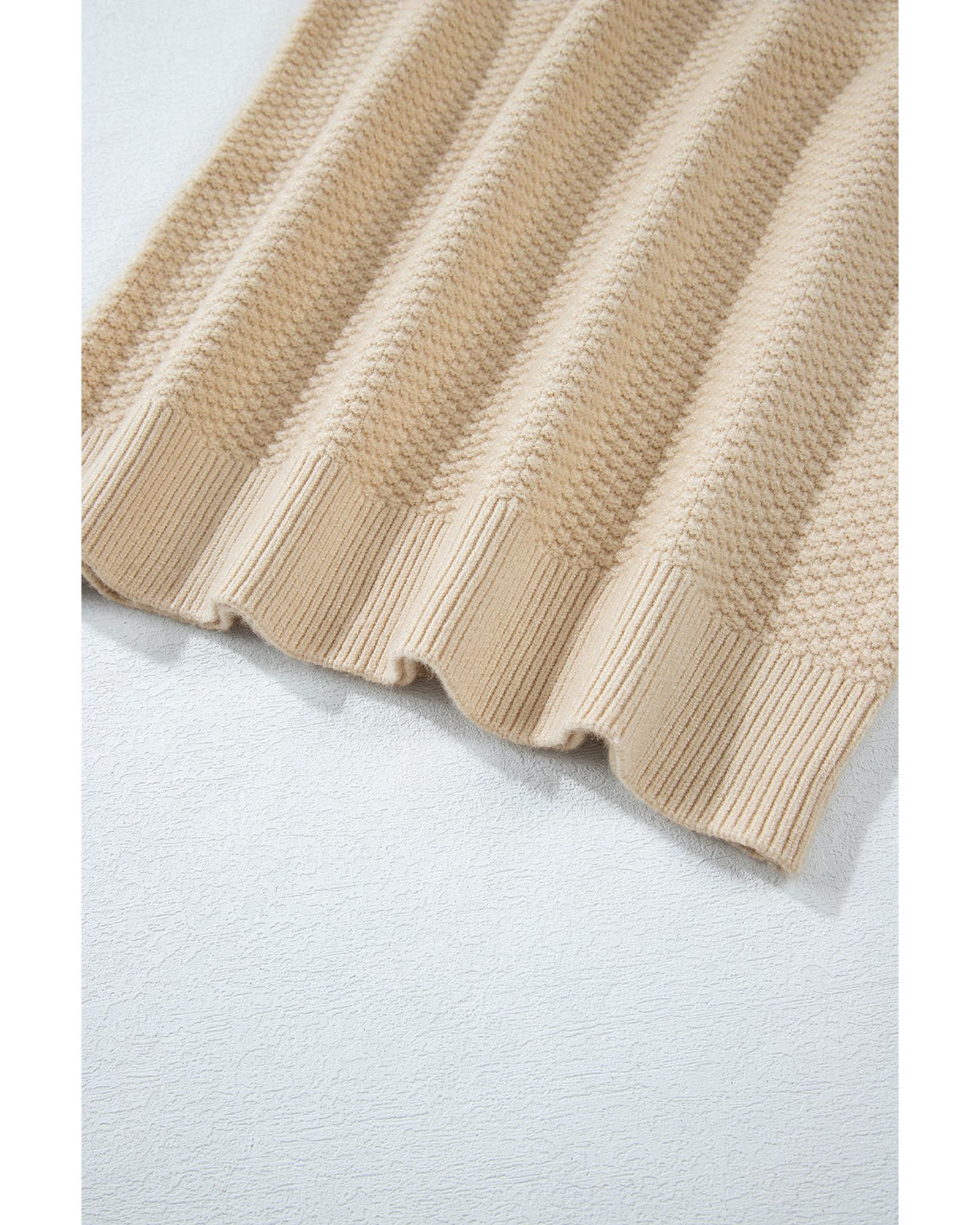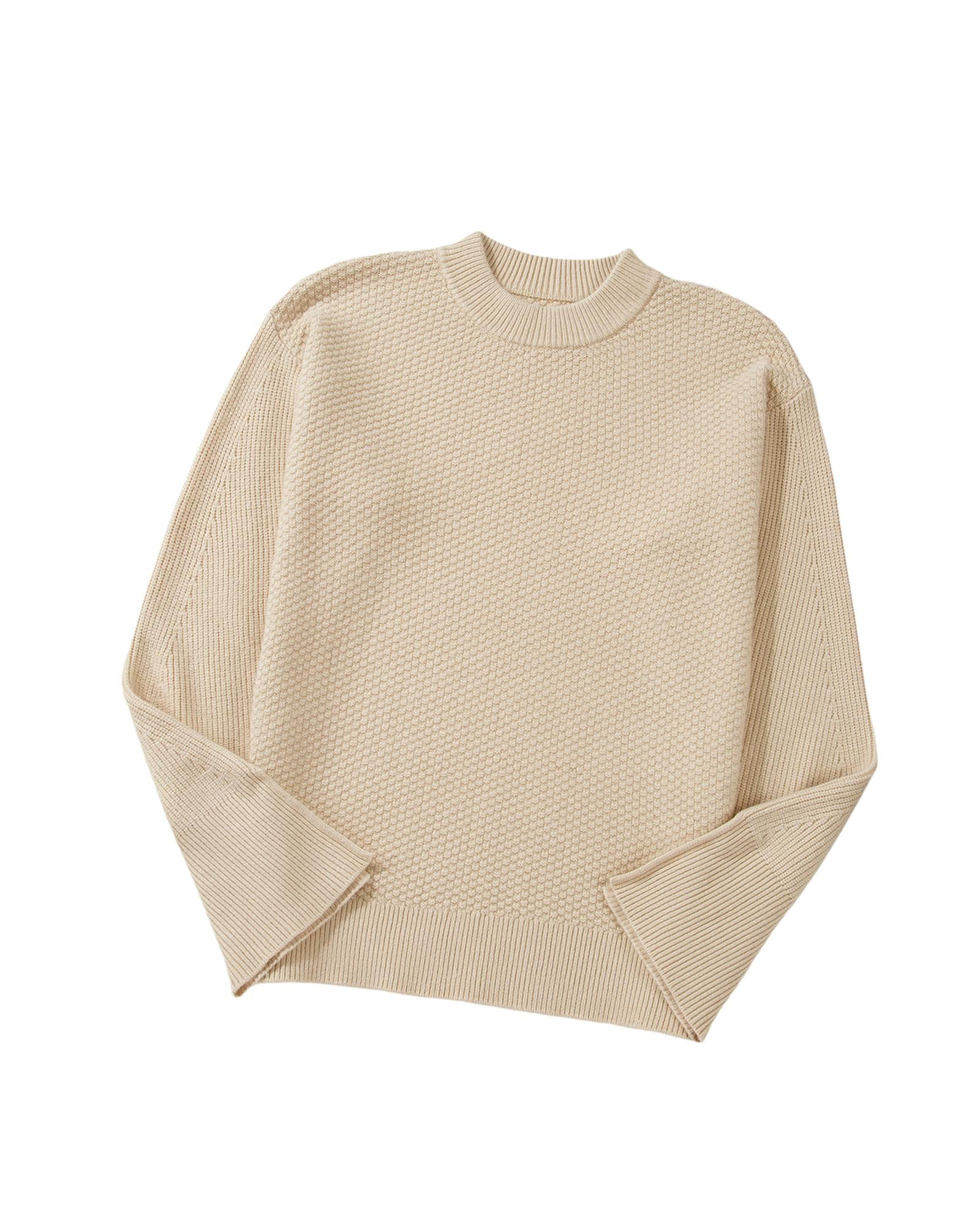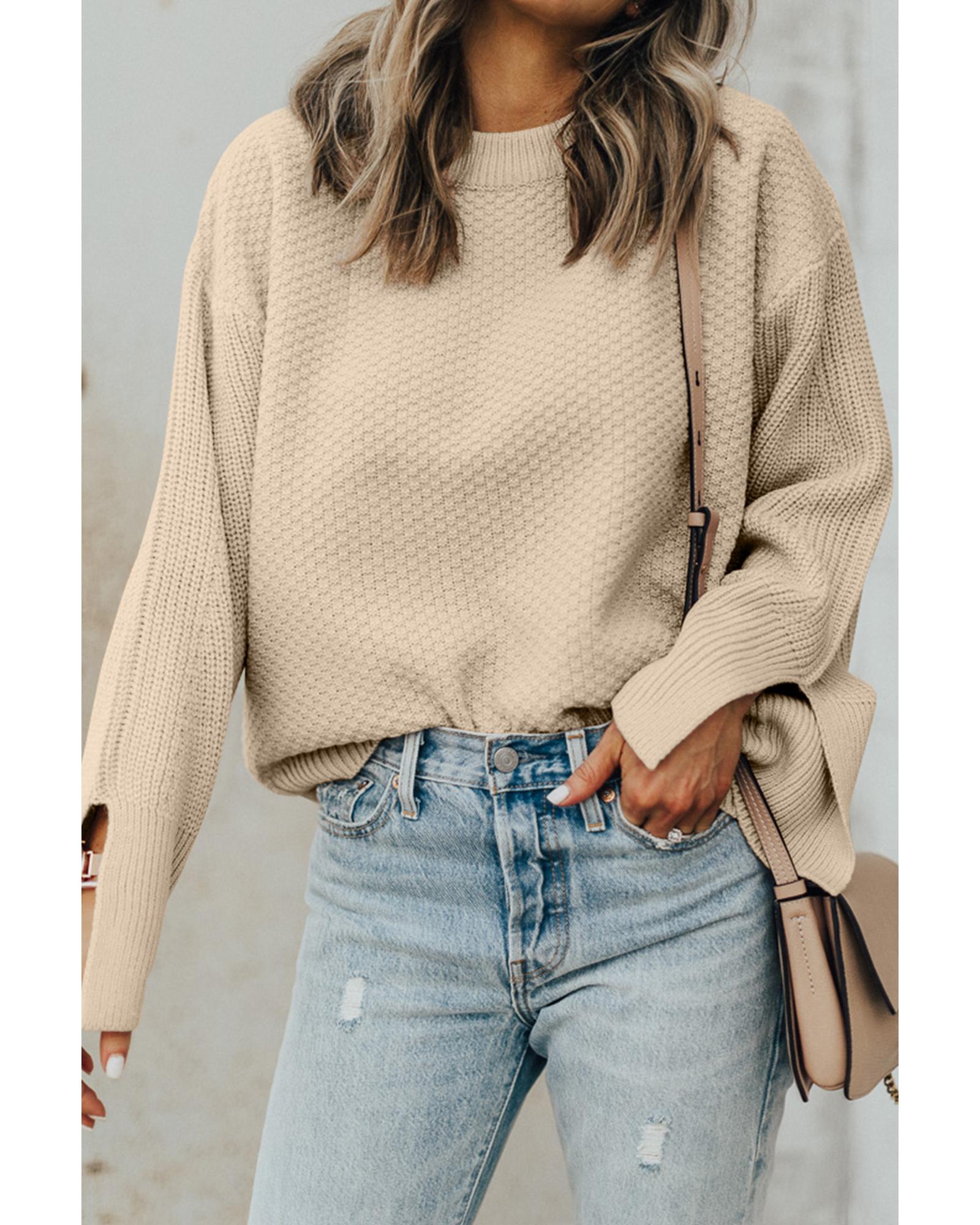 Parchment Solid Textured Knit Split Cuff Drop Shoulder Loose Sweater - XL