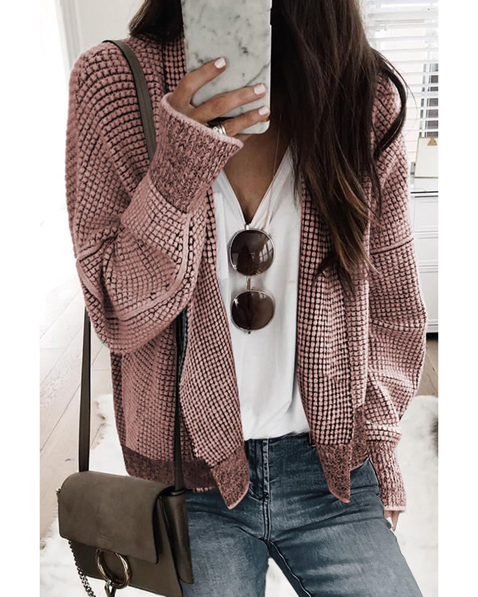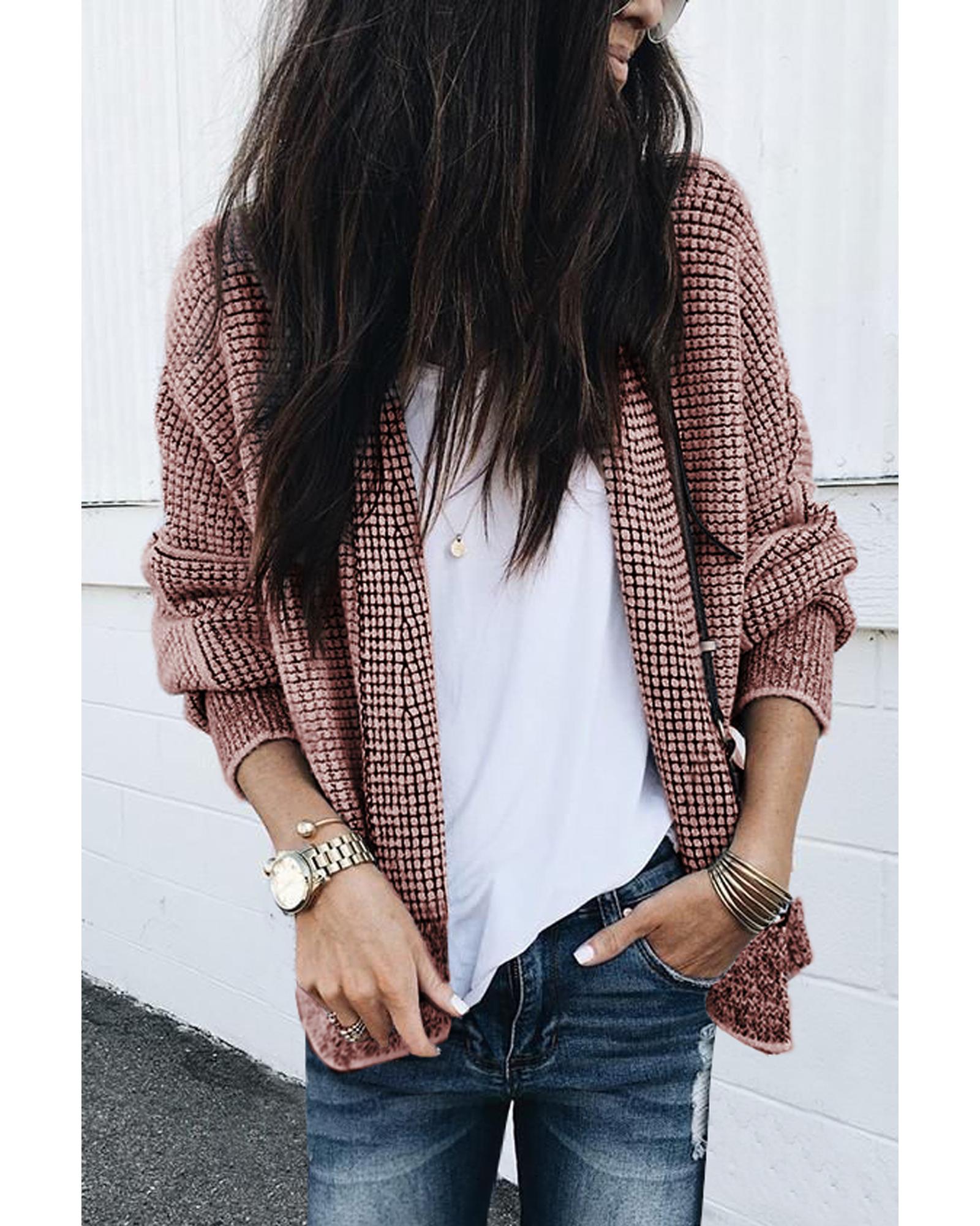 Peach Blossom Plaid Contrast Trim Open Front Cardigan - XL