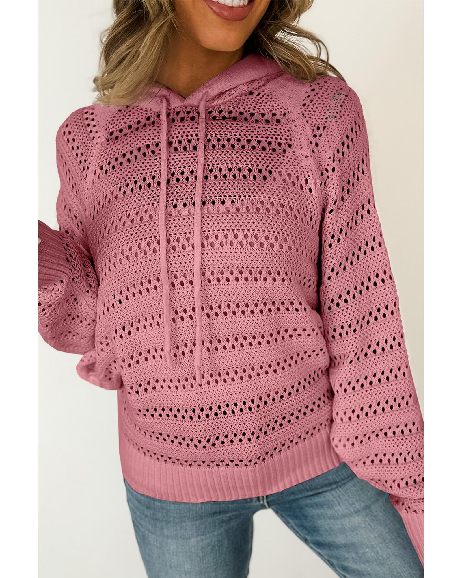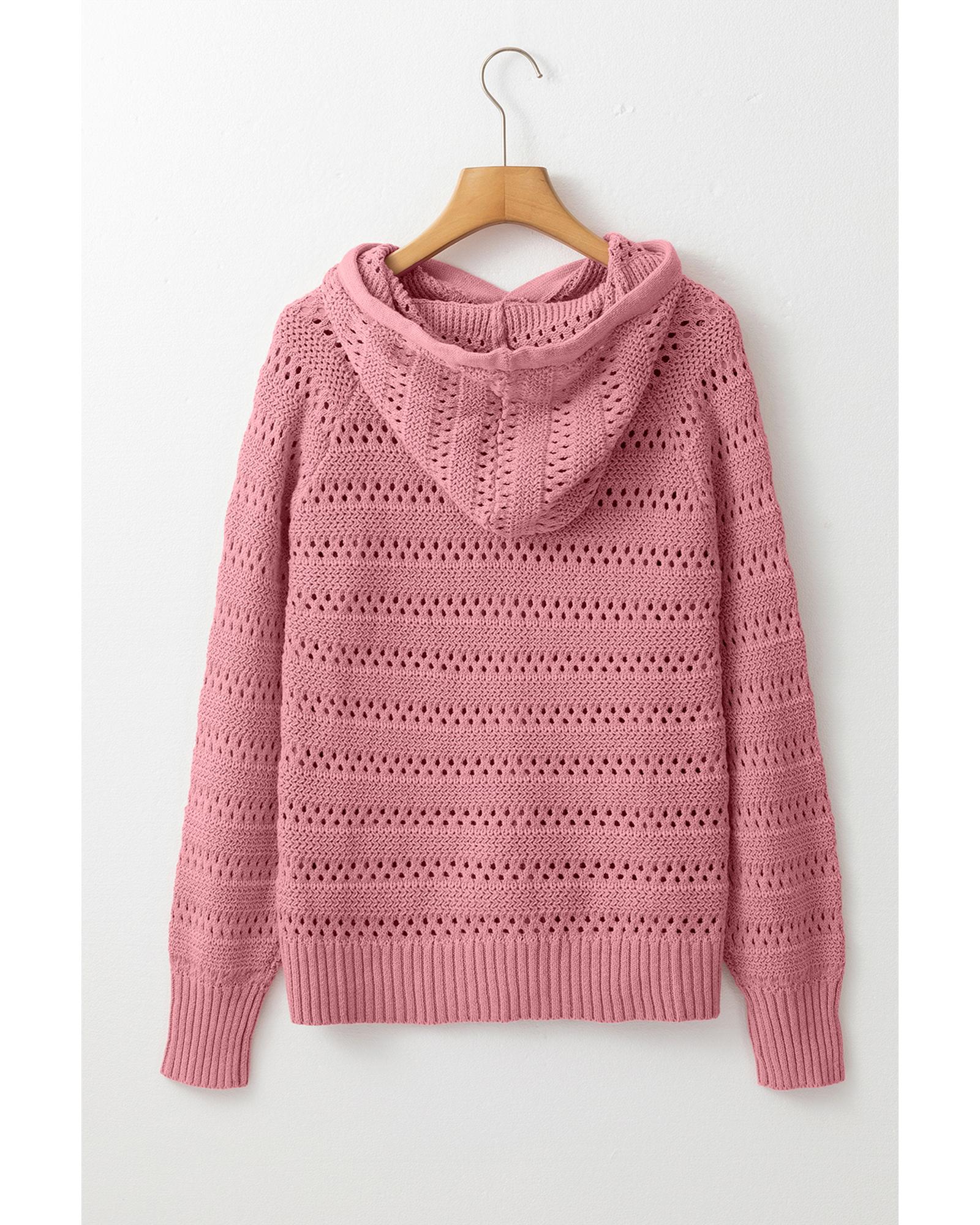 Peach Blossom Pointelle Knit Raglan Sleeve Hooded Sweater - S