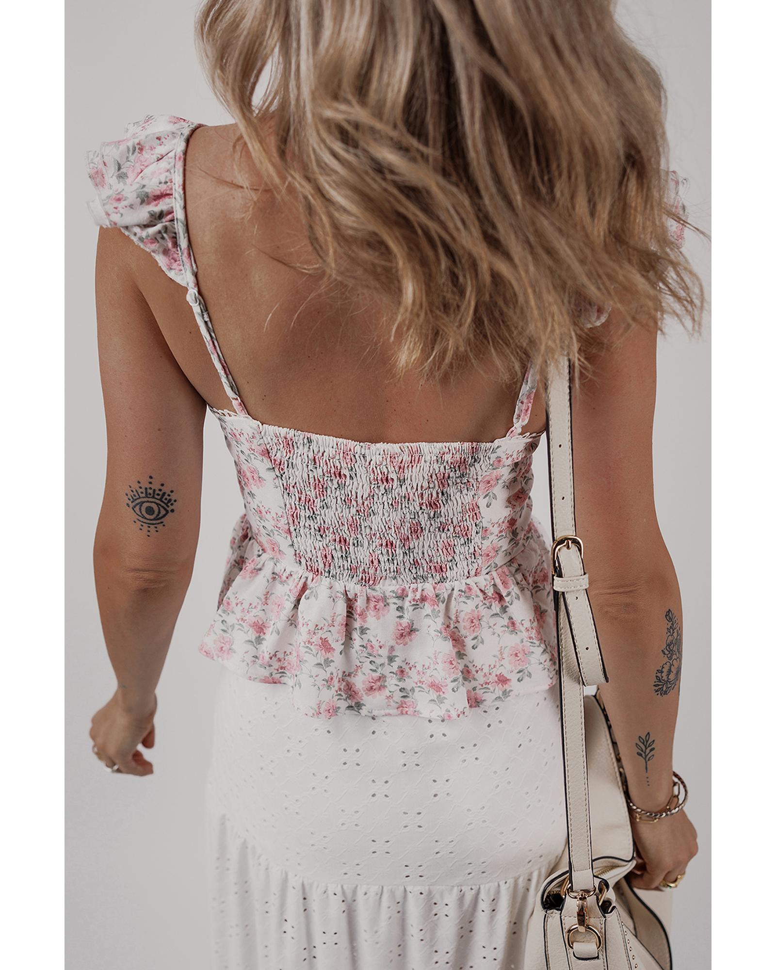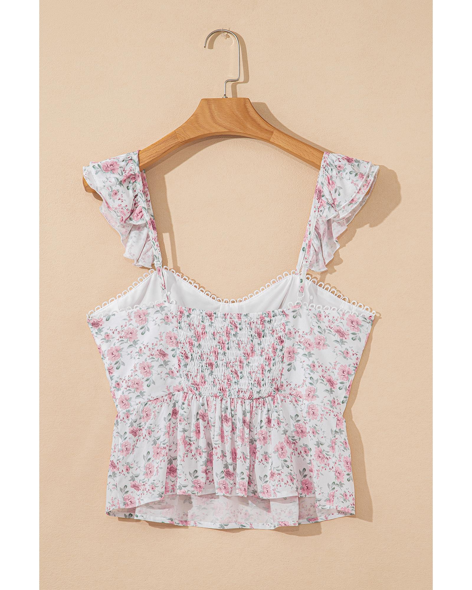Pink Floral Flutter Peplum Tank Top - XL